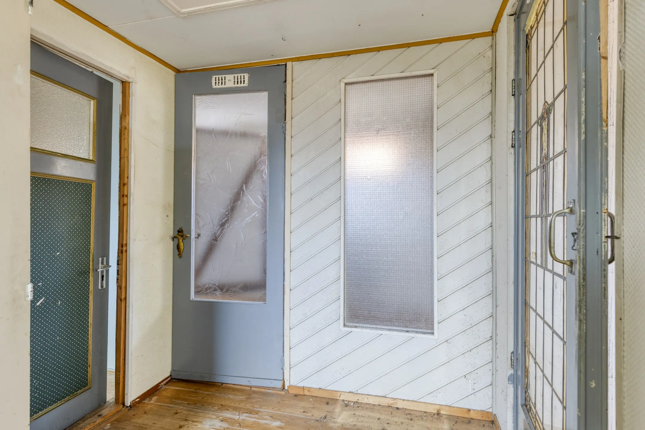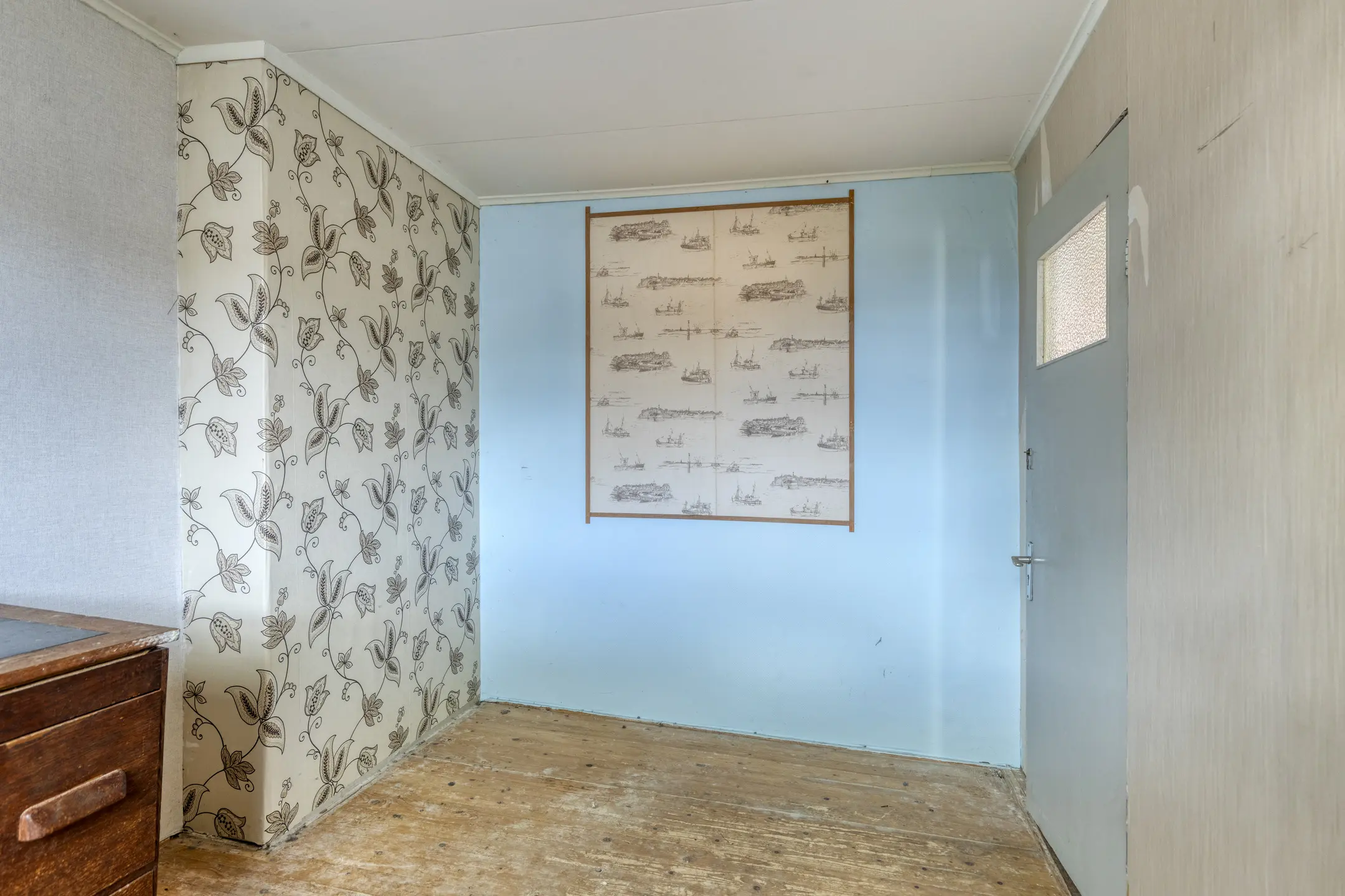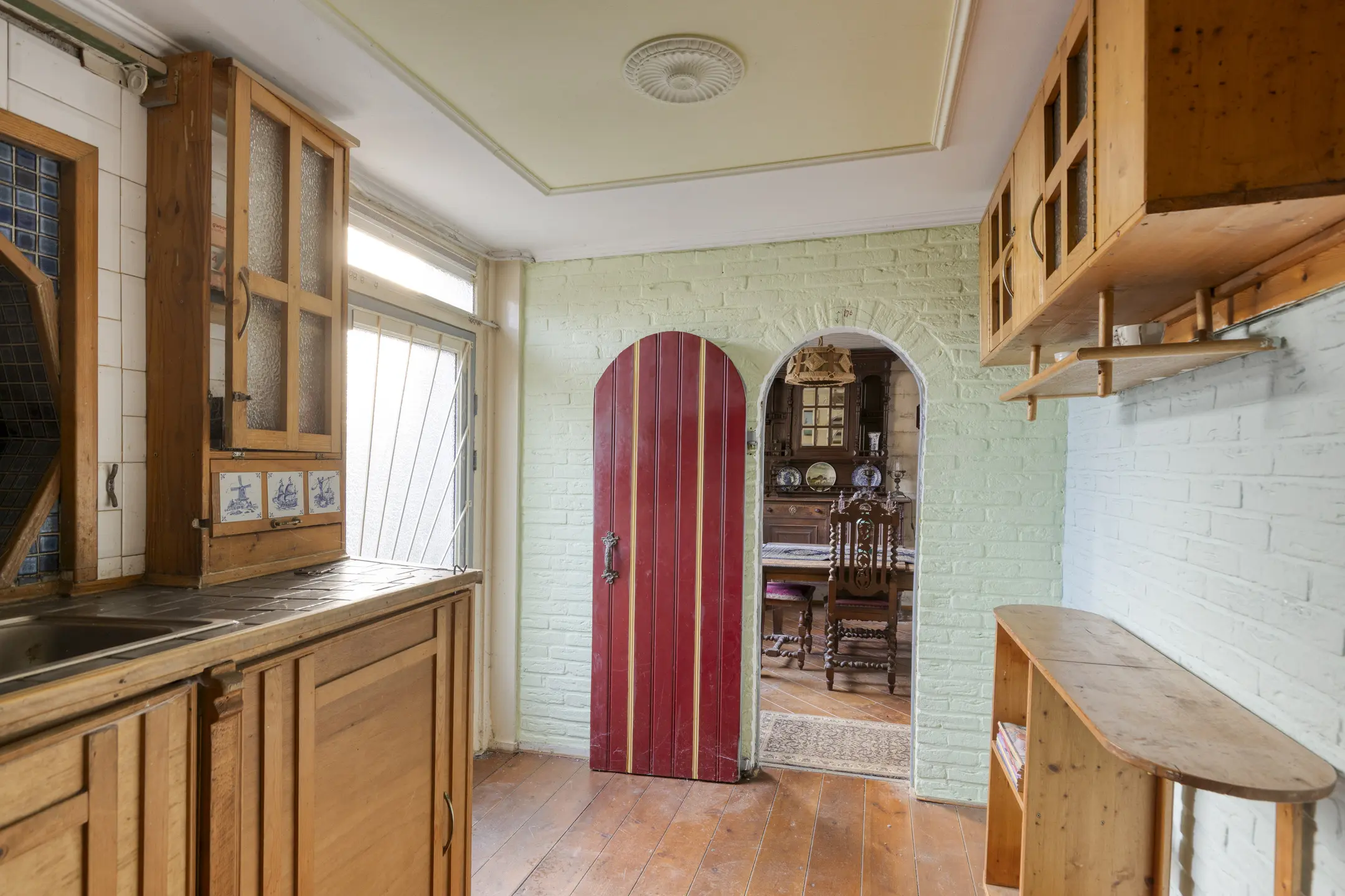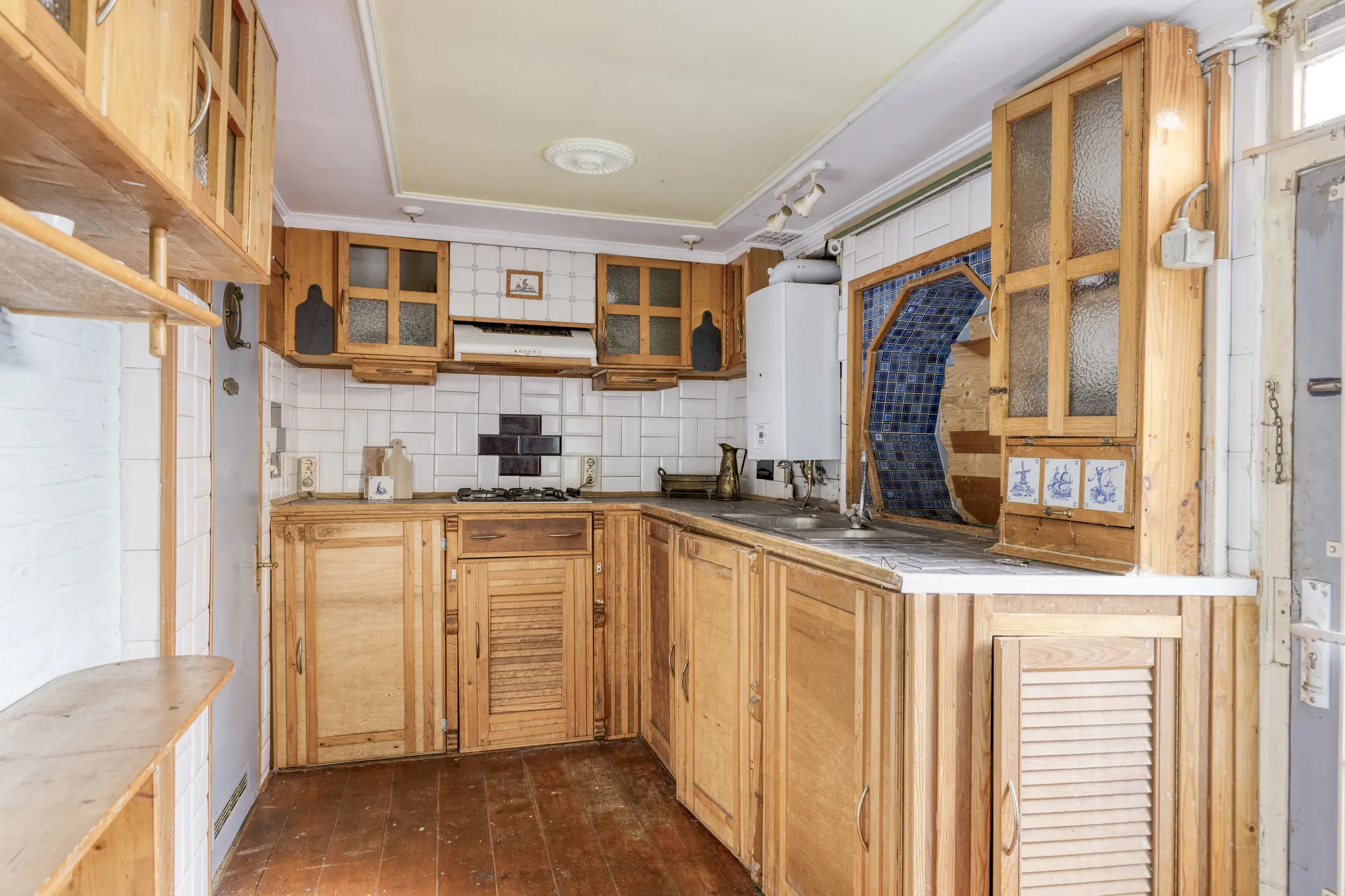 Via de hal kom je binnen in de woning. Aan de linkerzijde bevindt zich een berging met de meterkast (gas en elektra niet aangesloten). Vanuit de hal loop je door naar de woonkamer. Deze is ruim van opzet en beschikt over een karakteristieke schouwpartij. Aan de achterzijde bevindt zich de keuken, die in een hoekopstelling is geplaatst en is voorzien van een geiser en toegang biedt tot de tuin. Aansluitend vind je de badkamer. Deze is voorzien van een ligbad, toilet en fonteintje.
