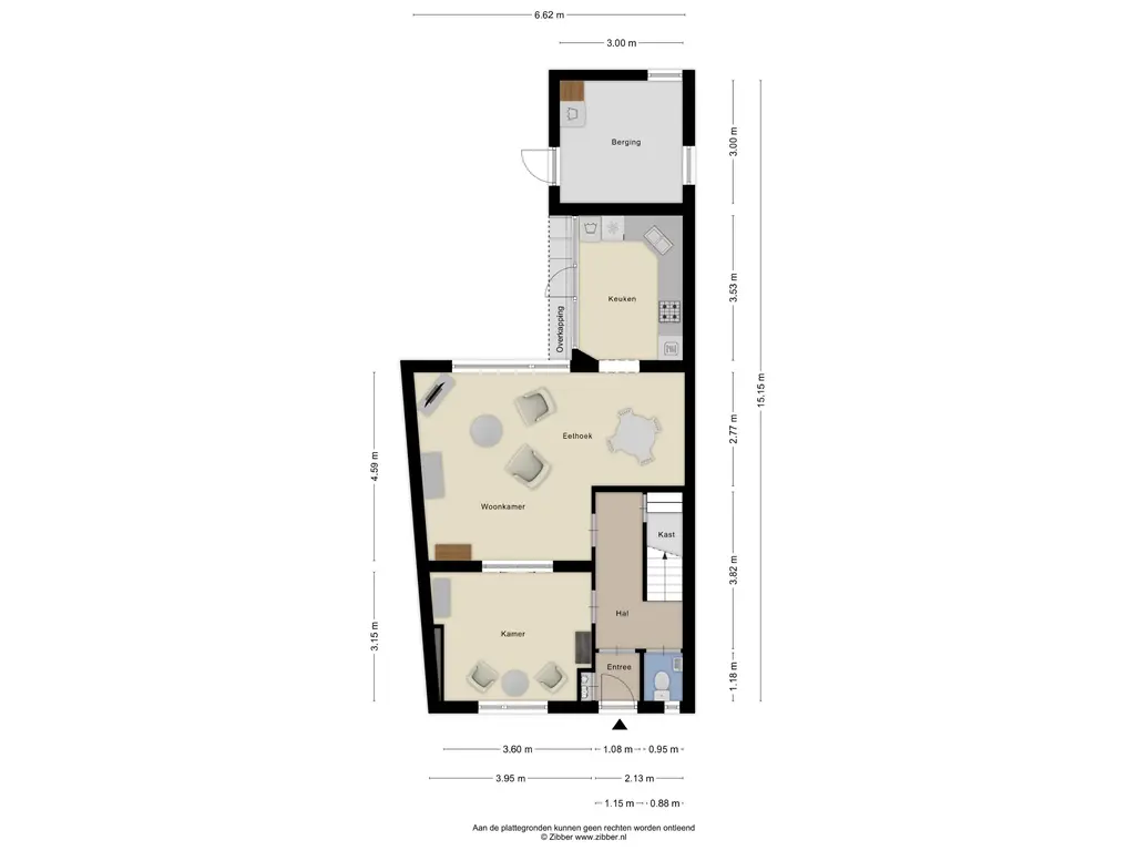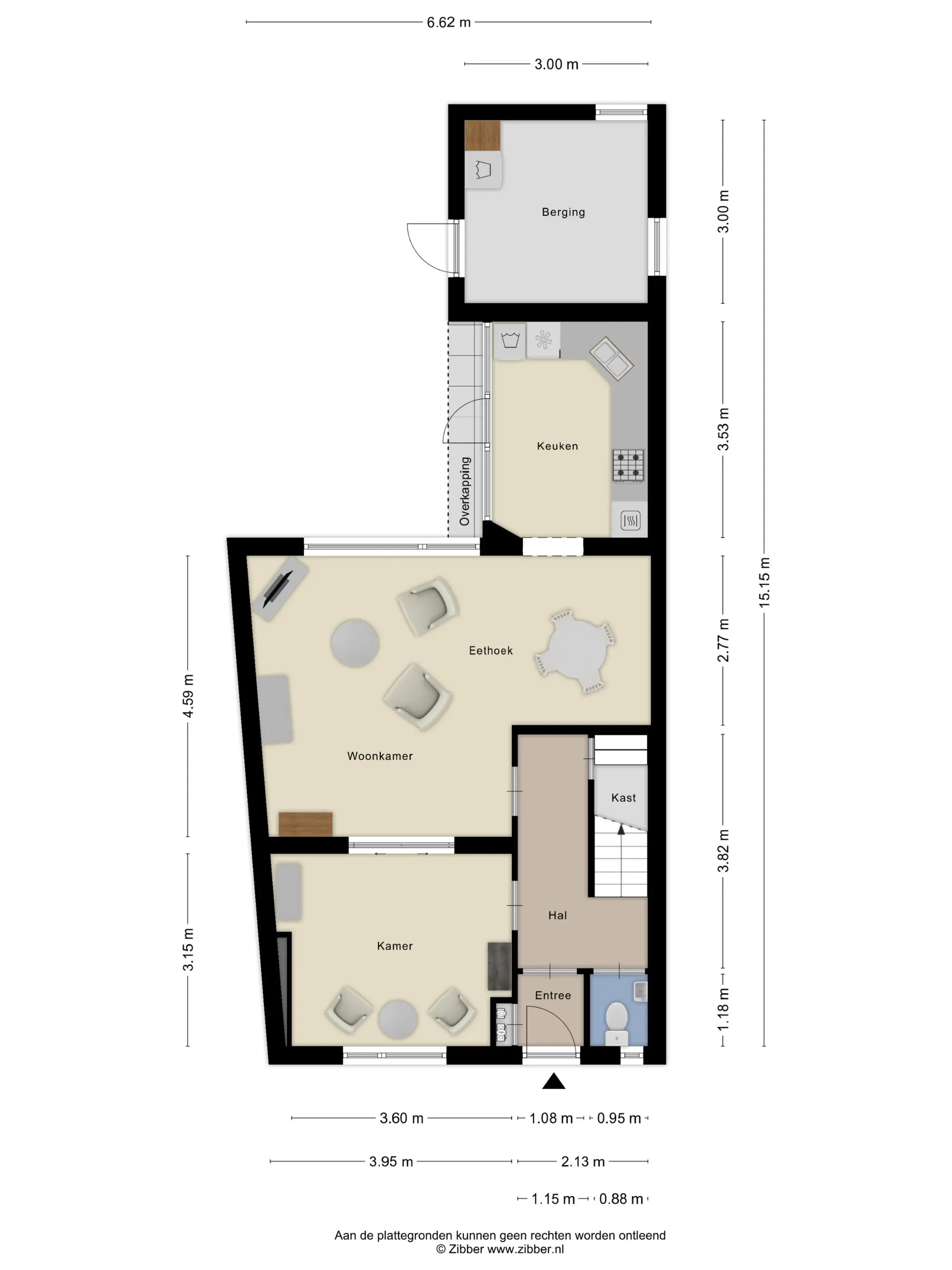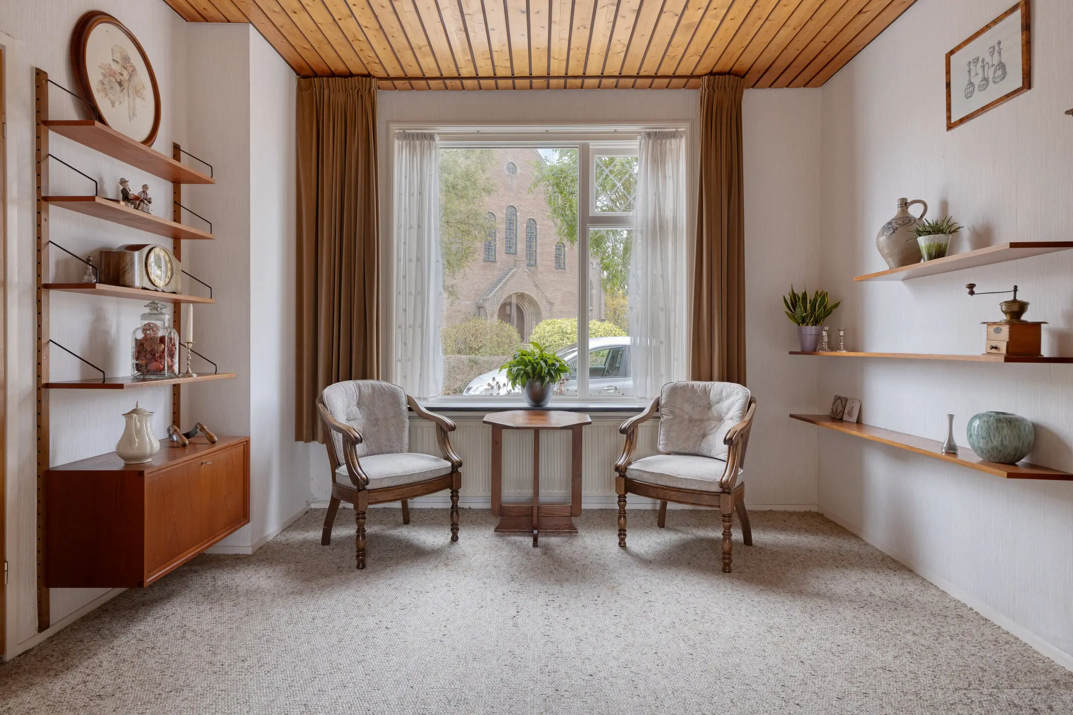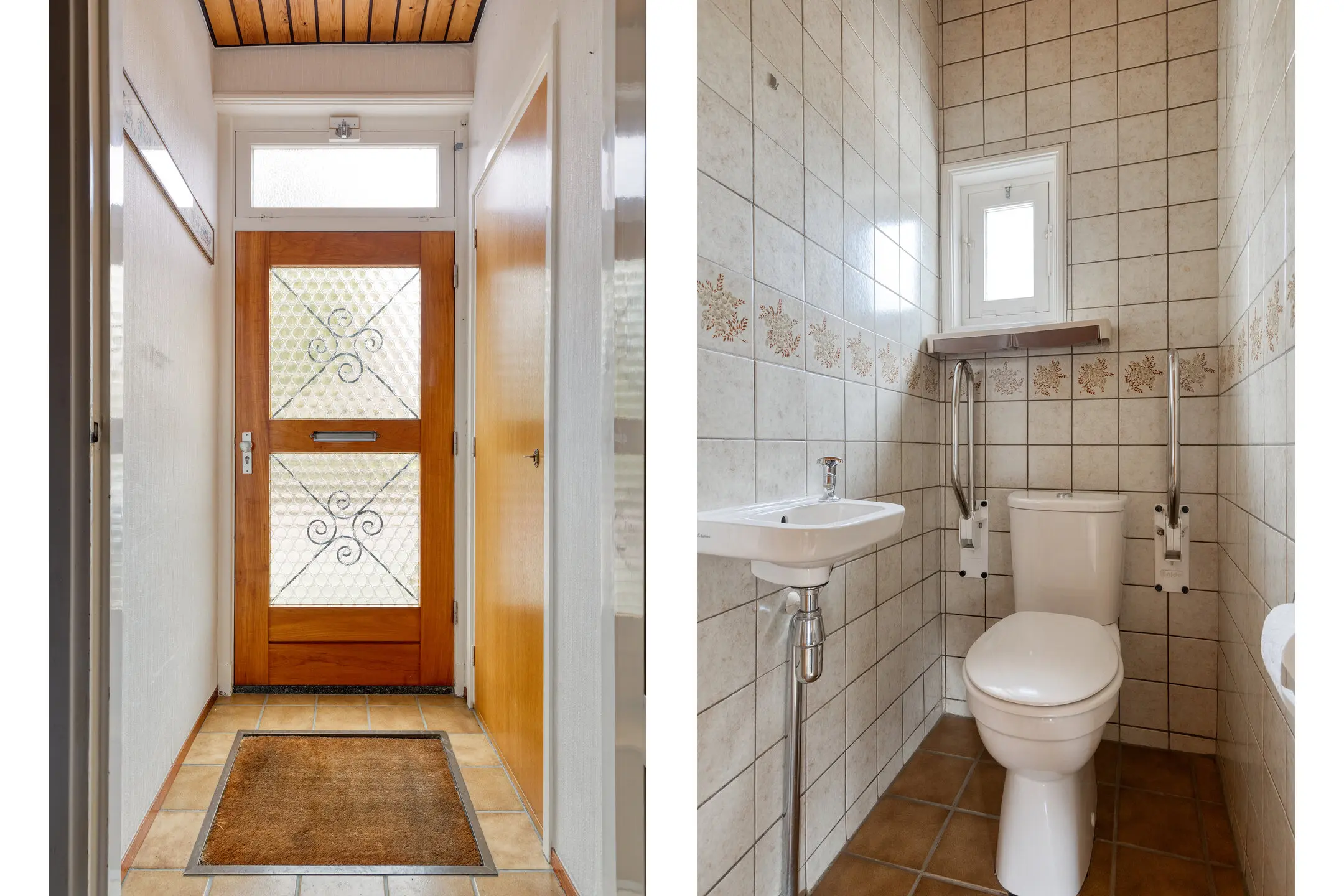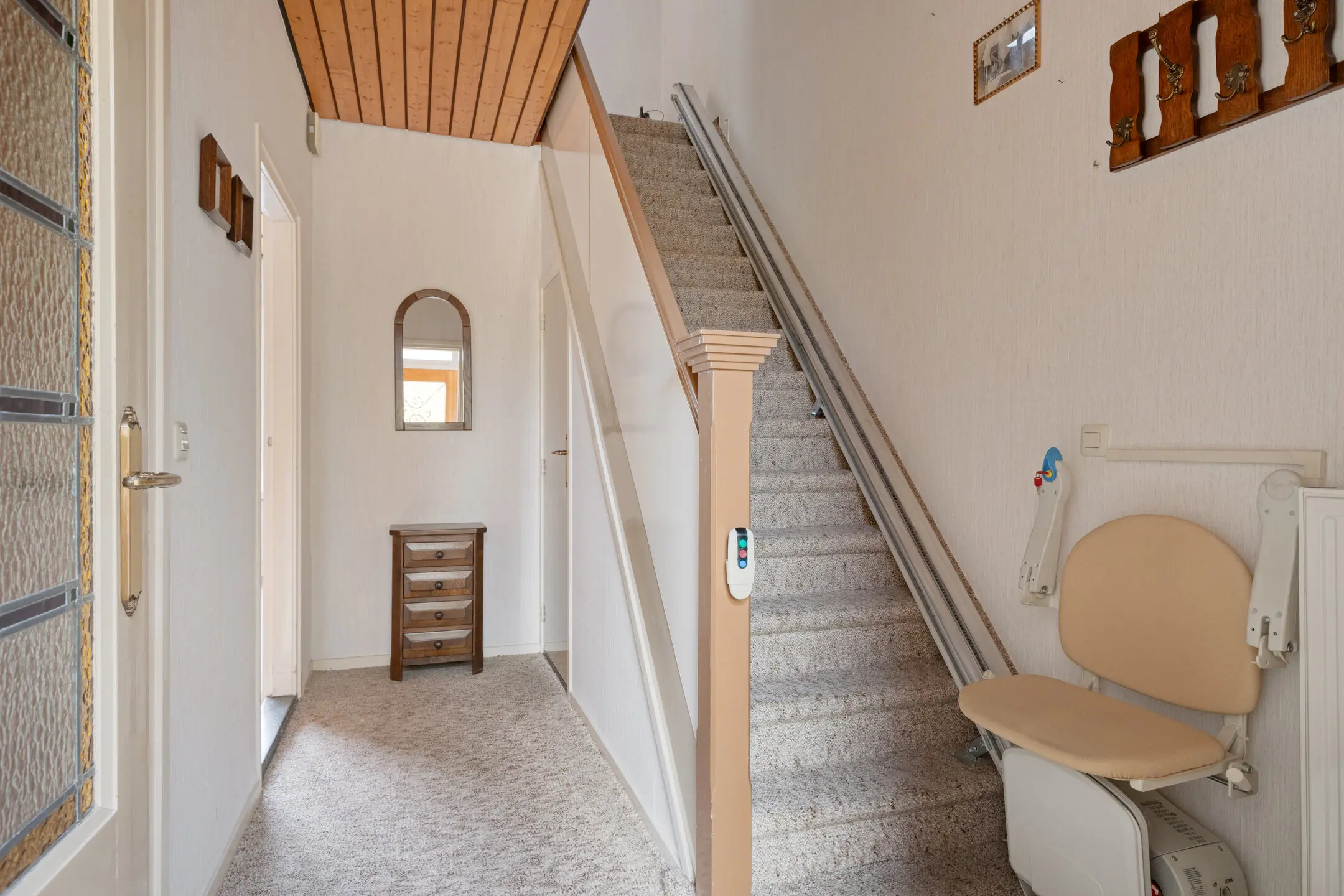 Via de hal – met meterkast, toilet met fonteintje, trapopgang en praktische verdiepte kelderkast – stap je de woonkamer binnen. De woonkamer heeft een gezellige indeling met karakteristieke en-suite deuren. Aan de voorzijde geniet je van een sfeervol uitzicht op de Ring en de kerk, terwijl je aan de achterzijde uitkijkt over de tuin. Het grote raam aan deze kant zorgt voor veel lichtinval en is voorzien van zonwering.