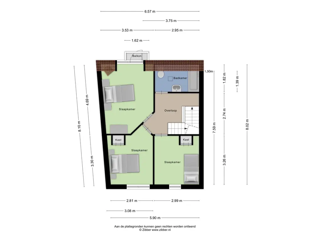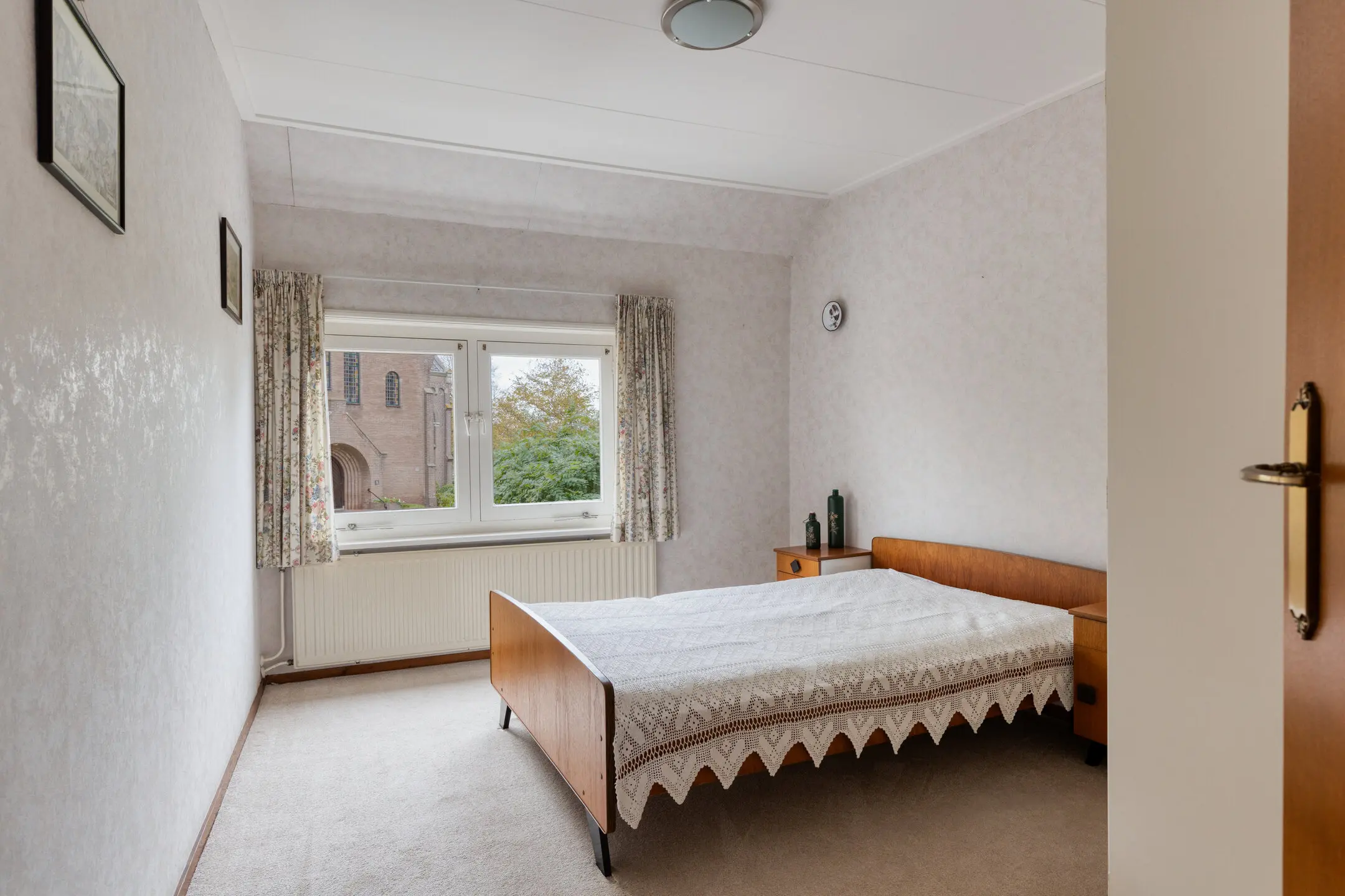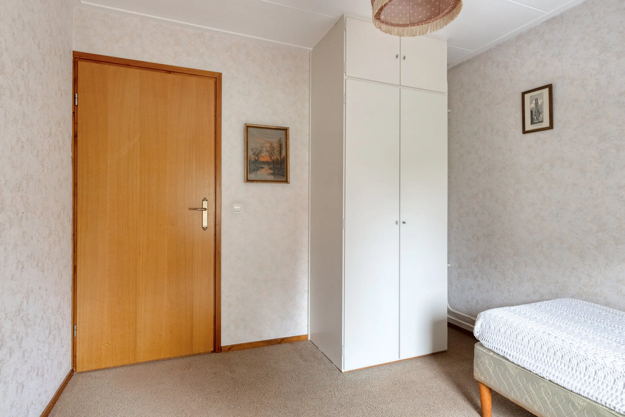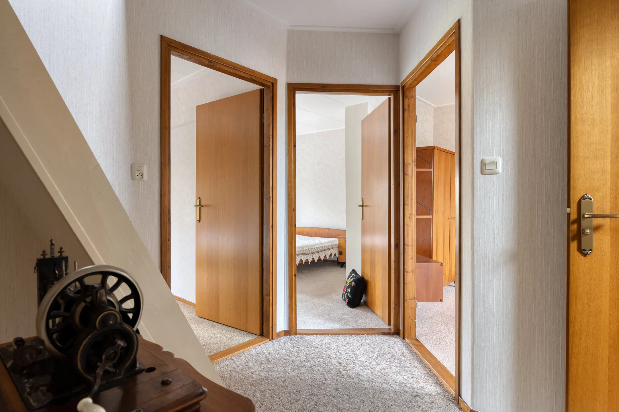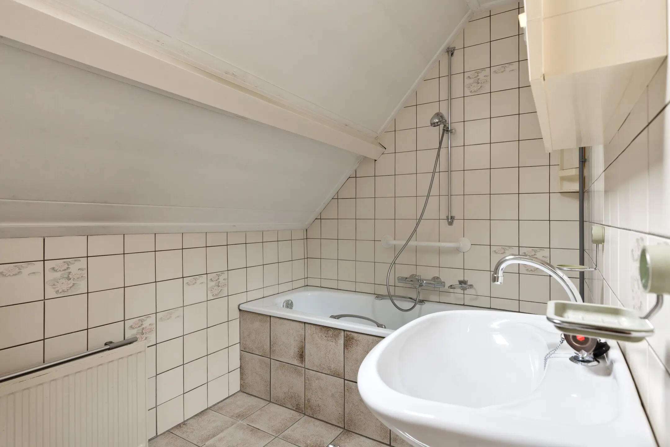 Op de eerste verdieping bevinden zich een overloop, drie fijne ruime slaapkamers en de badkamer. De kamers zijn stuk voor stuk praktisch van formaat en bieden volop mogelijkheden om naar eigen smaak te moderniseren. De slaapkamer aan de achterzijde beschikt over een Frans balkon met screens. Aan de voorzijde zijn twee slaapkamers met elk een vaste kast.