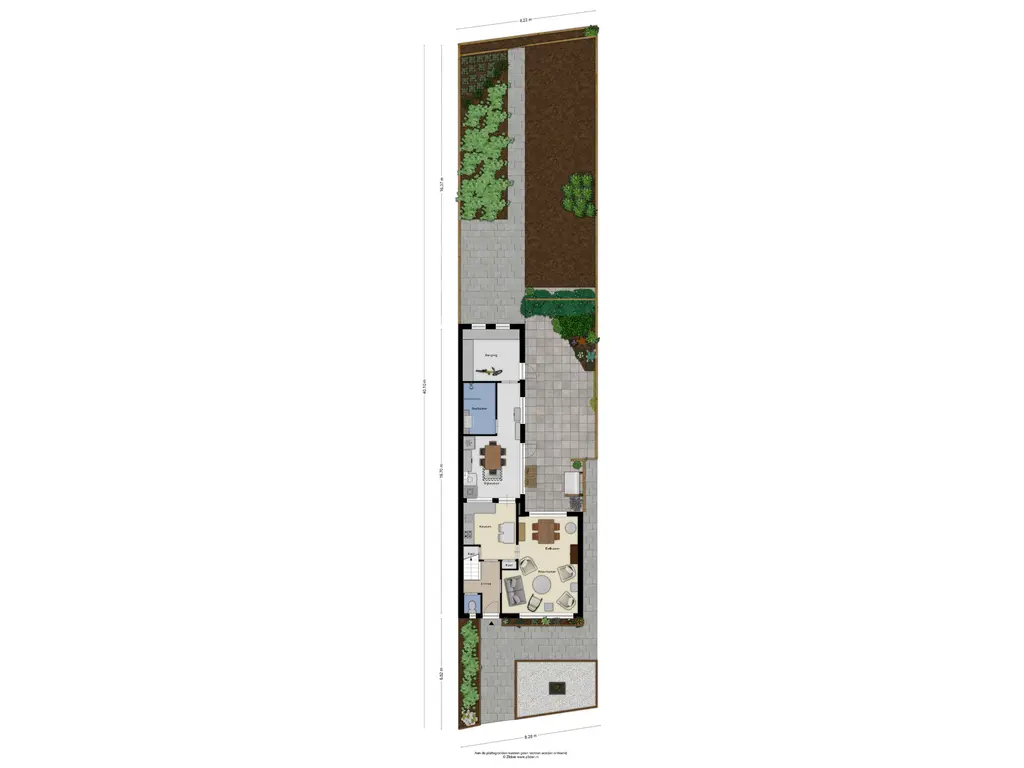 - achtertuin met een oppervlakte van 160 m² en is gelegen op het zuidwesten