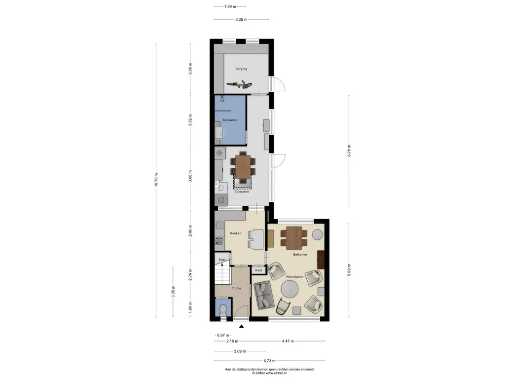 Je komt binnen in een ruime hal met toilet en trapopgang naar de eerste verdieping. Vanuit hier is er toegang tot de royale keuken, voorzien van een keukenblok uit 2014 en een handige kelderkast onder de trap. De lichte L-vormige doorzonwoonkamer biedt veel ruimte en gezelligheid. Aan de achterzijde bevindt zich een grote bijkeuken met plaats voor witgoed en de cv-ketel. Verder zijn er op de begane grond een royale badkamer én een grote berging met zolder. Achter de woning ligt een zonnig terras dat bereikbaar is via een vrije achterom. Daarachter vind je nog een royale moestuin: een perfecte plek voor liefhebbers van groen en eigen teelt.