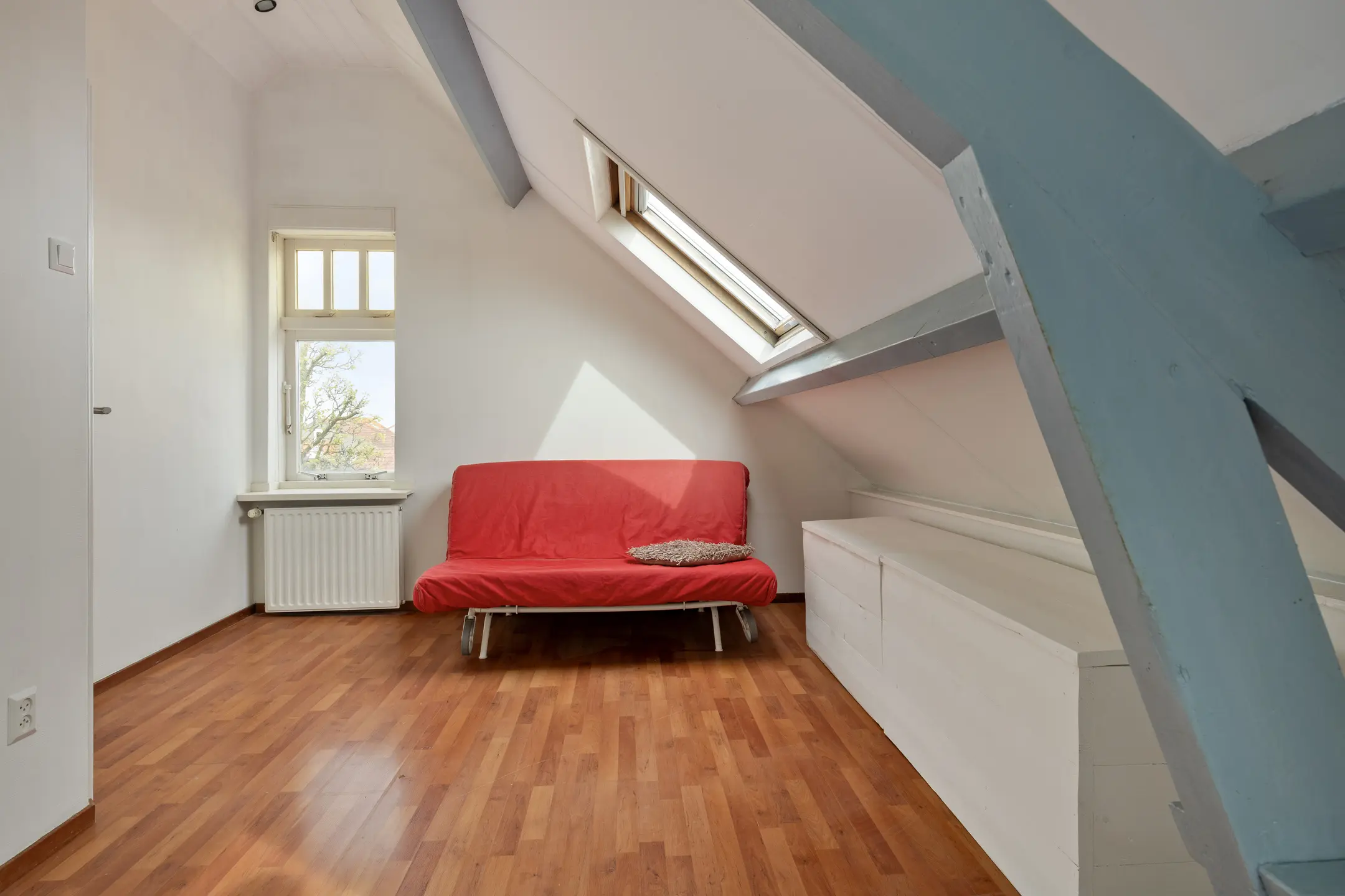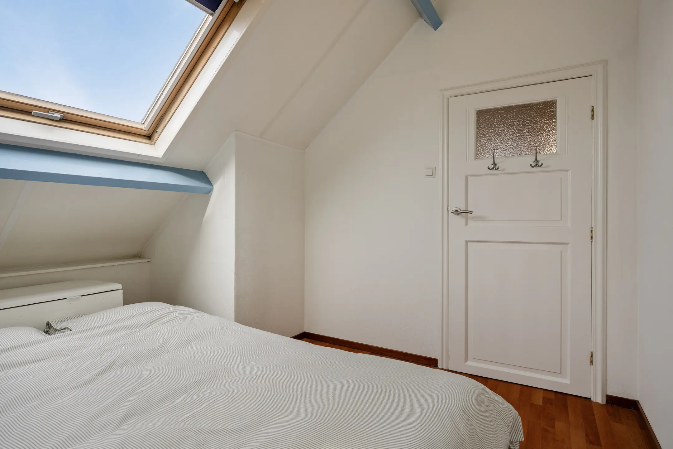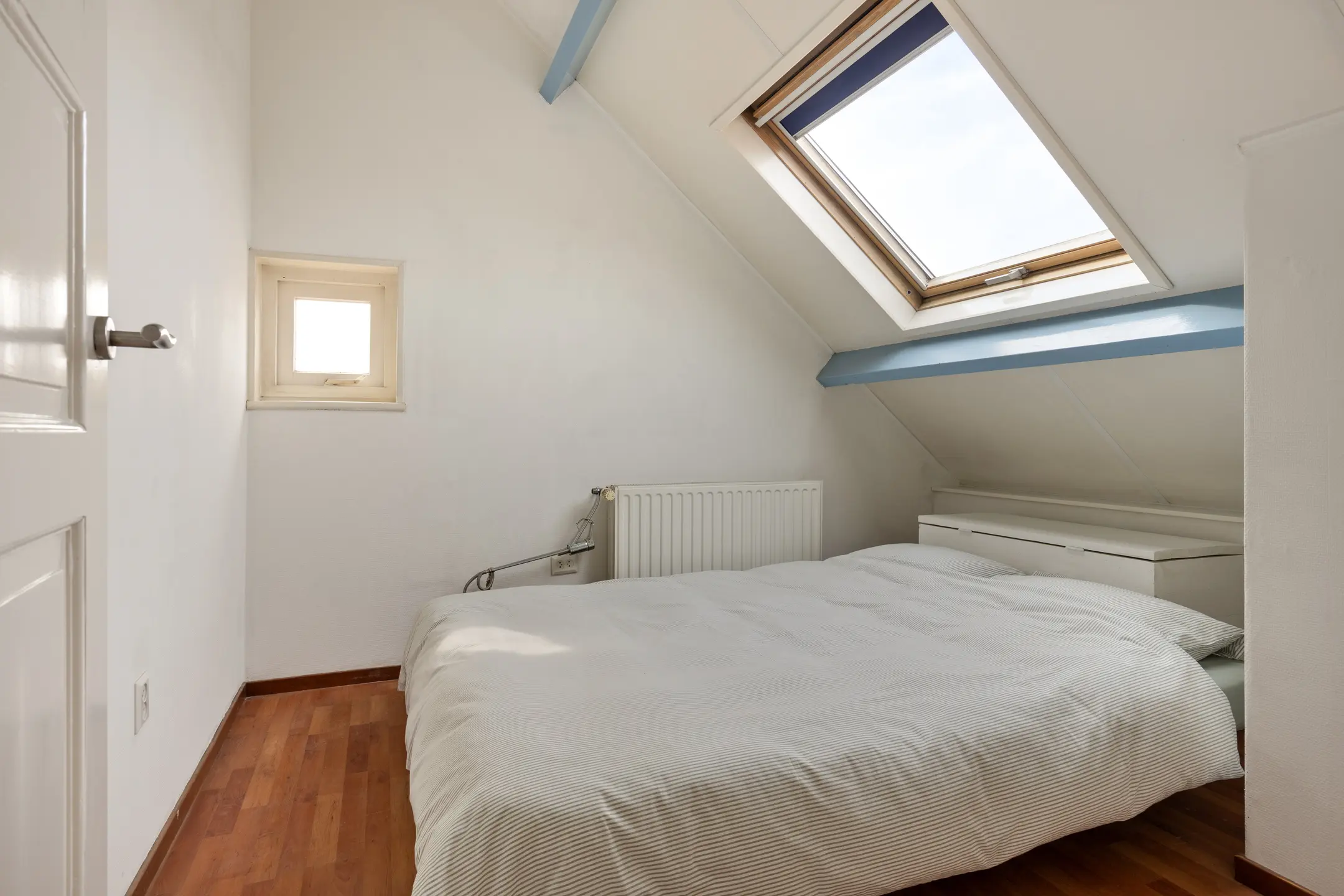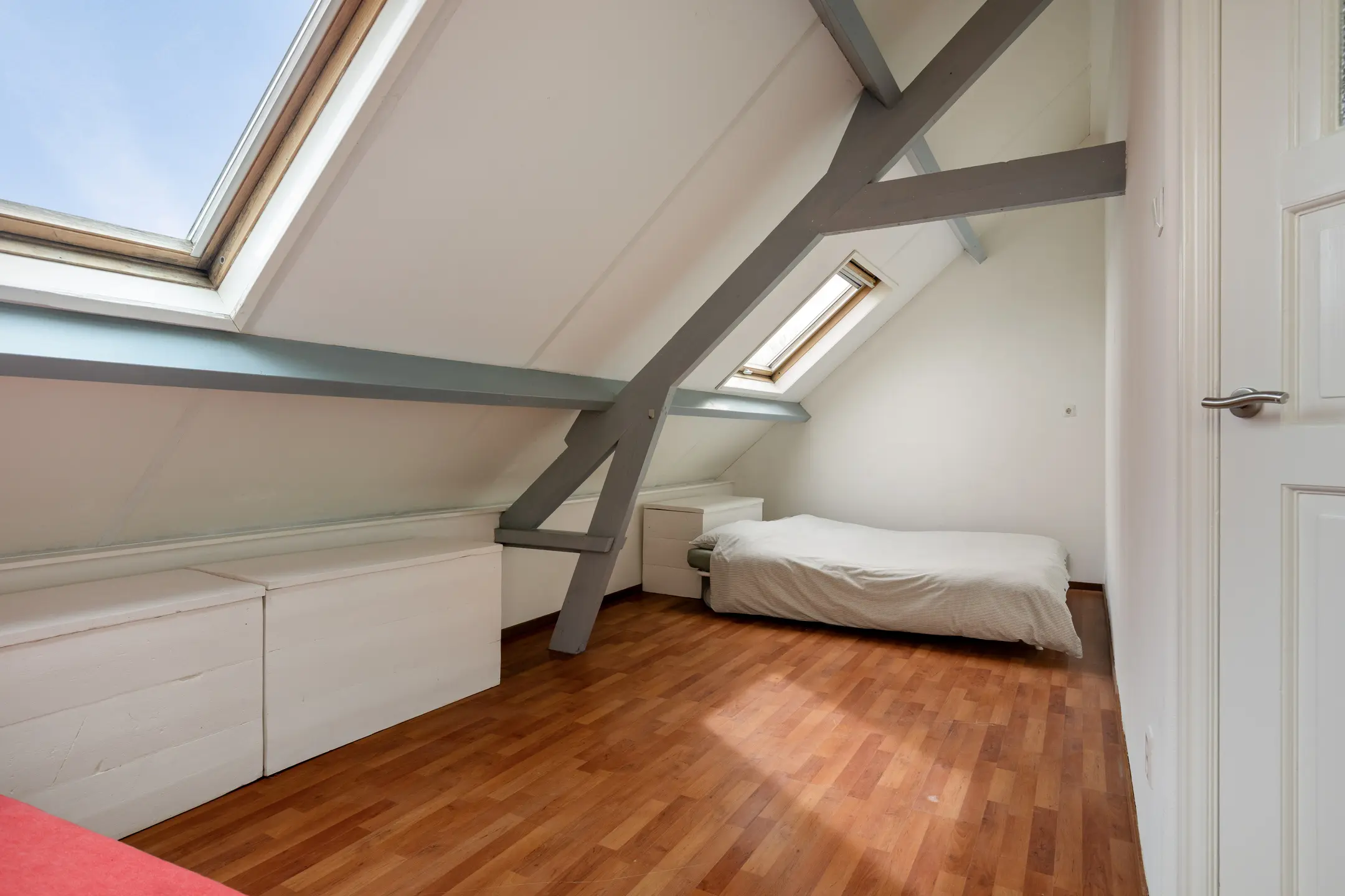 Op de tweede verdieping bevinden zich drie slaapkamers, waarvan er een ook als werkruimte dienst kan doen. Alle kamers zijn voorzien van een Velux dakraam, wat zorgt voor prettig daglicht.