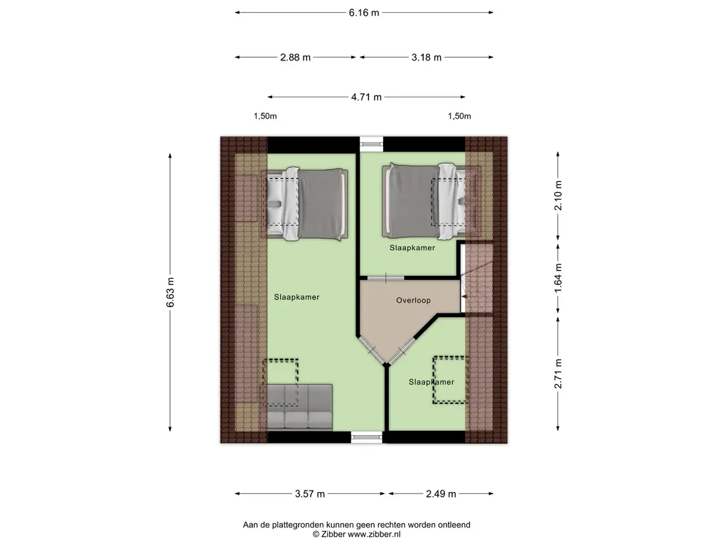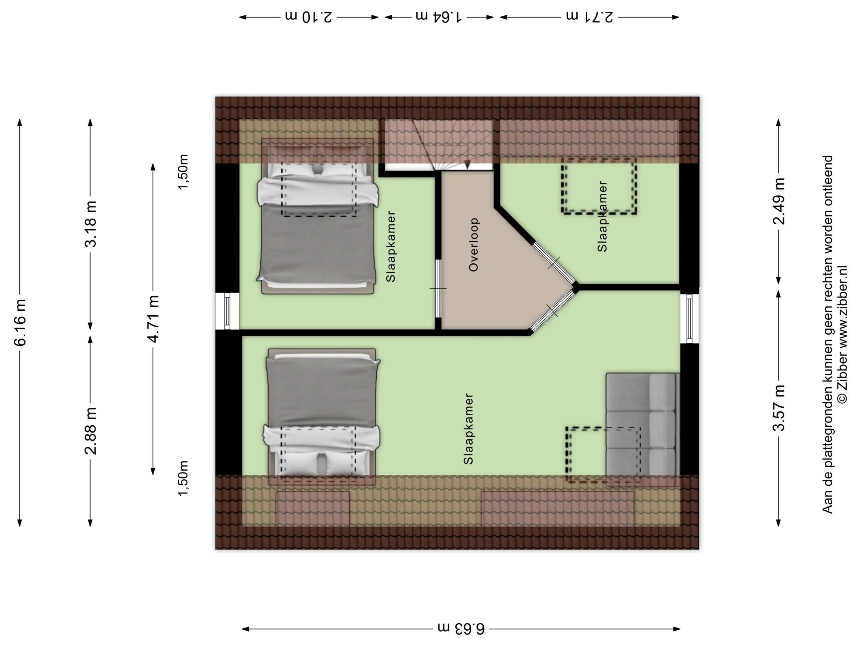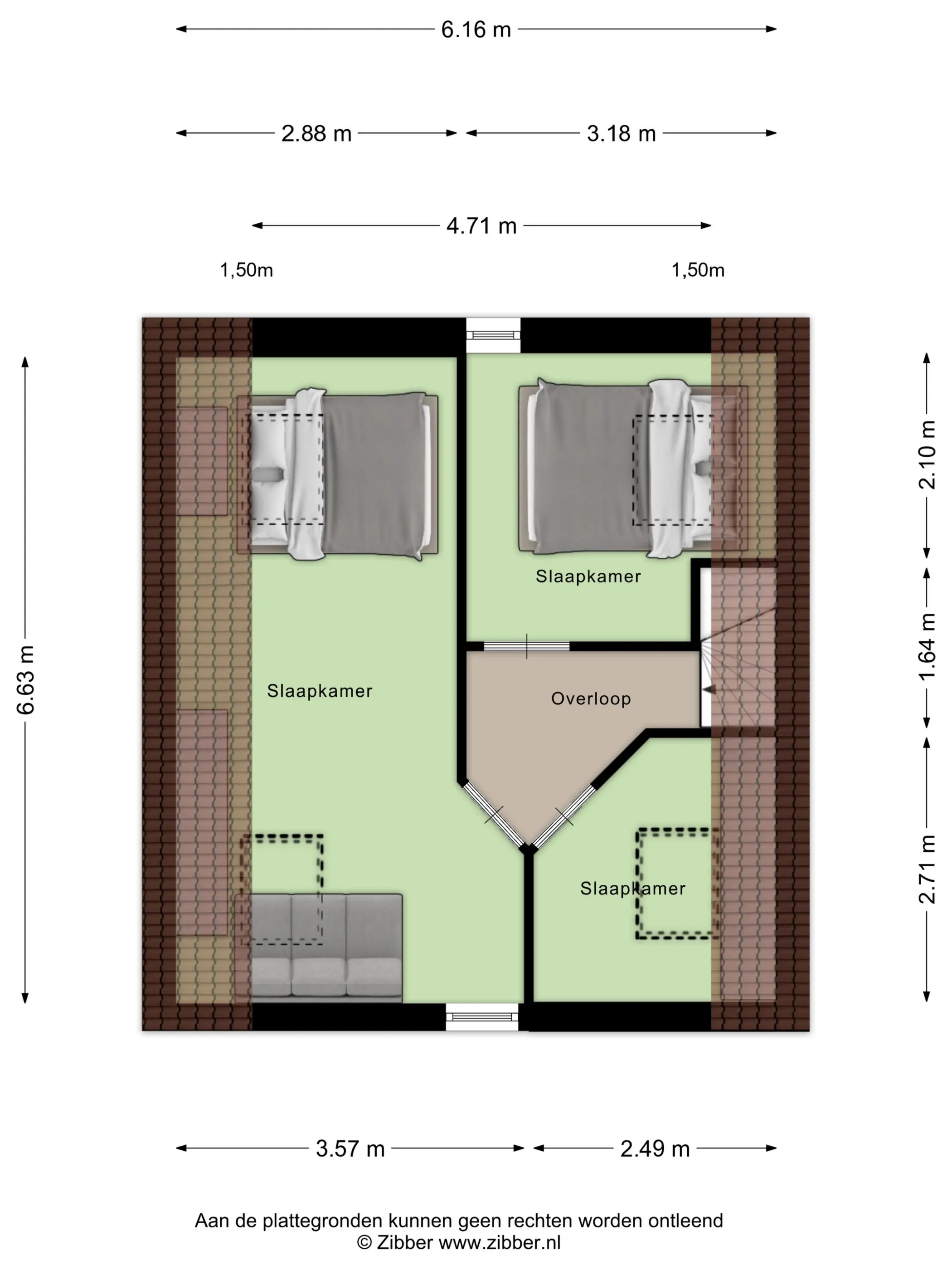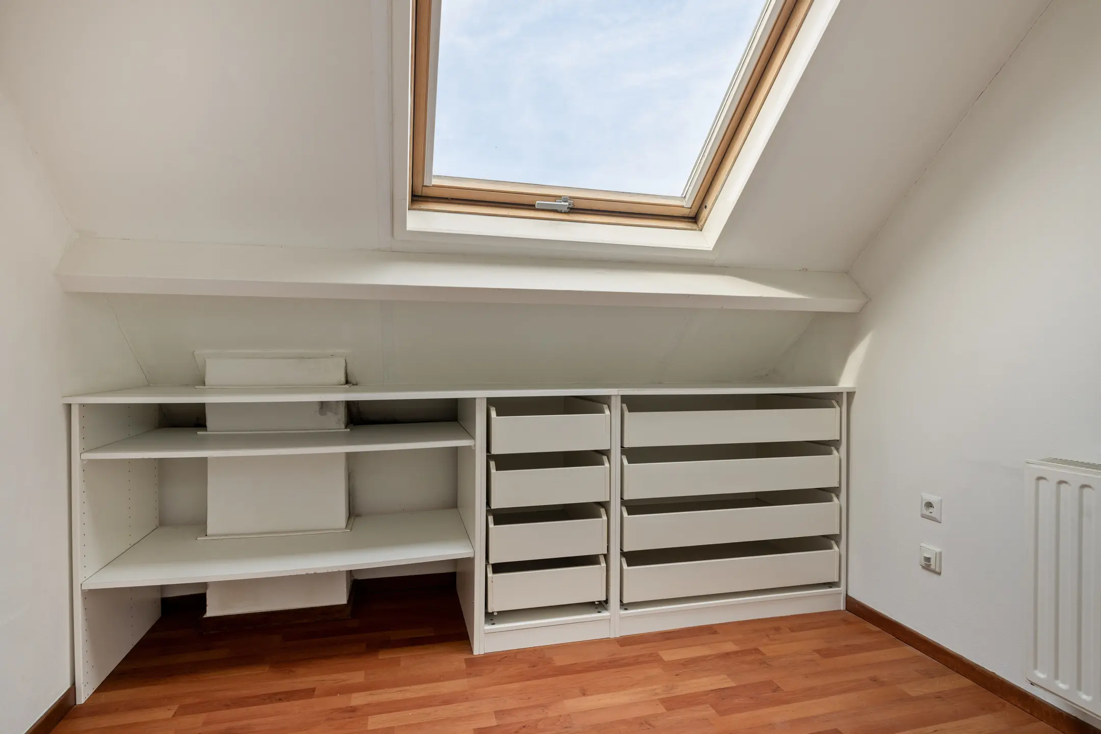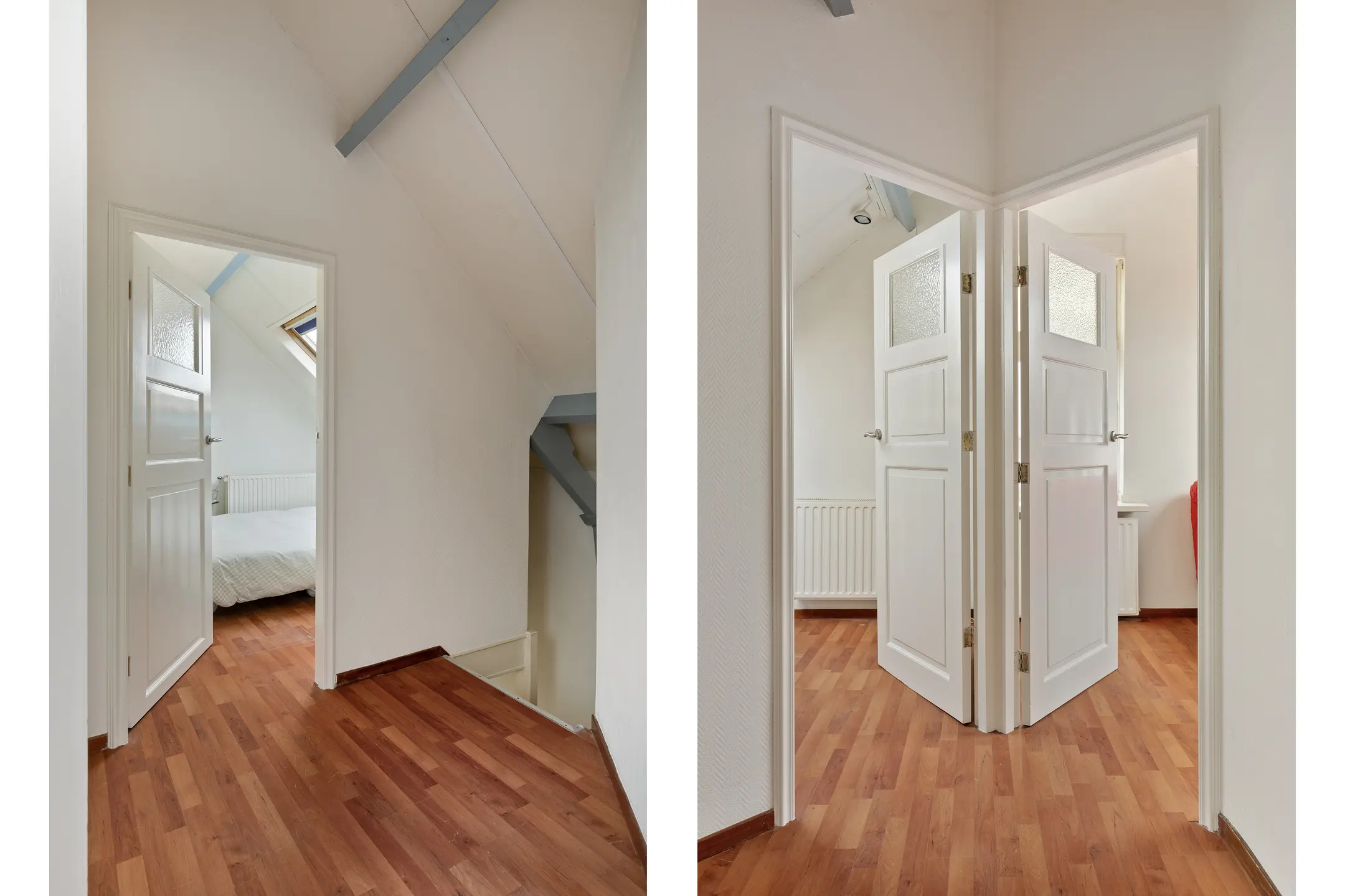 Op de tweede verdieping bevinden zich drie slaapkamers, waarvan er een ook als werkruimte dienst kan doen. Alle kamers zijn voorzien van een Velux dakraam, wat zorgt voor prettig daglicht.