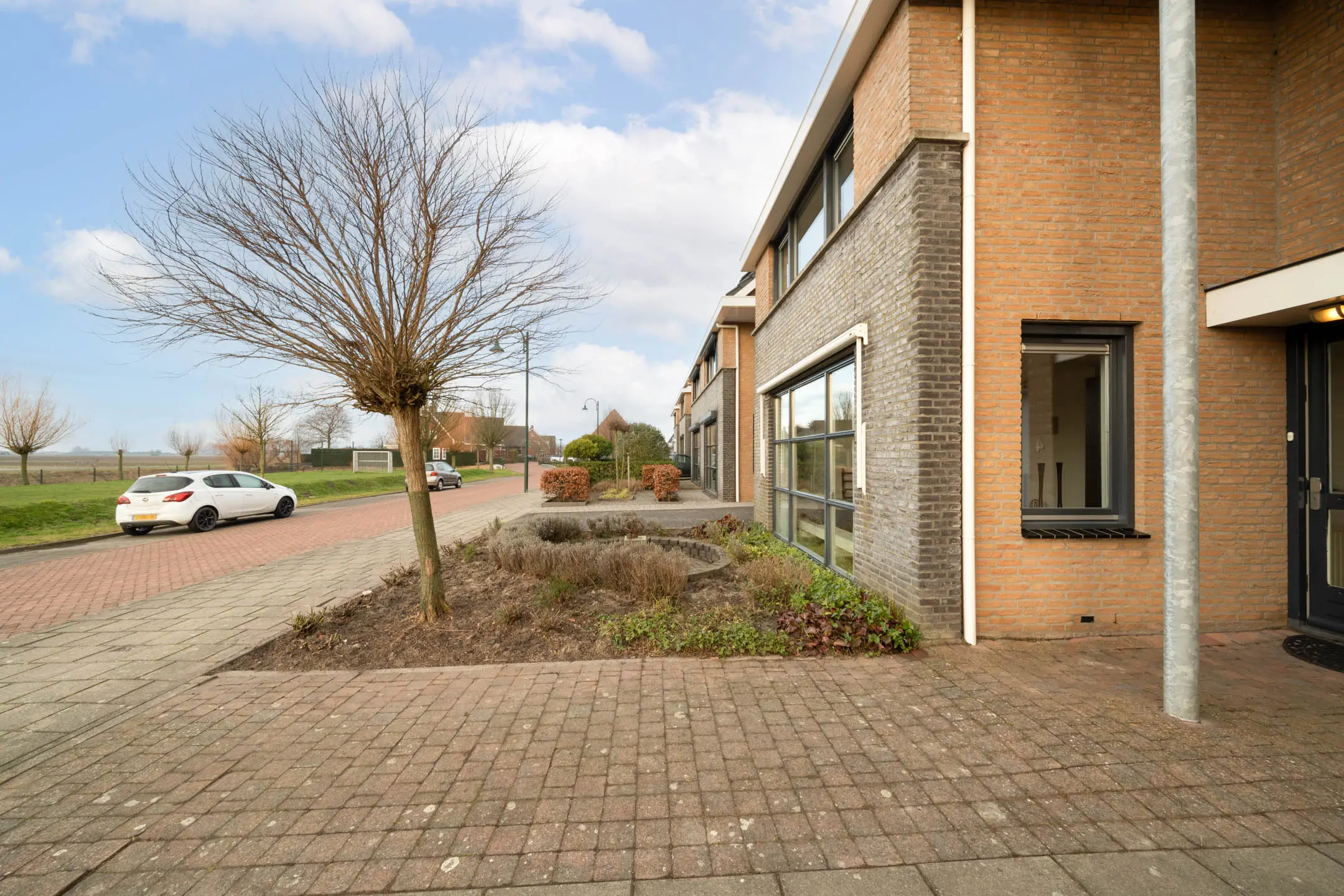 - aan rustige weg, in woonwijk, vrij uitzicht, open ligging