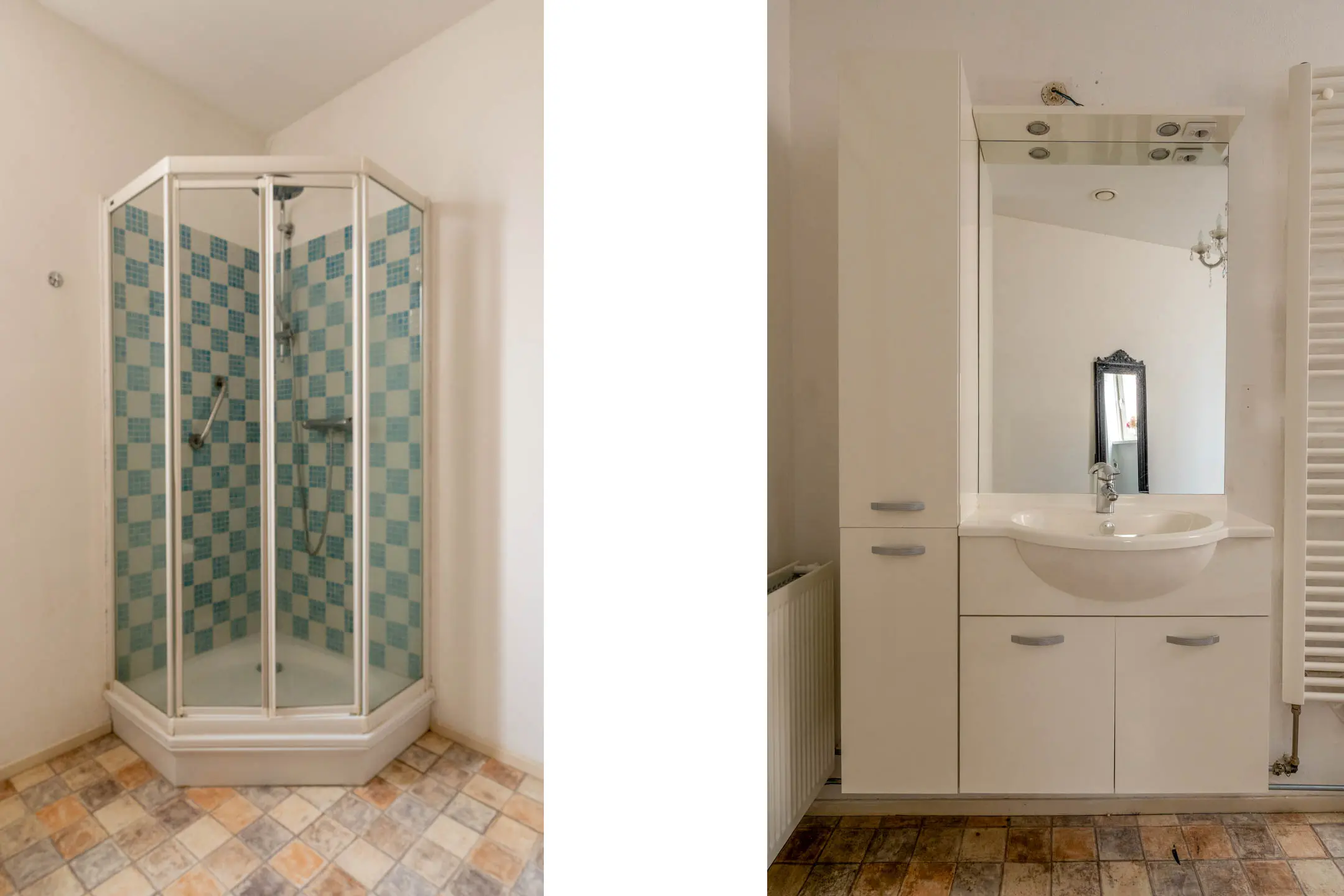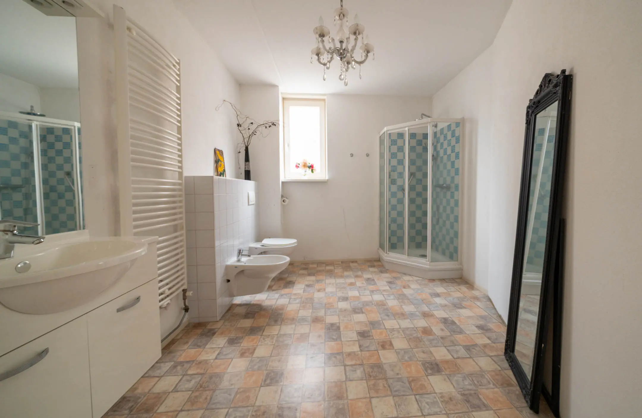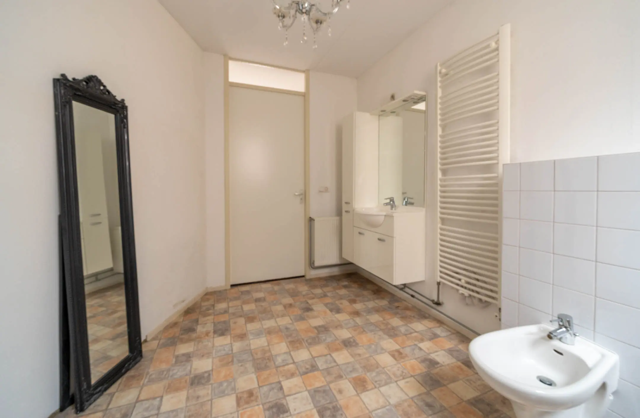 De badkamer is eveneens verrassend groot en voorzien van een douchecabine, (hang)toilet, bidet en een wastafelmeubel. Daarnaast is de badkamer voorzien van een designradiator. Het aanwezige raam zorgt voor natuurlijke lichtinval en frisse ventilatie.