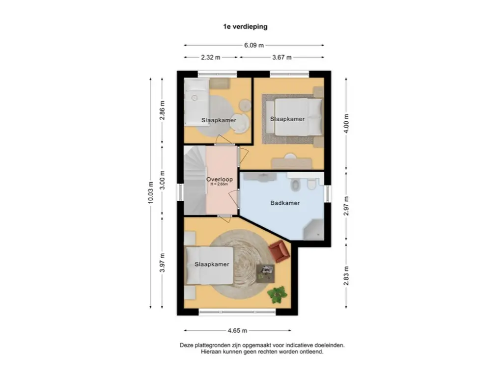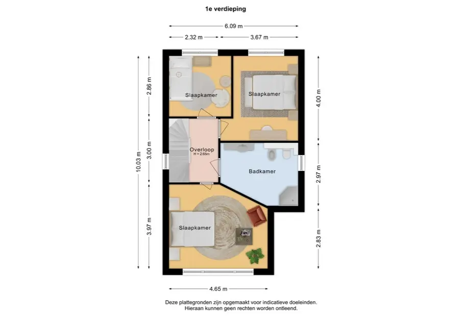 Op de eerste verdieping bevinden zich drie slaapkamers en ook hier valt direct de ruime opzet op. De hoofdslaapkamer ligt aan de voorzijde van de woning en is opvallend royaal van formaat. De twee overige slaapkamers zijn eveneens prettig ruim.