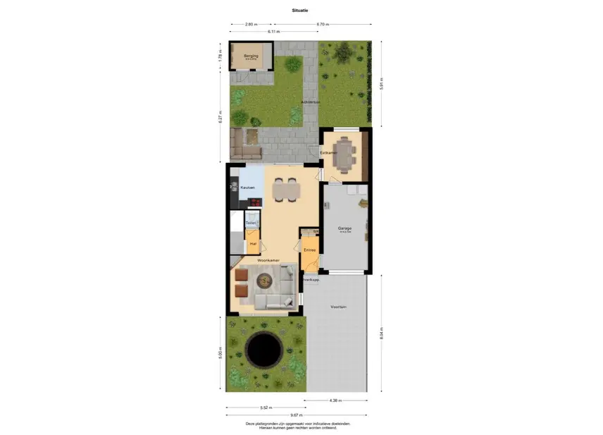 - achtertuin met een oppervlakte van 69 m² en is gelegen op het noordoosten