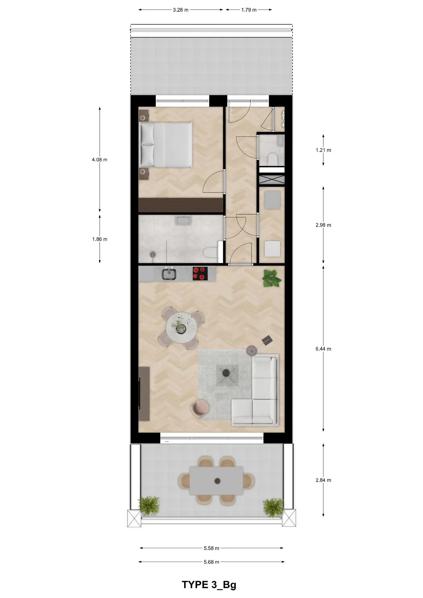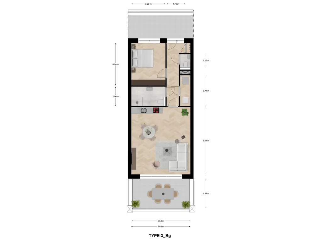 Type 3 – Sfeervol appartement met lichte woonkamer en buitenruimte
