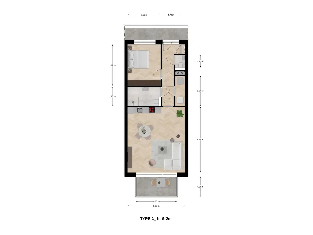 Type 3 – Sfeervol appartement met lichte woonkamer en buitenruimte