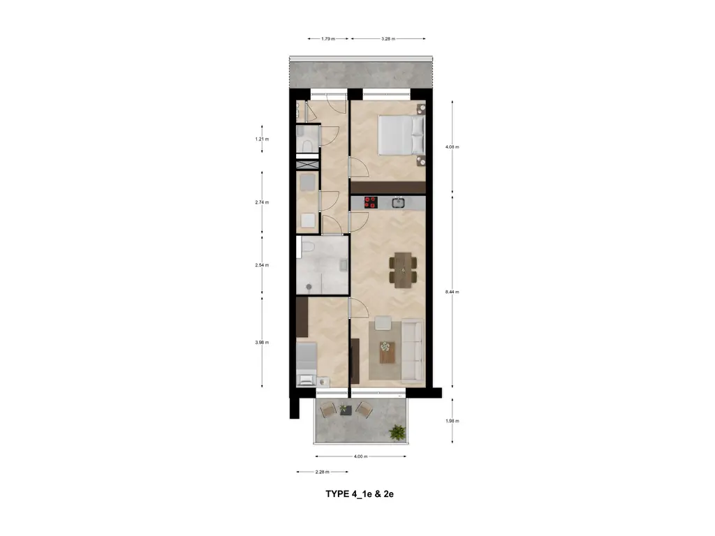 Type 4 – Ruim en licht appartement met twee slaapkamers en buitenruimte