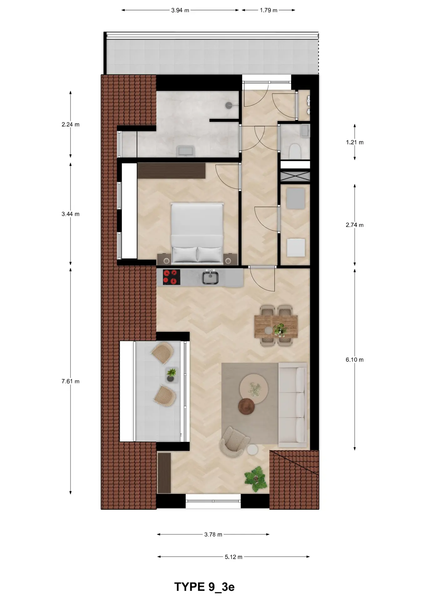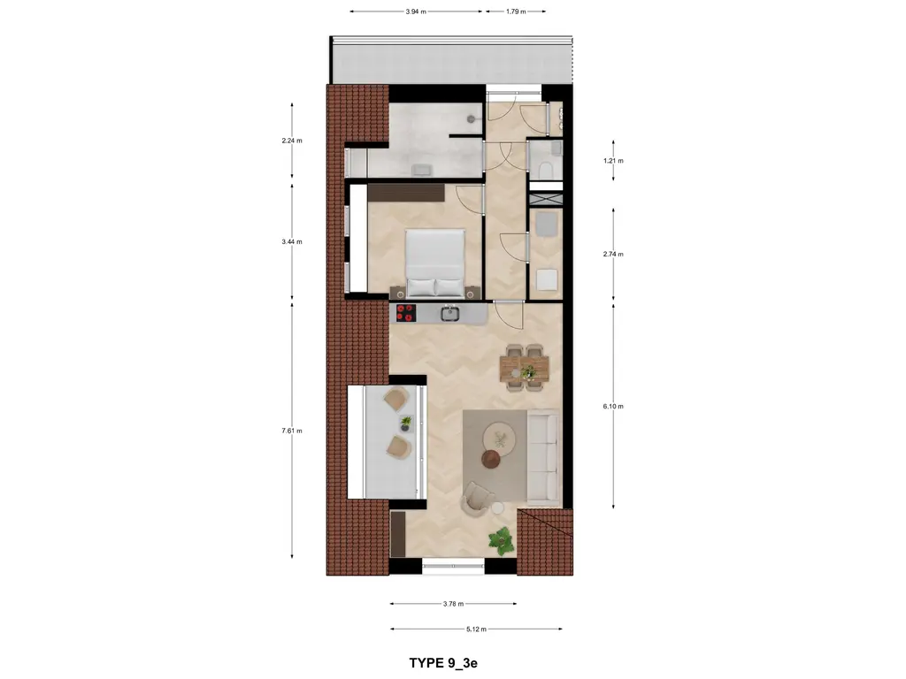 Type 9 – Slim ingedeeld hoekappartement met uitzicht op het Havenplein