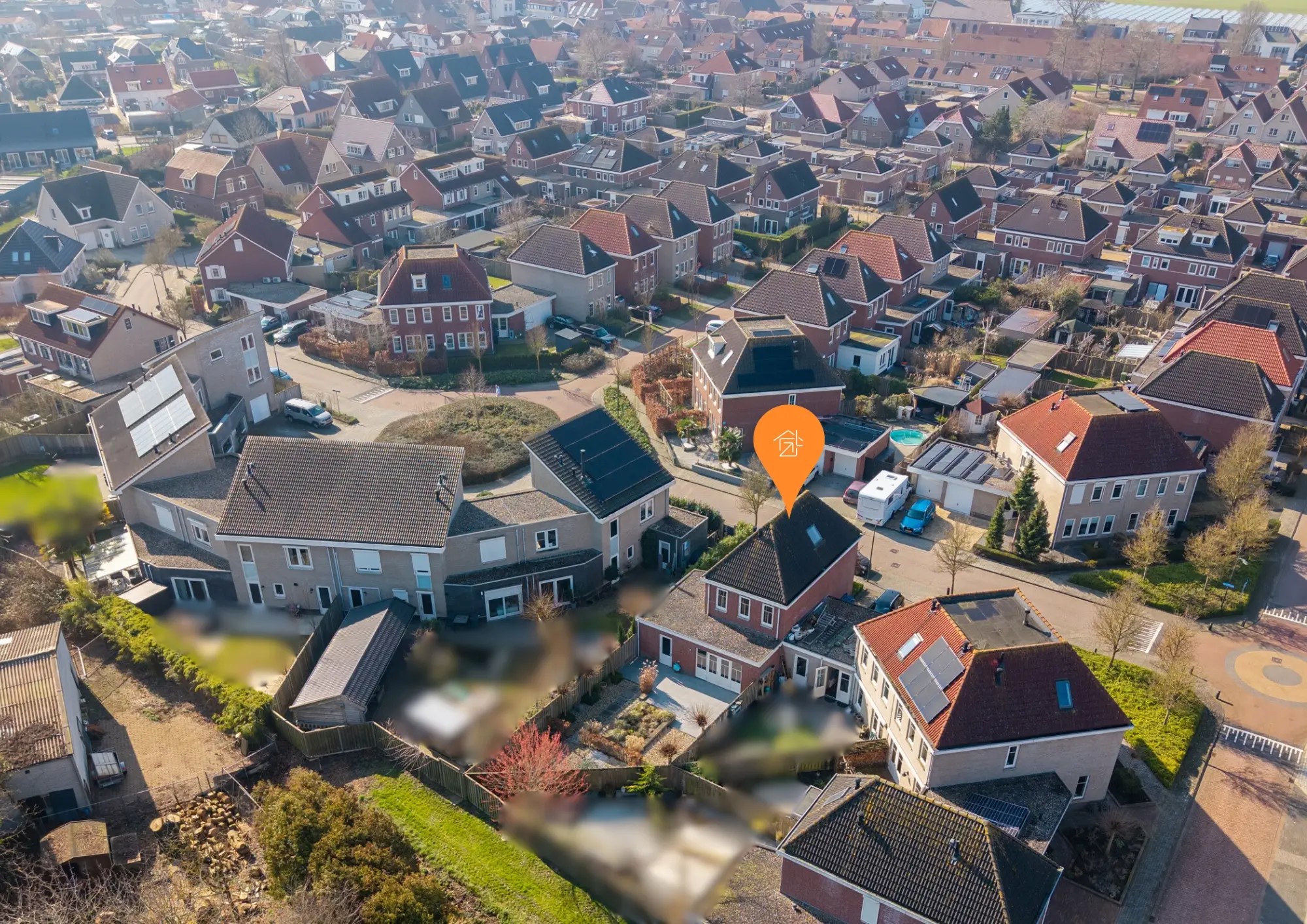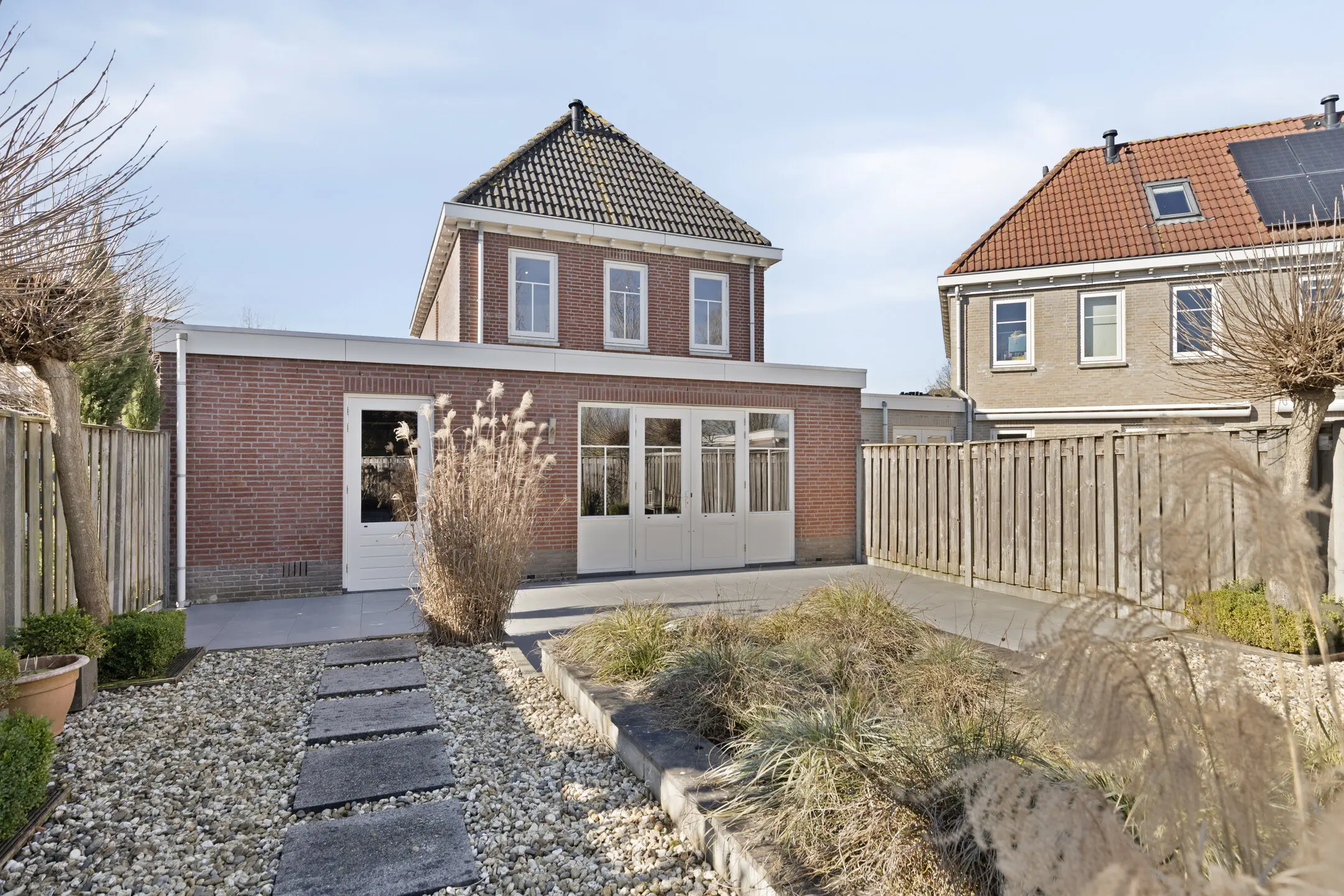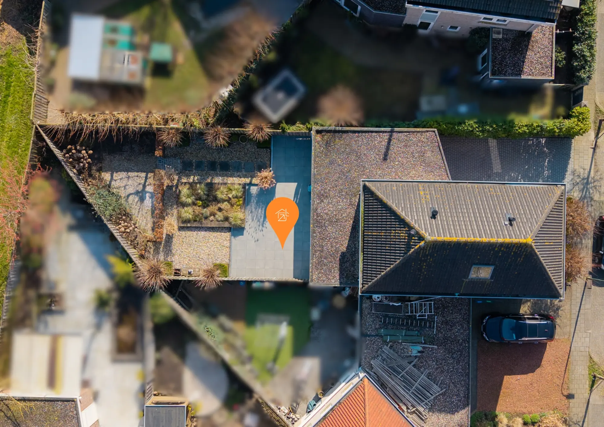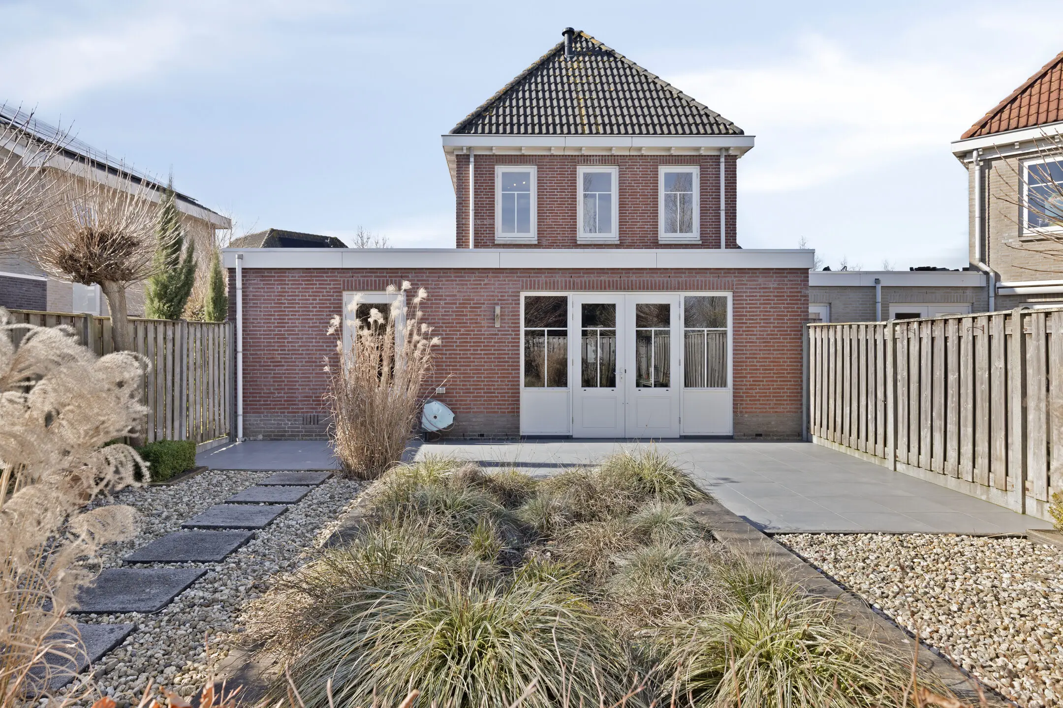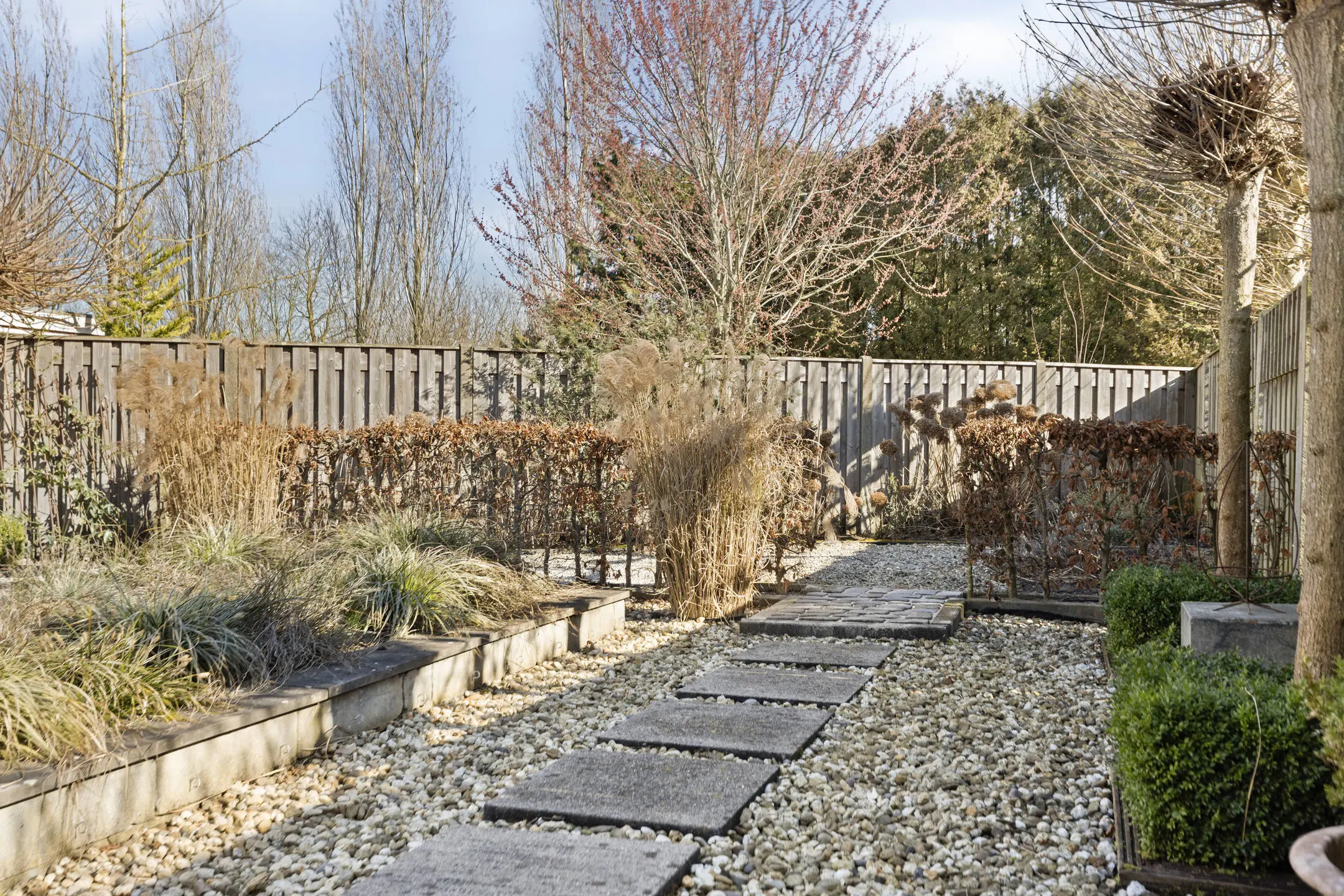 De voortuin is verzorgd aangelegd met sierbestrating en een siertuin. De ruime oprit biedt plaats aan twee auto’s.