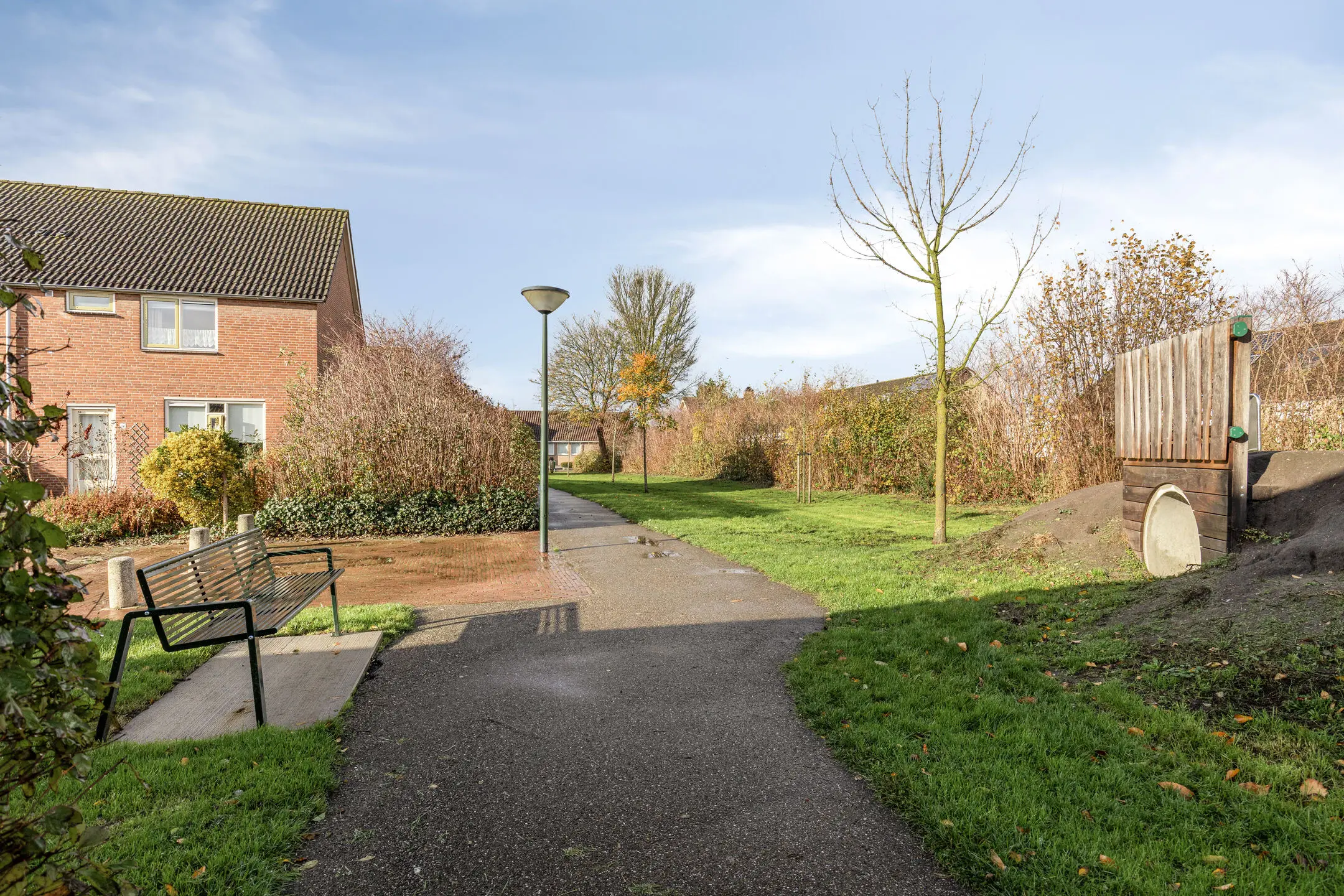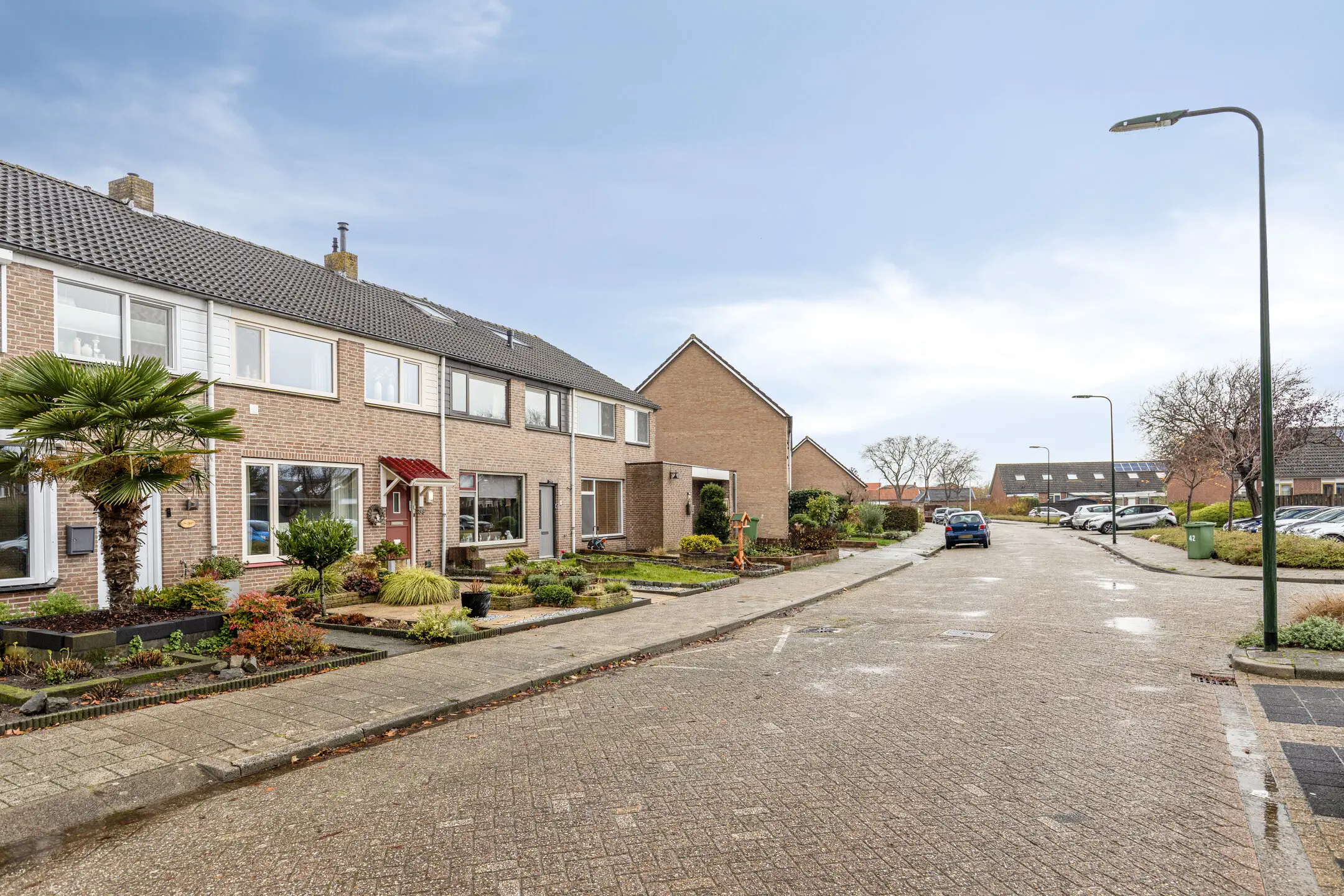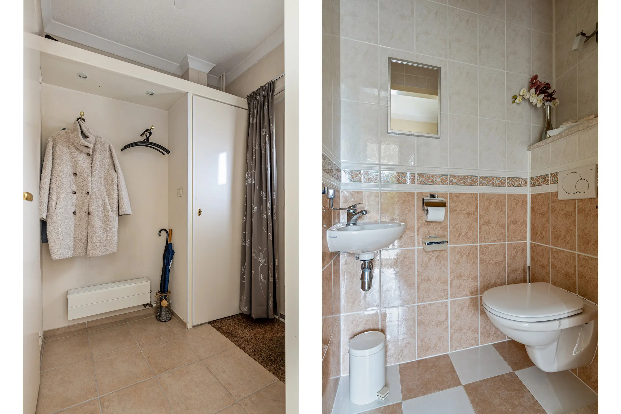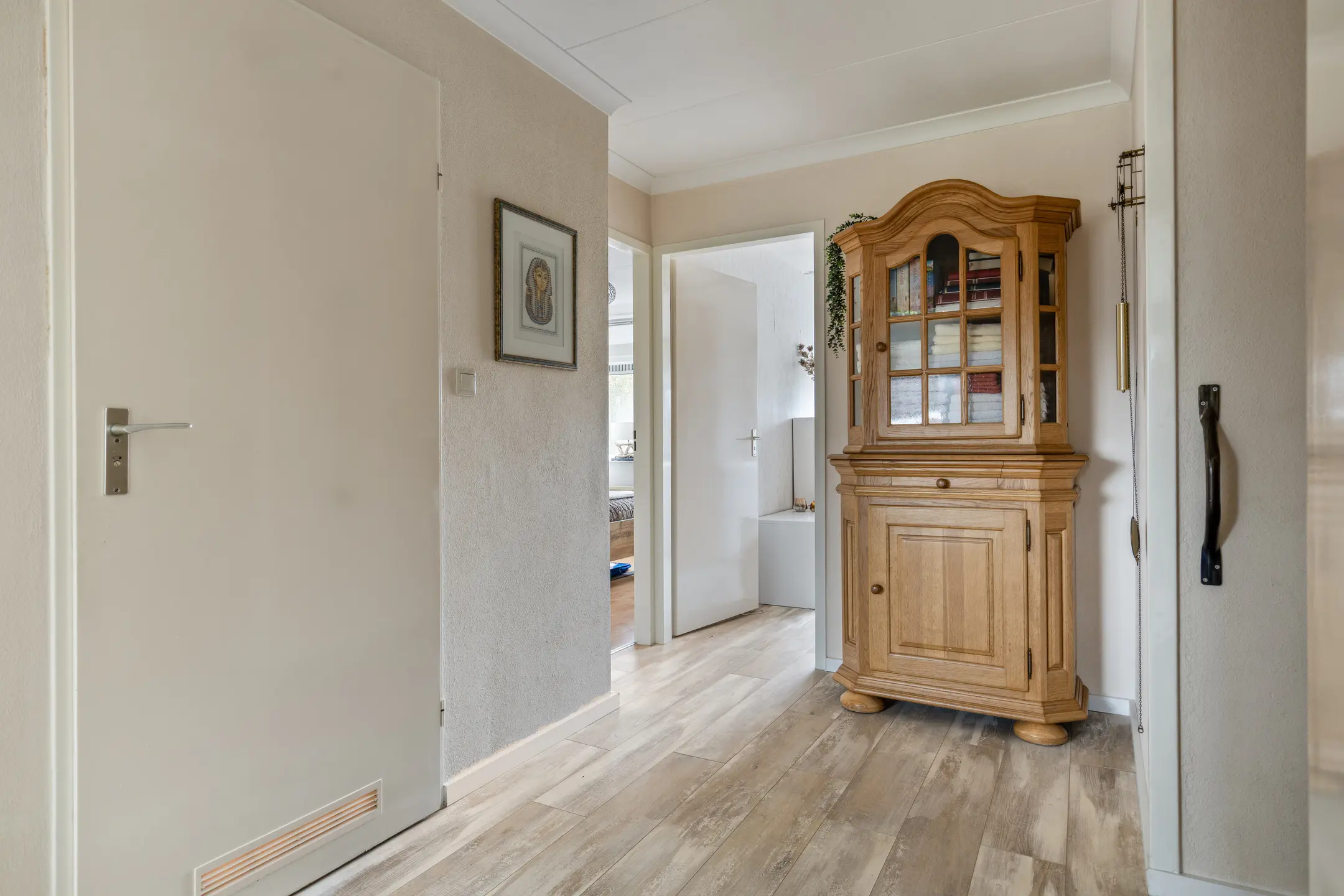 Via de entree kom je binnen in de lichte hal met meterkast en een ruim toilet. Vanuit hier bereik je de sfeervolle woonkamer, waar de schouwpartij met gashaard direct in het oog springt. Onder de trap bevindt zich een praktische trapkast. Aan de achterzijde ligt de halfopen woonkeuken (2006), uitgerust met de benodigde inbouwapparatuur en een fijne verbinding met de achtertuin. Via de tuindeur stap je de ruime, zonnige achtertuin op het zuidwesten in, voorzien van een berging, vrij achterom en zonwering.