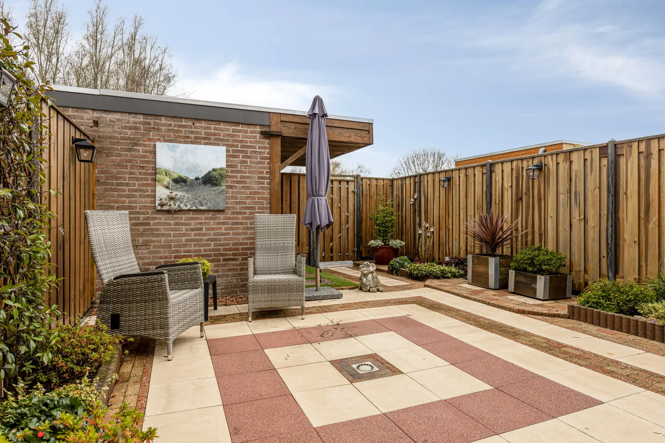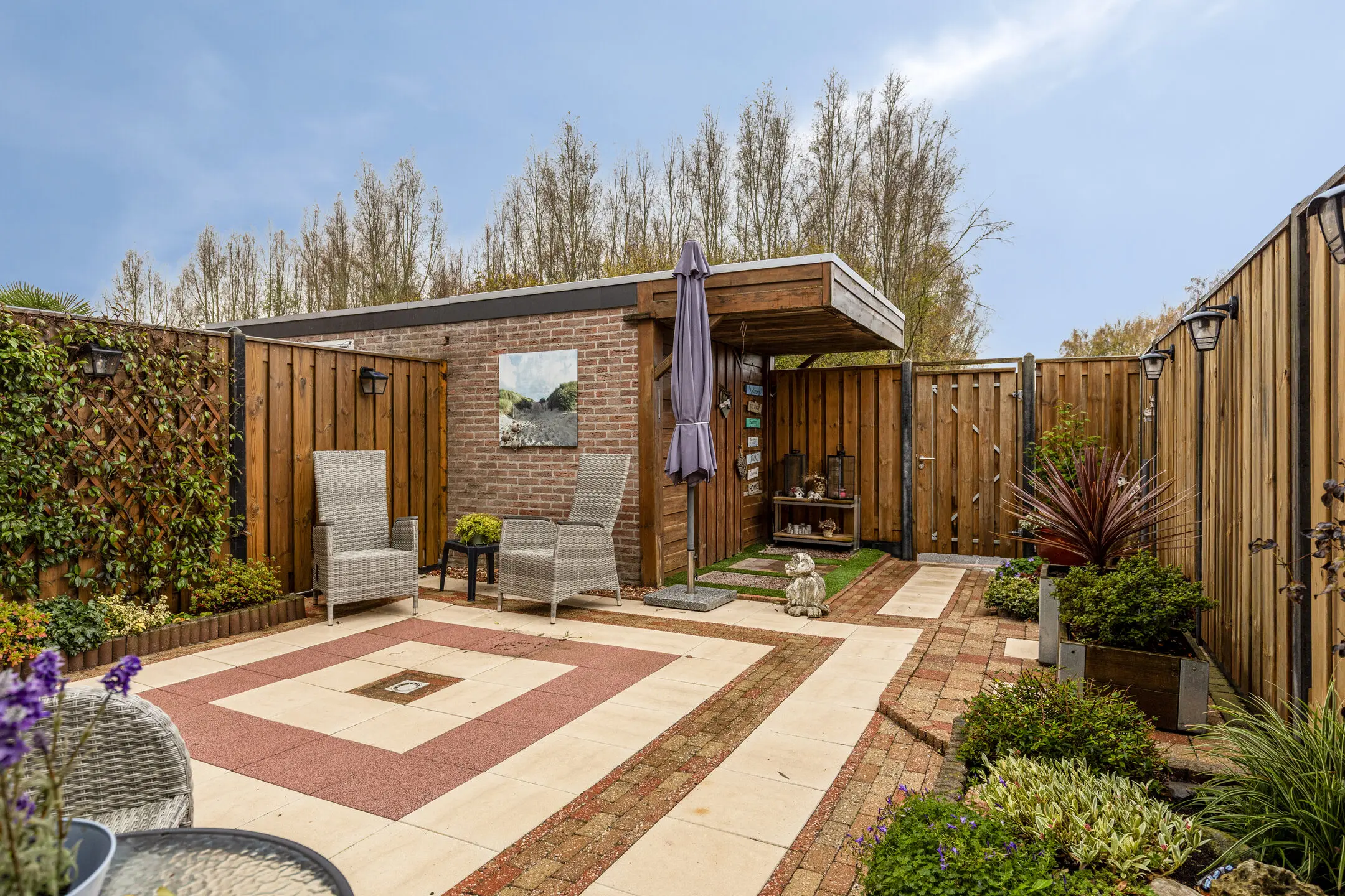 * Zonnige achtertuin op het zuidwesten met berging en vrij achterom