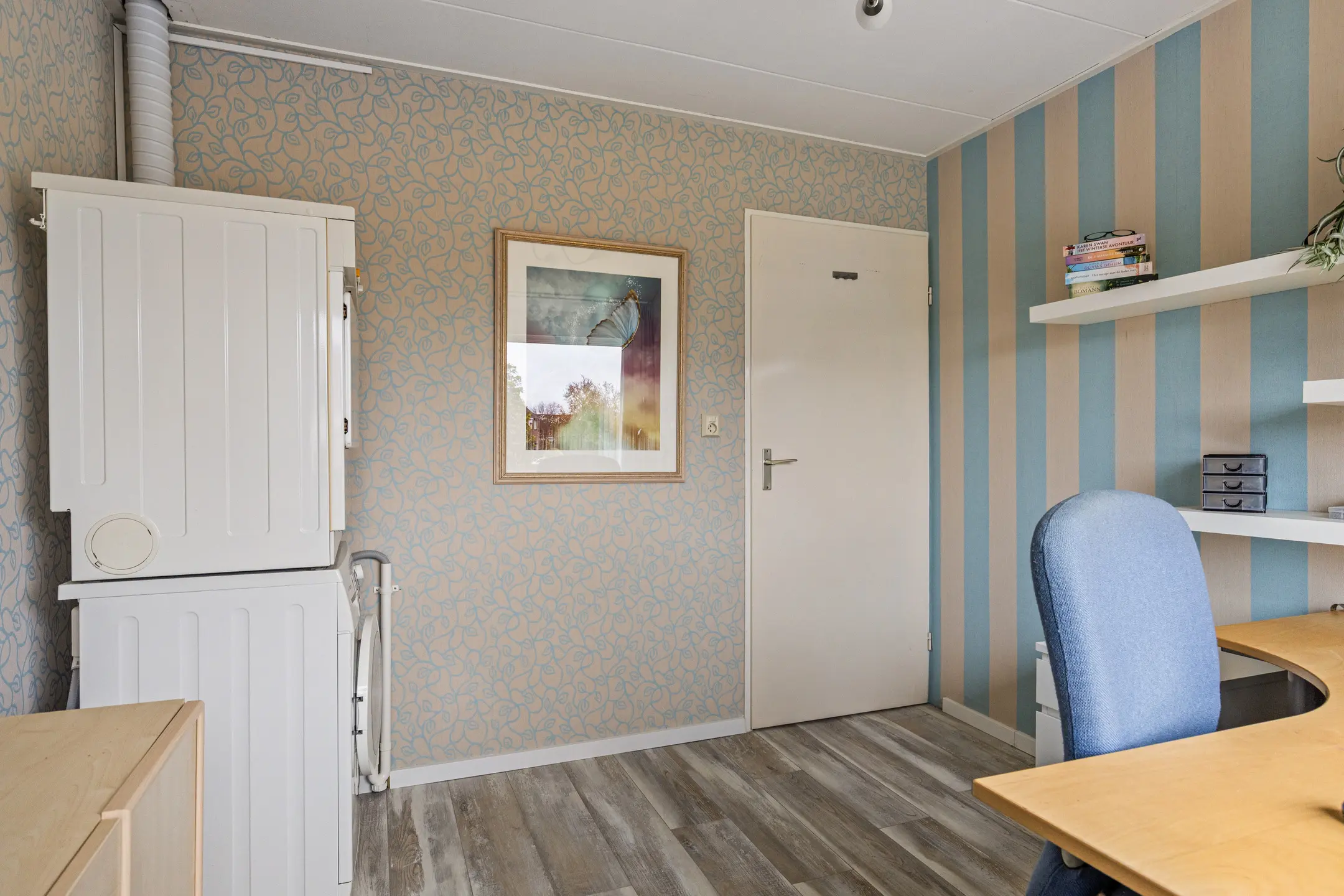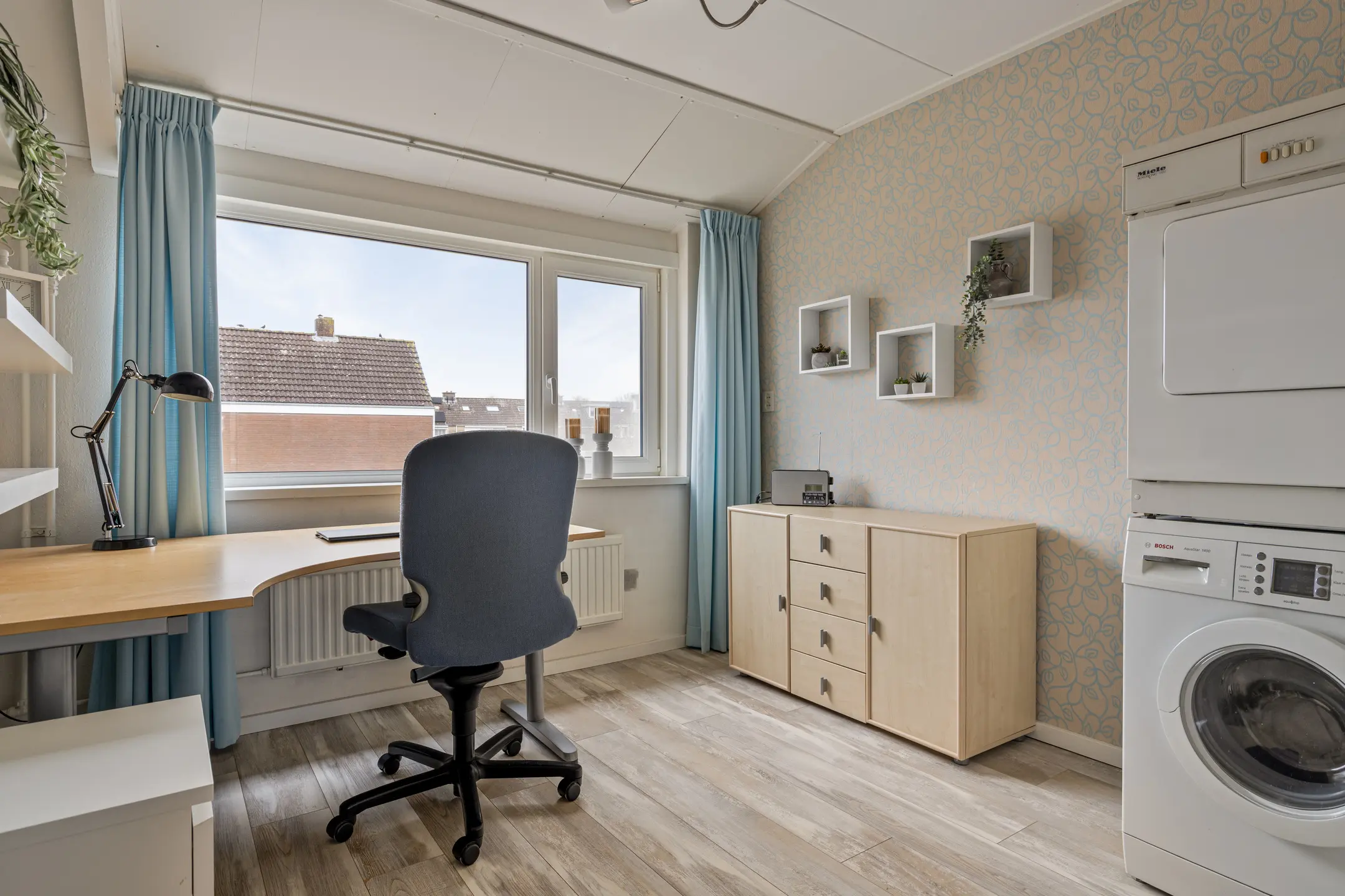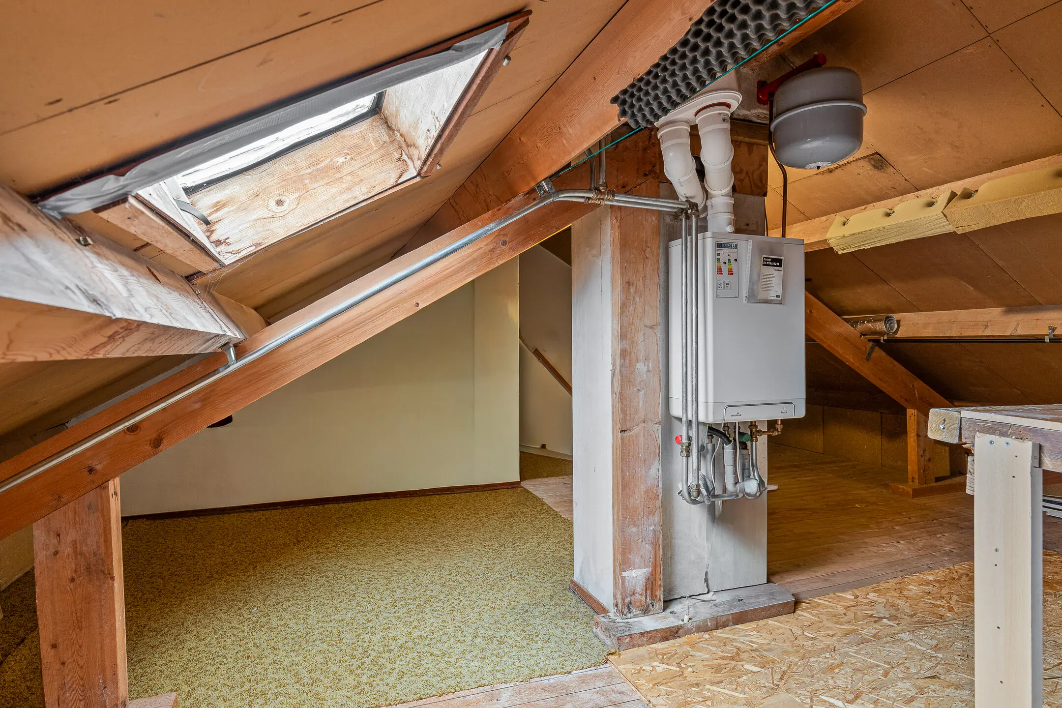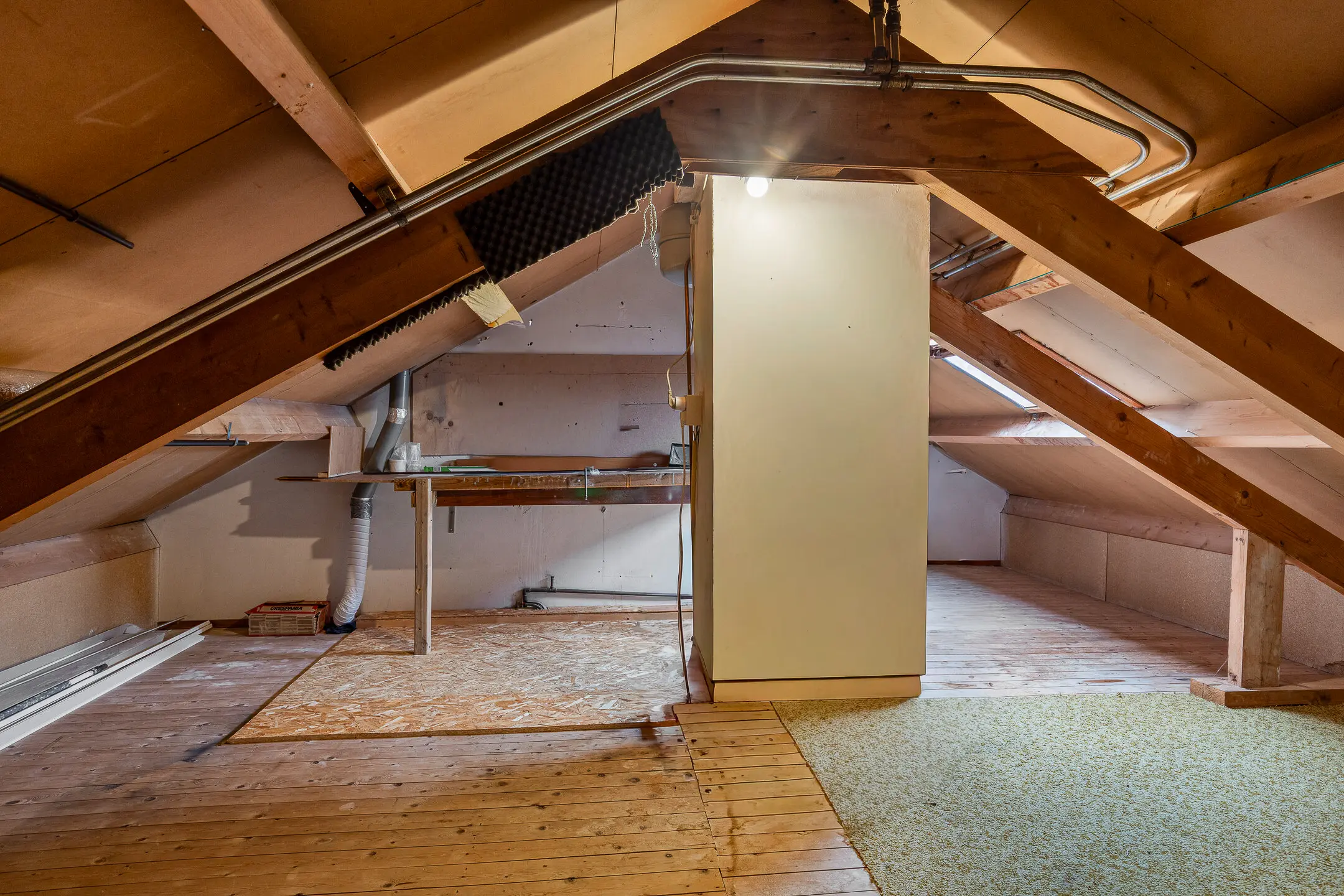 De zolderverdieping is bereikbaar via een vaste trap en beschikt over een dakraam, waardoor deze ruimte prettig licht is. Hier bevindt zich de CV-ketel. Ook hier kan een aansluiting voor wasmachine en droger worden gerealiseerd. De zolder biedt daarnaast extra opbergmogelijkheden of kan worden ingericht als werk- of hobbyruimte.