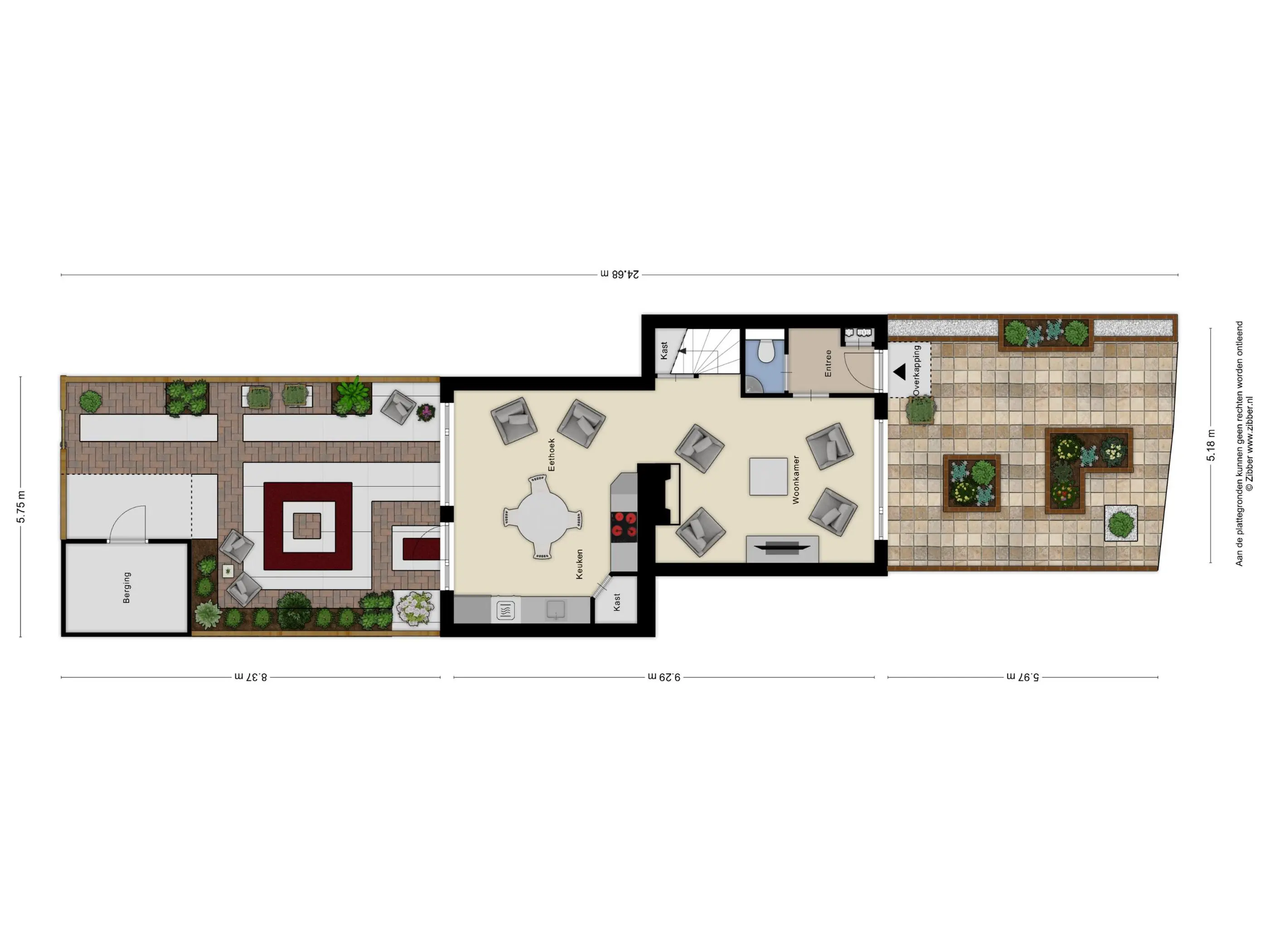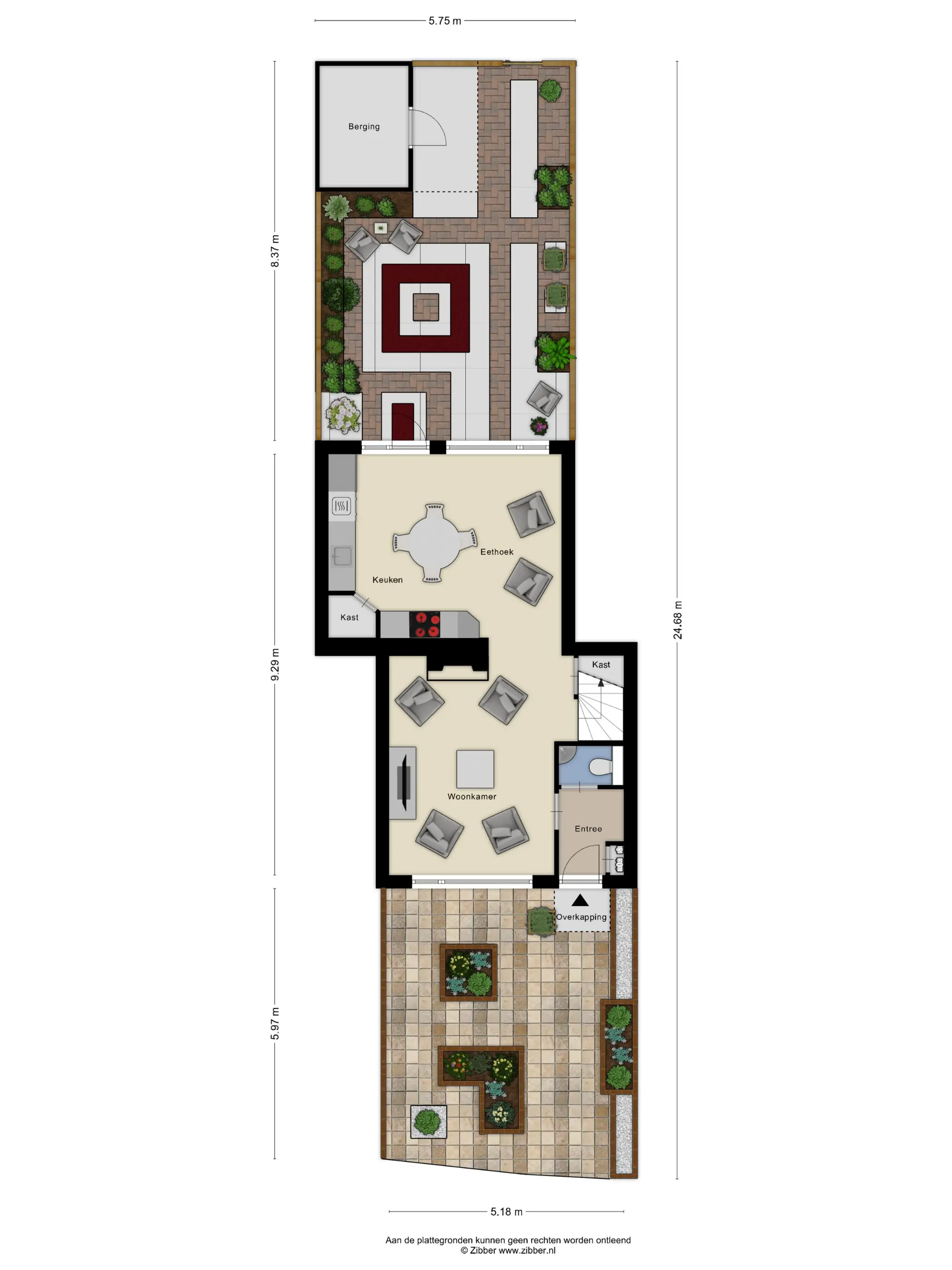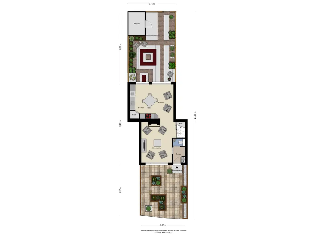 - achtertuin met een oppervlakte van 48 m² en is gelegen op het zuidwesten