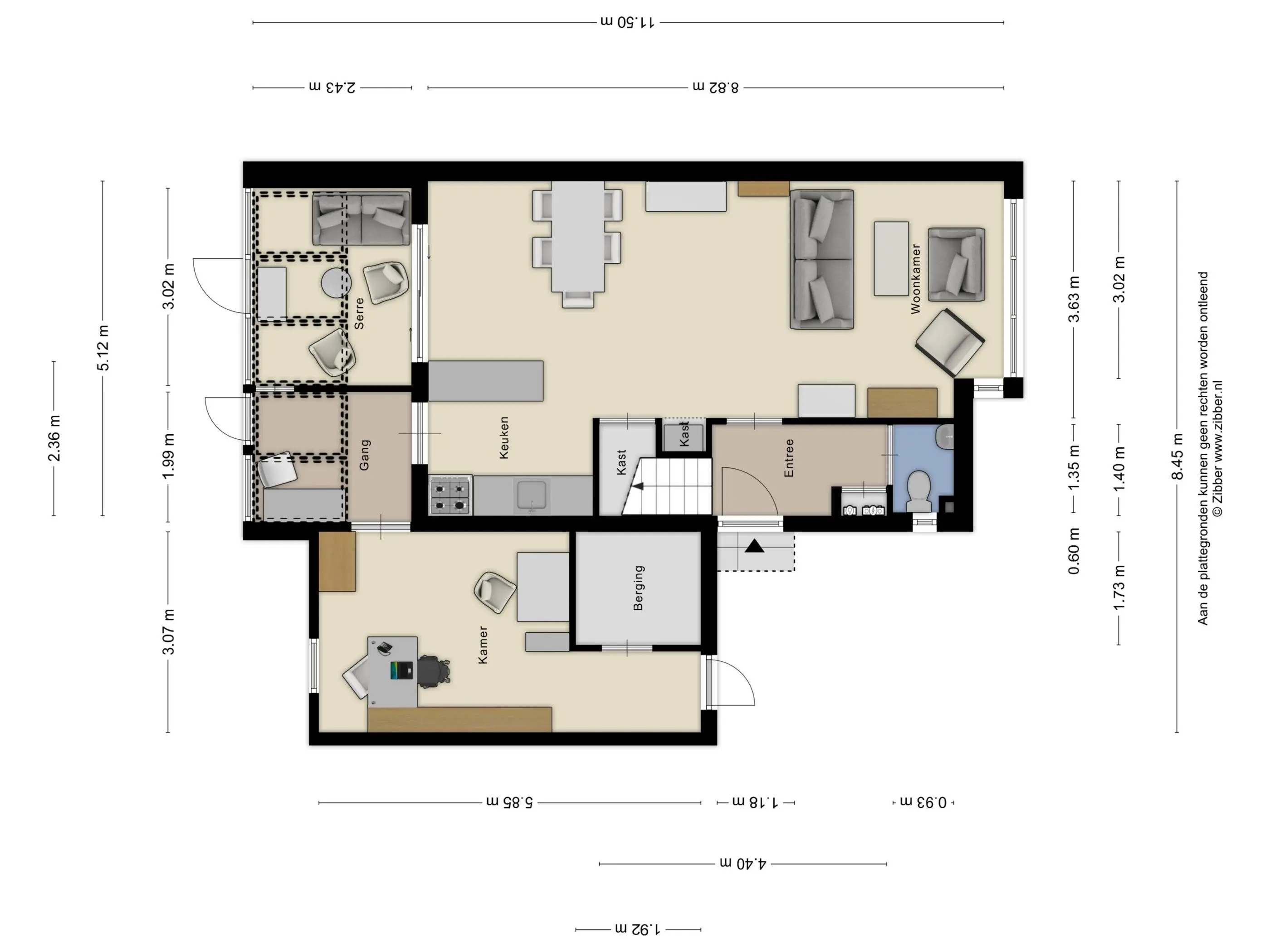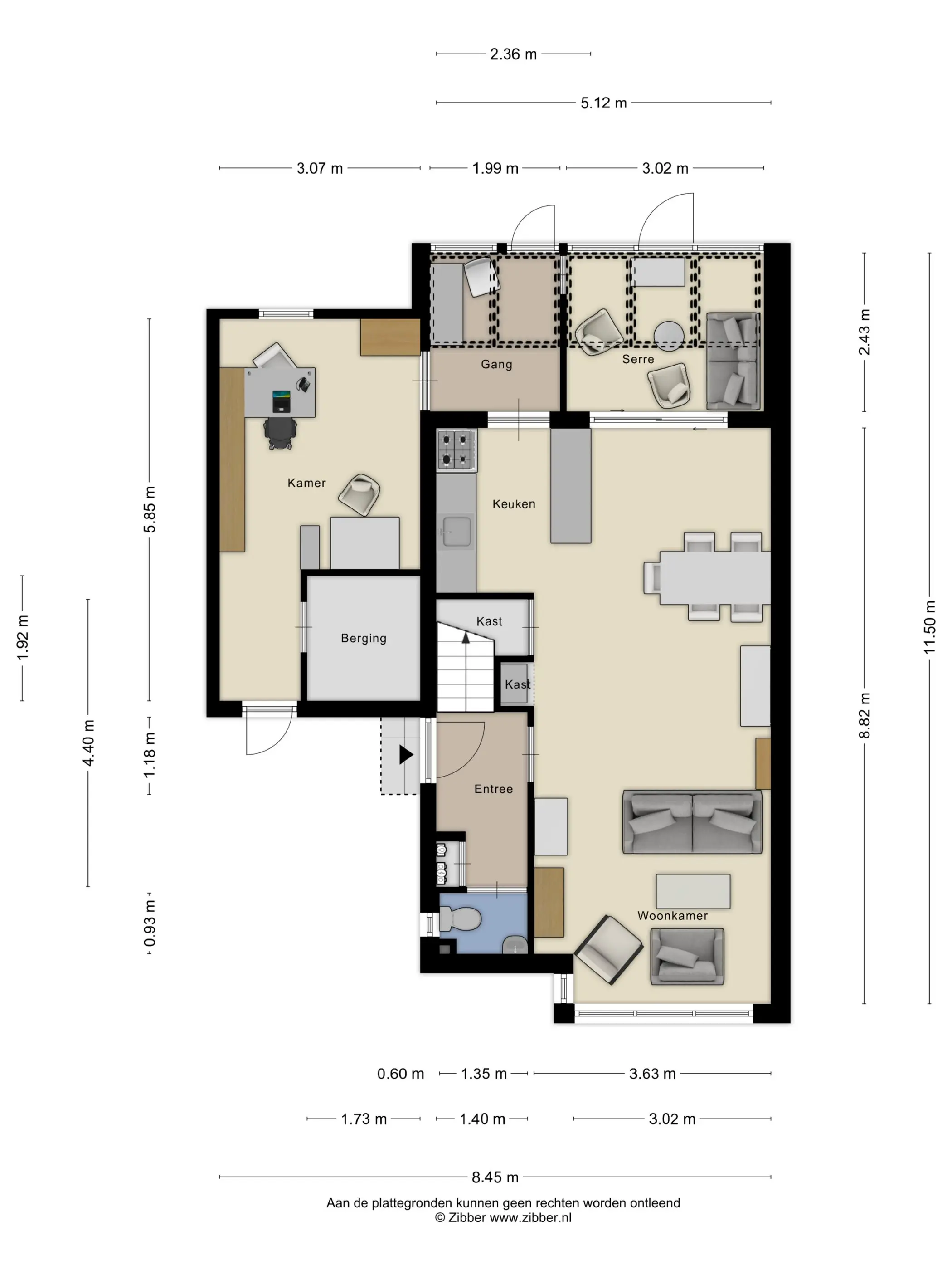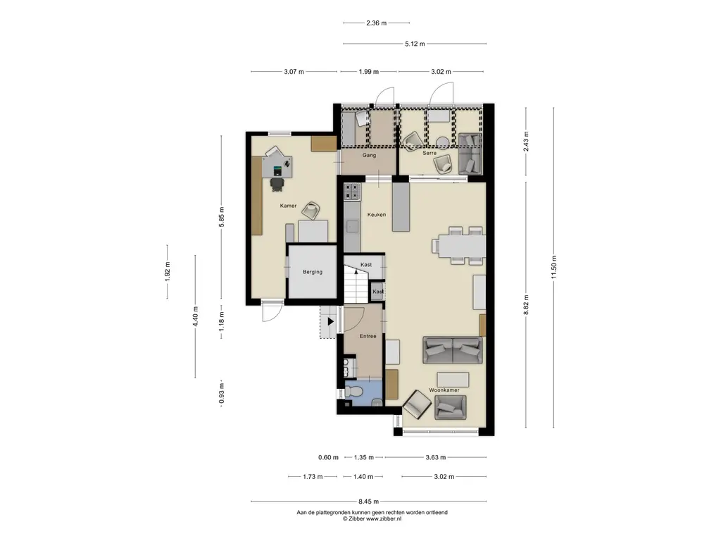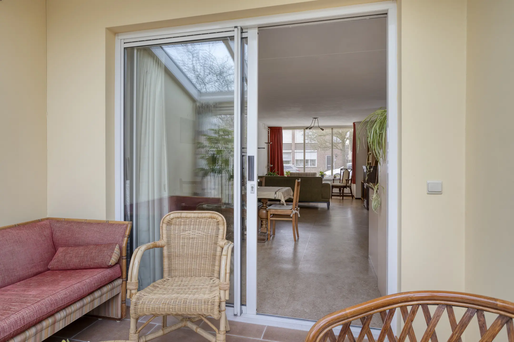 Aan de achterzijde is een serre aangebouwd, bereikbaar via een aluminium schuifpui. De serre vormt een mooie verlenging van de woonkamer en heeft dankzij de grote raampartijen en loopdeur naar de tuin een eigen, lichte sfeer. Een fijne plek om al vroeg in het voorjaar van het buitenleven te genieten.