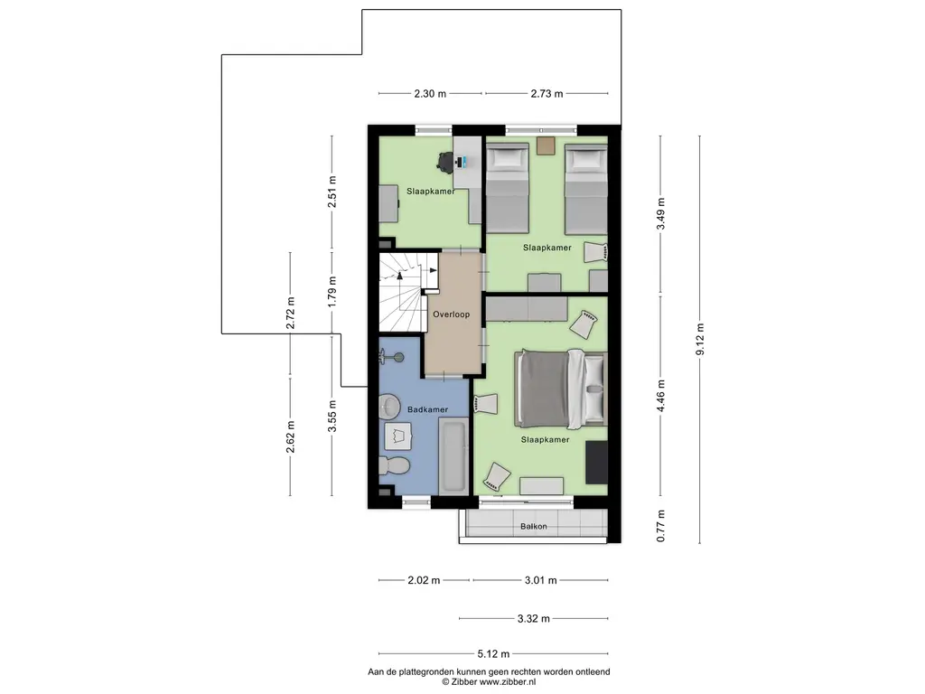 Alle slaapkamers zijn goed bemeten en hebben een prettige lichtinval. Hierdoor zijn ze flexibel in gebruik als kinder-, werk- of logeerkamer. De slaapkamer aan de voorzijde beschikt over een aluminium schuifpui met toegang tot het balkon.