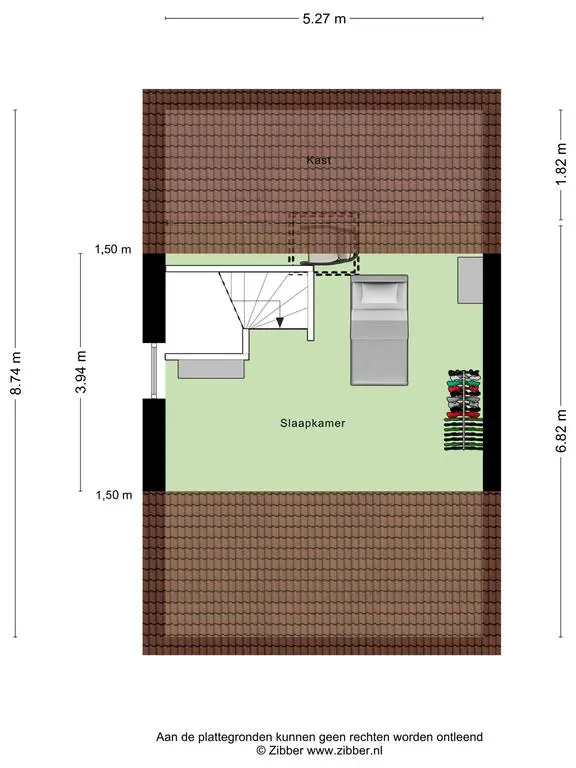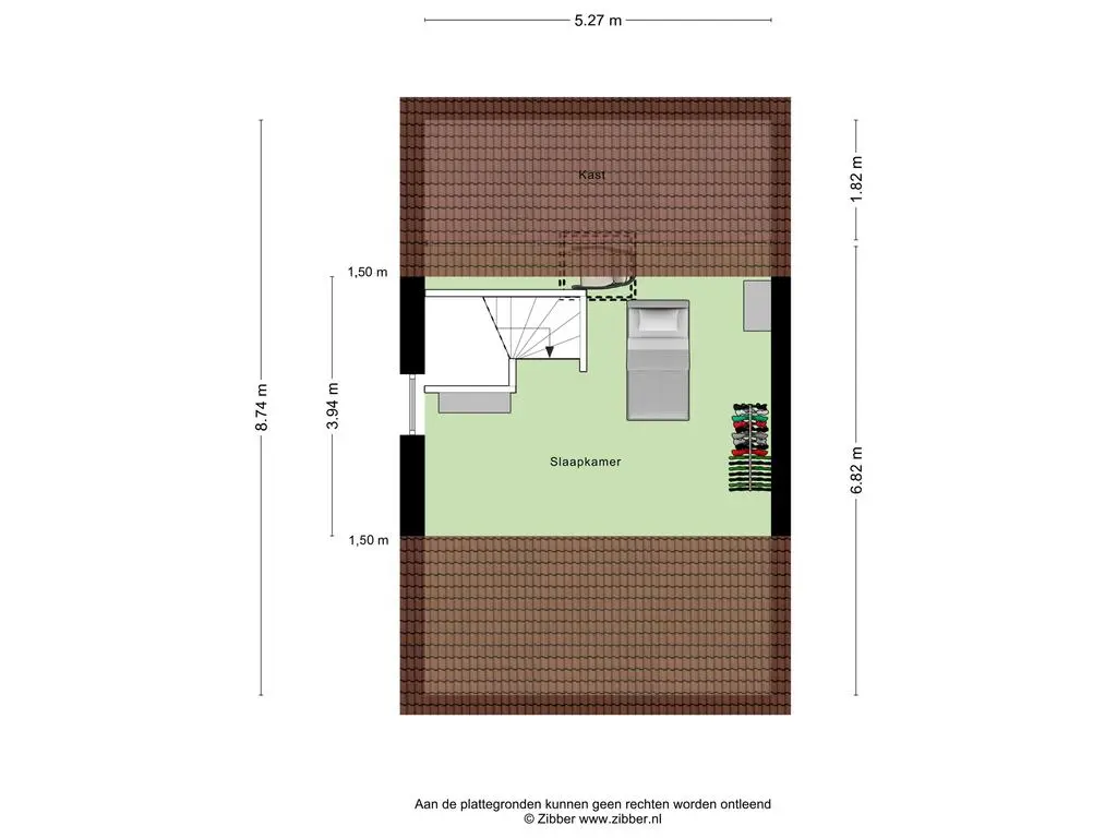 De verrassend ruime zolderkamer is zowel als slaapkamer als hobbyruimte te gebruiken en beschikt over een dakraam en zijraam. Hier bevinden zich tevens de mechanische ventilatiebox en de omvormer van de zonnepanelen.