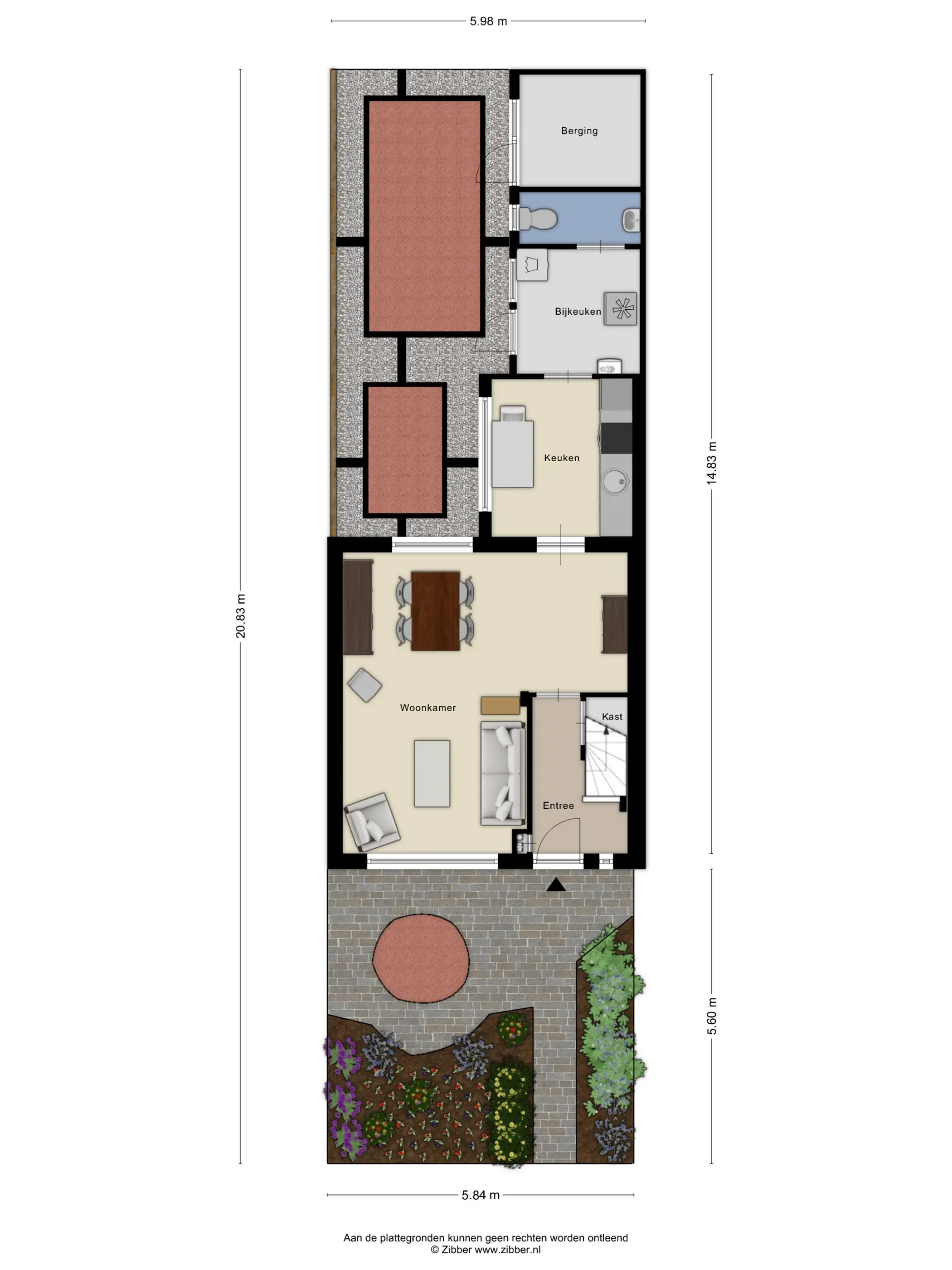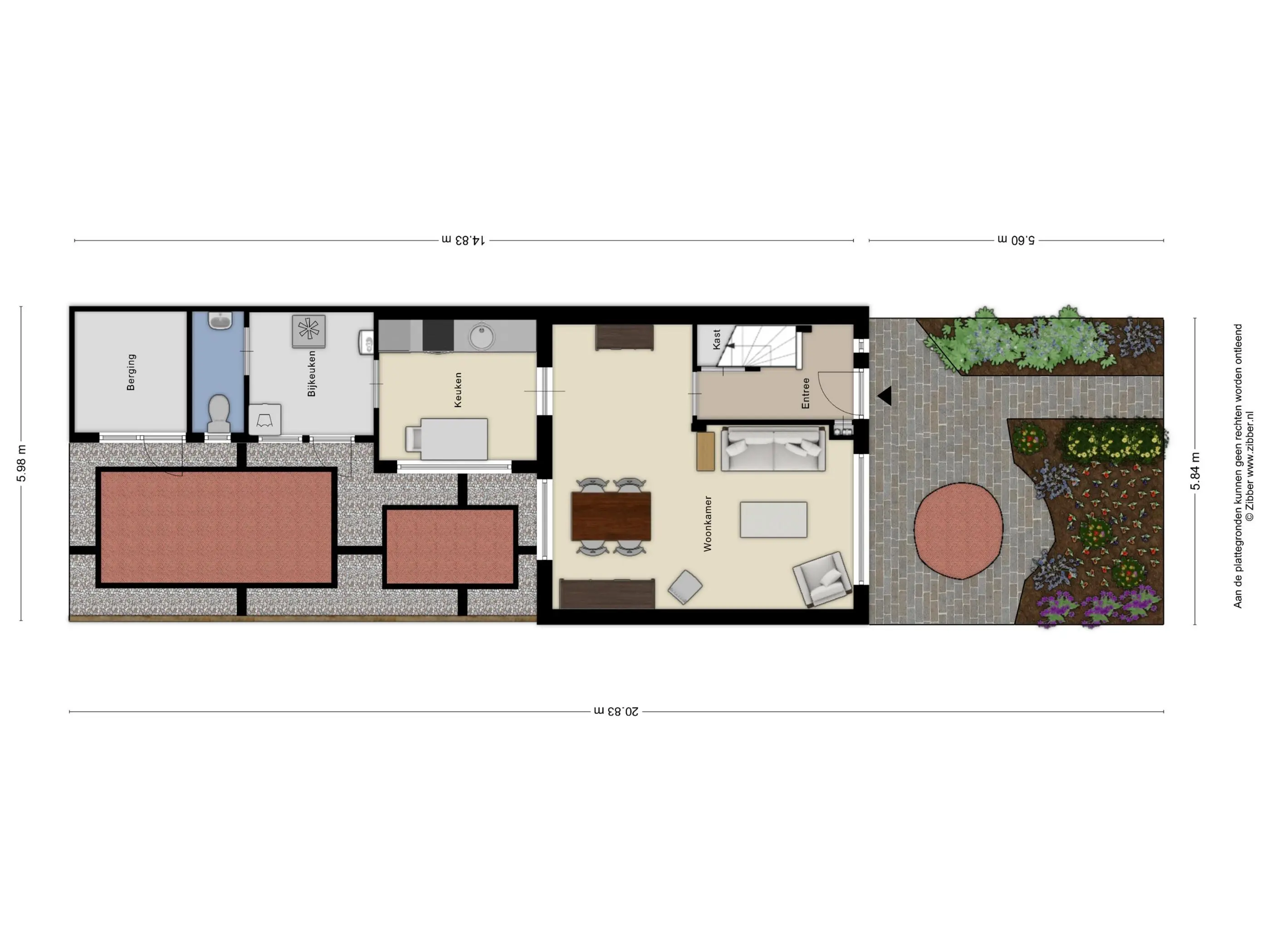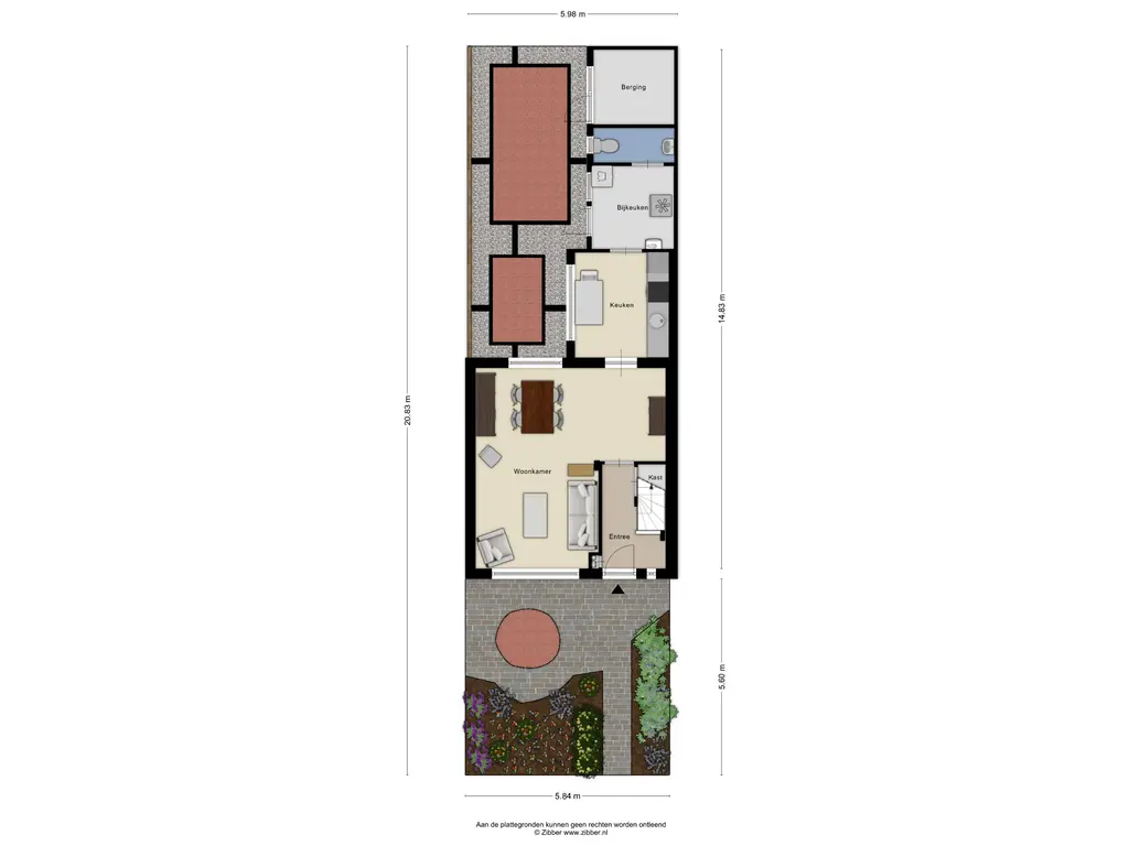 In de tuin bevindt zich een aangebouwde stenen berging, voorzien van verwarming en elektra. Ideaal voor het stallen van fietsen of het opbergen van tuingereedschap. Via de vrije achterom is de tuin bovendien gemakkelijk bereikbaar.