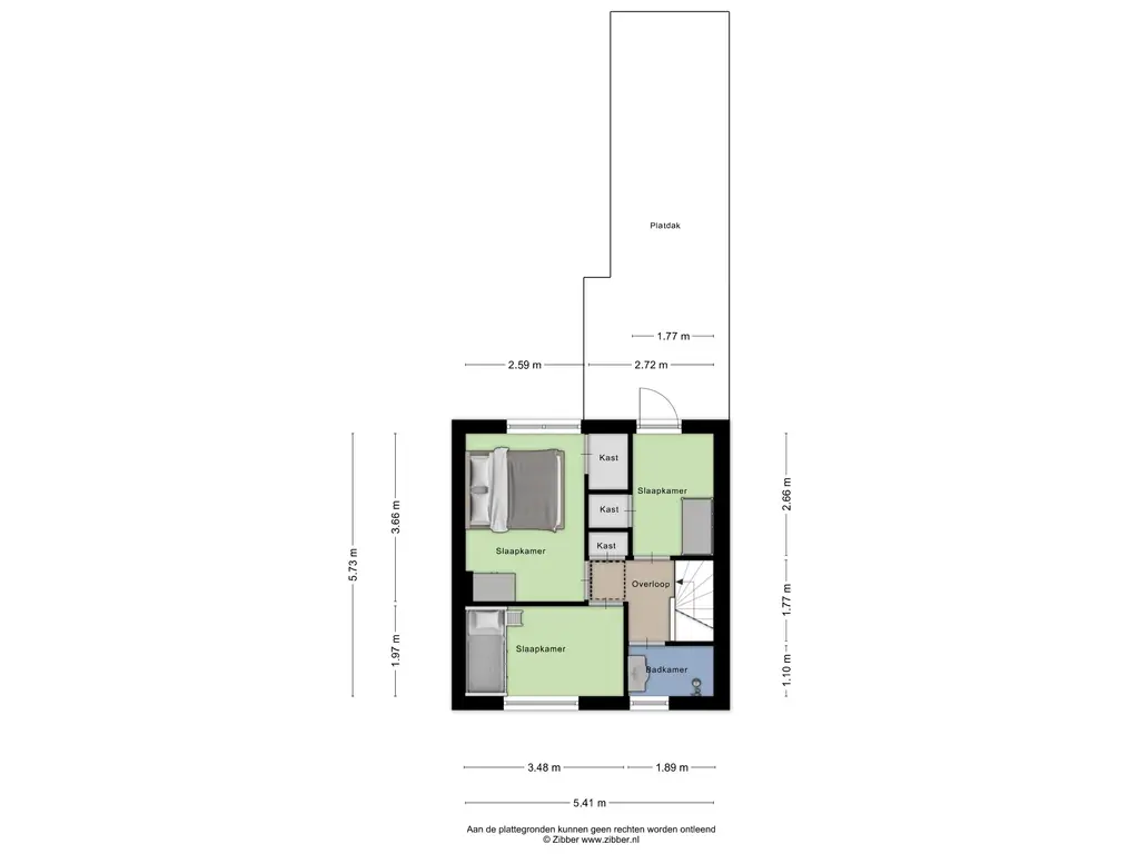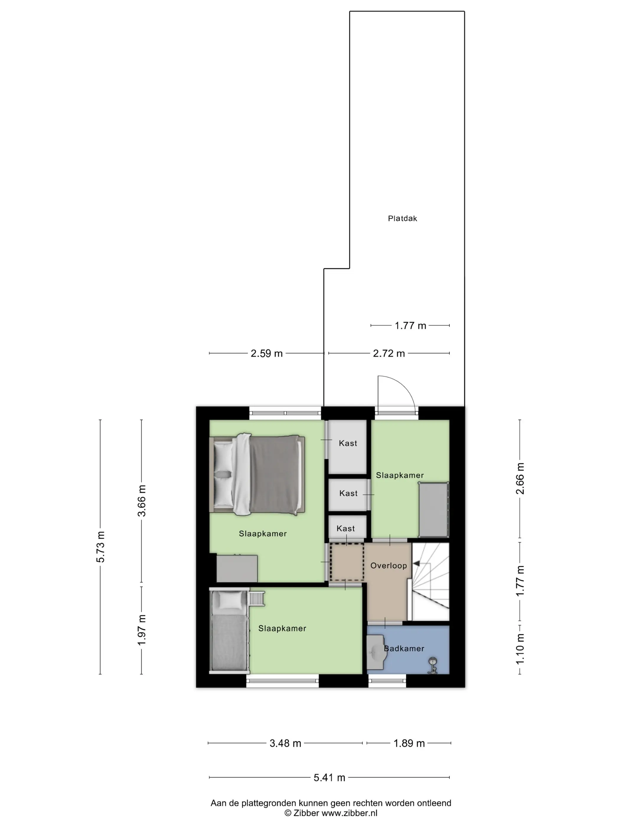 De overloop met vaste kast op de eerste verdieping geeft toegang tot drie slaapkamers en de badkamer. Alle drie de slaapkamers zijn van een prettig formaat. De twee slaapkamers aan de achterzijde zijn beide voorzien van een handige vaste kast. Eén van deze kamers beschikt over een kunststof kozijn met rolluik, terwijl de andere kamer toegang biedt tot het platte dak.