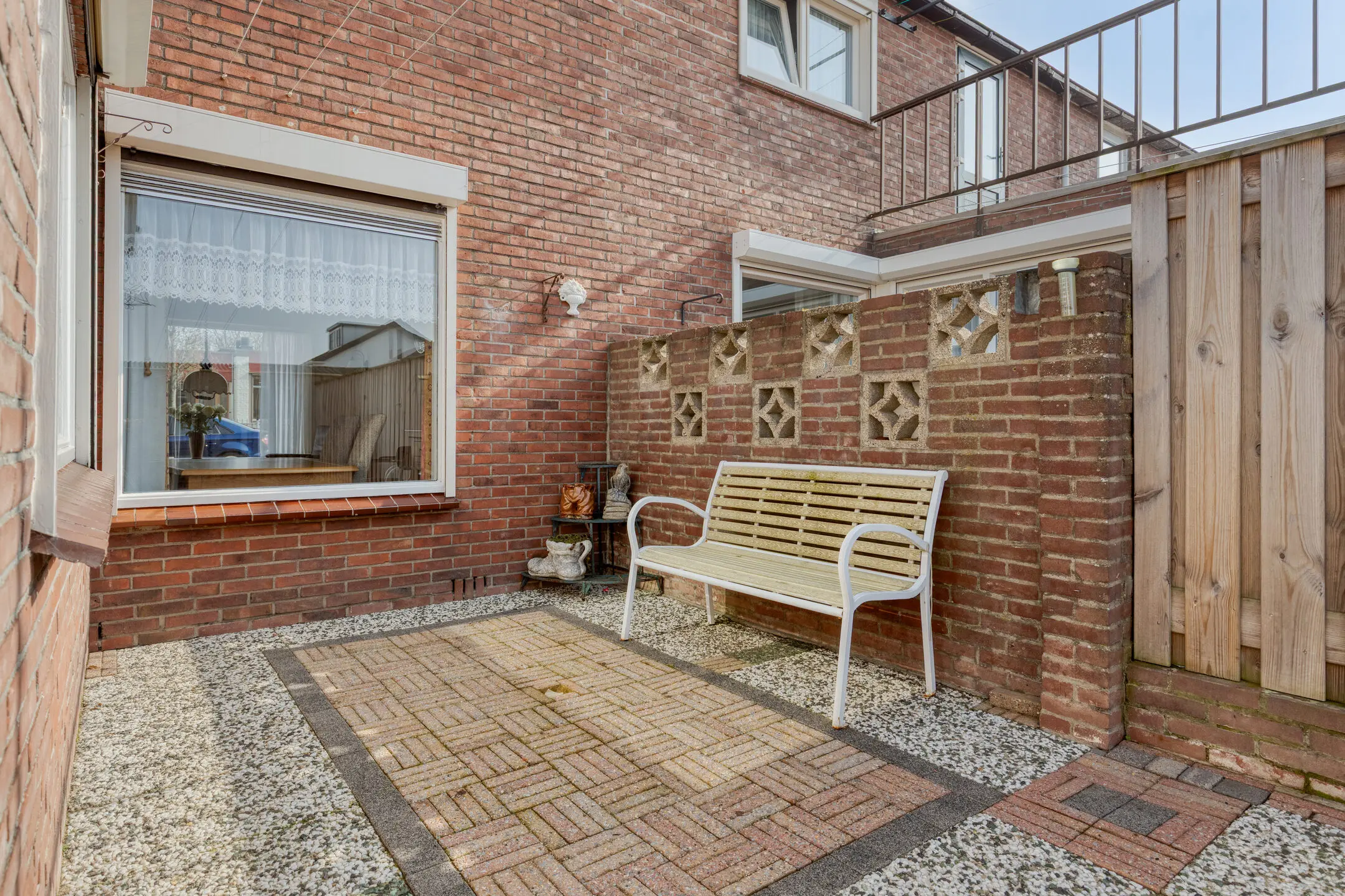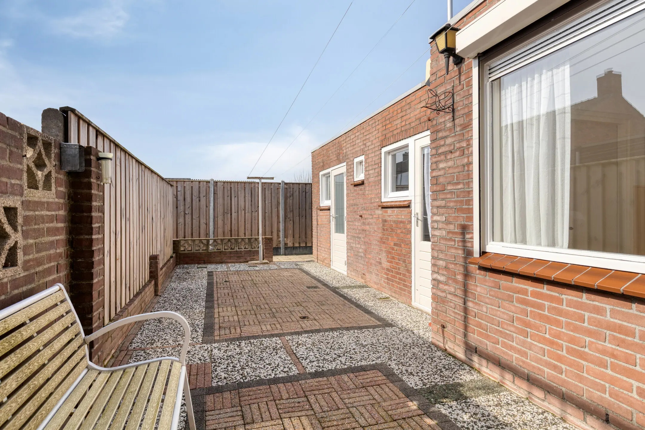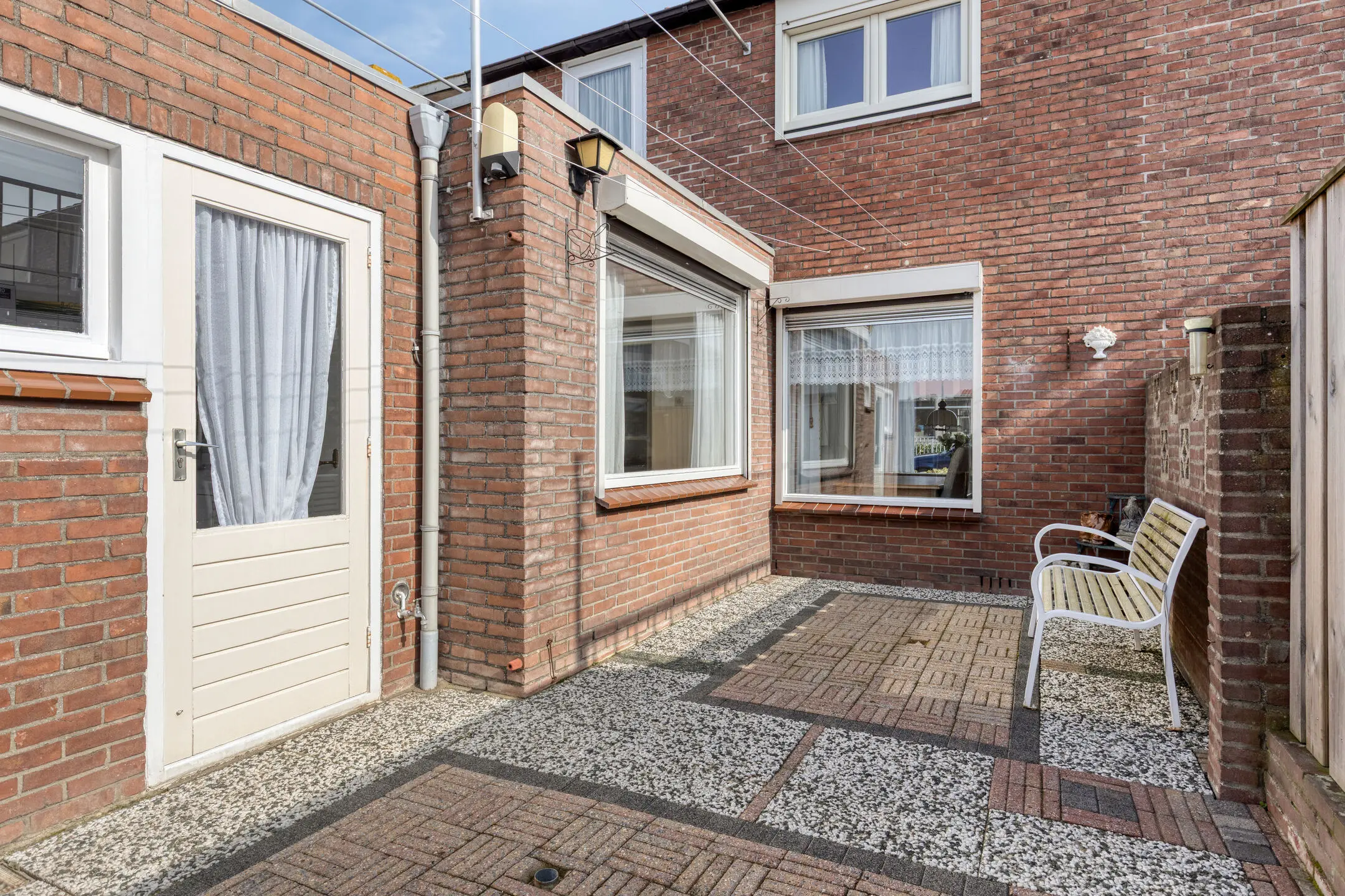De achtertuin is gelegen op het westen en onderhoudsvriendelijk aangelegd met sierbestrating. Op deze rustige plek kun je heerlijk van de zon genieten.