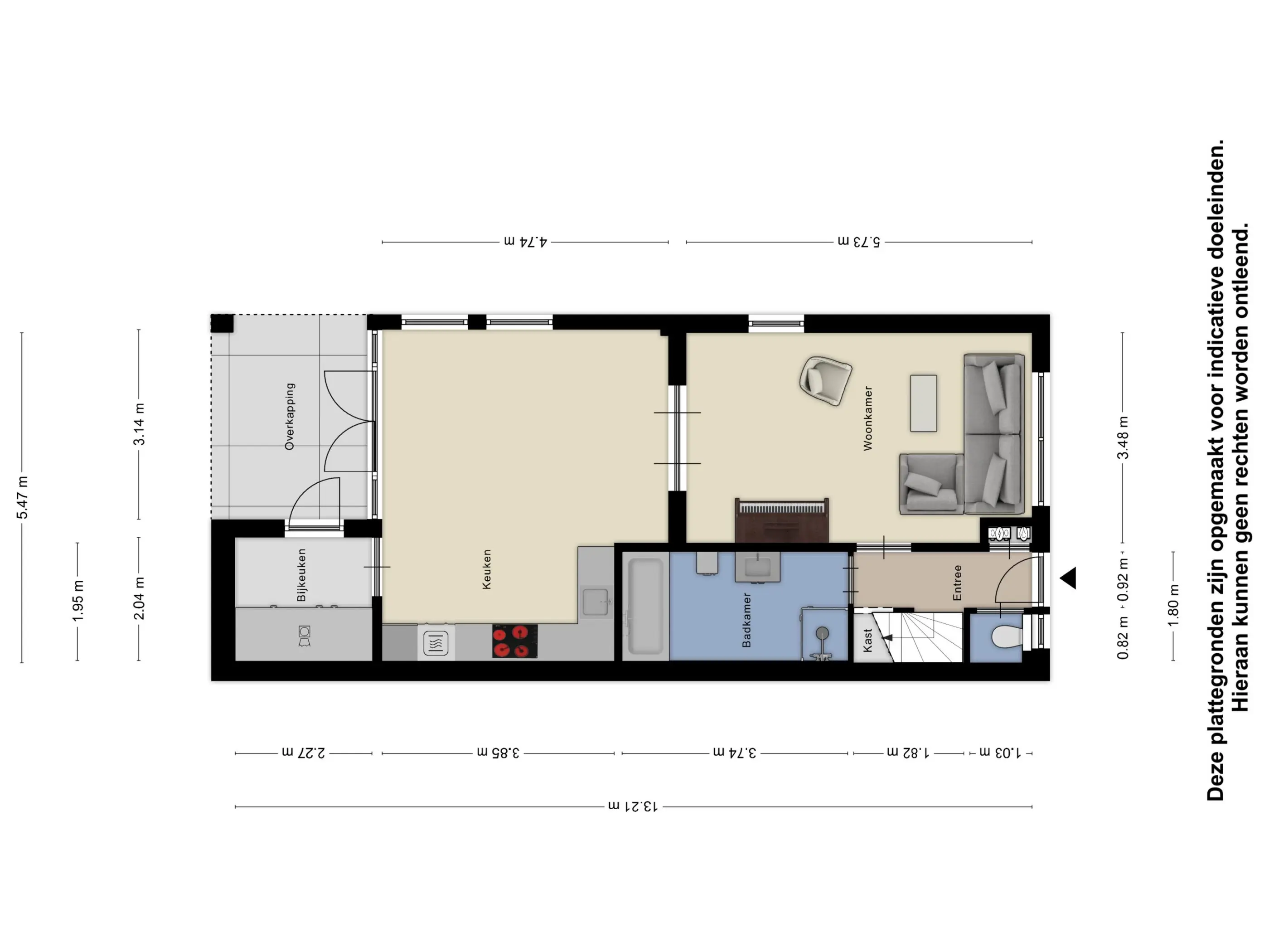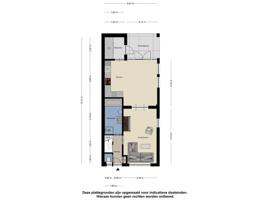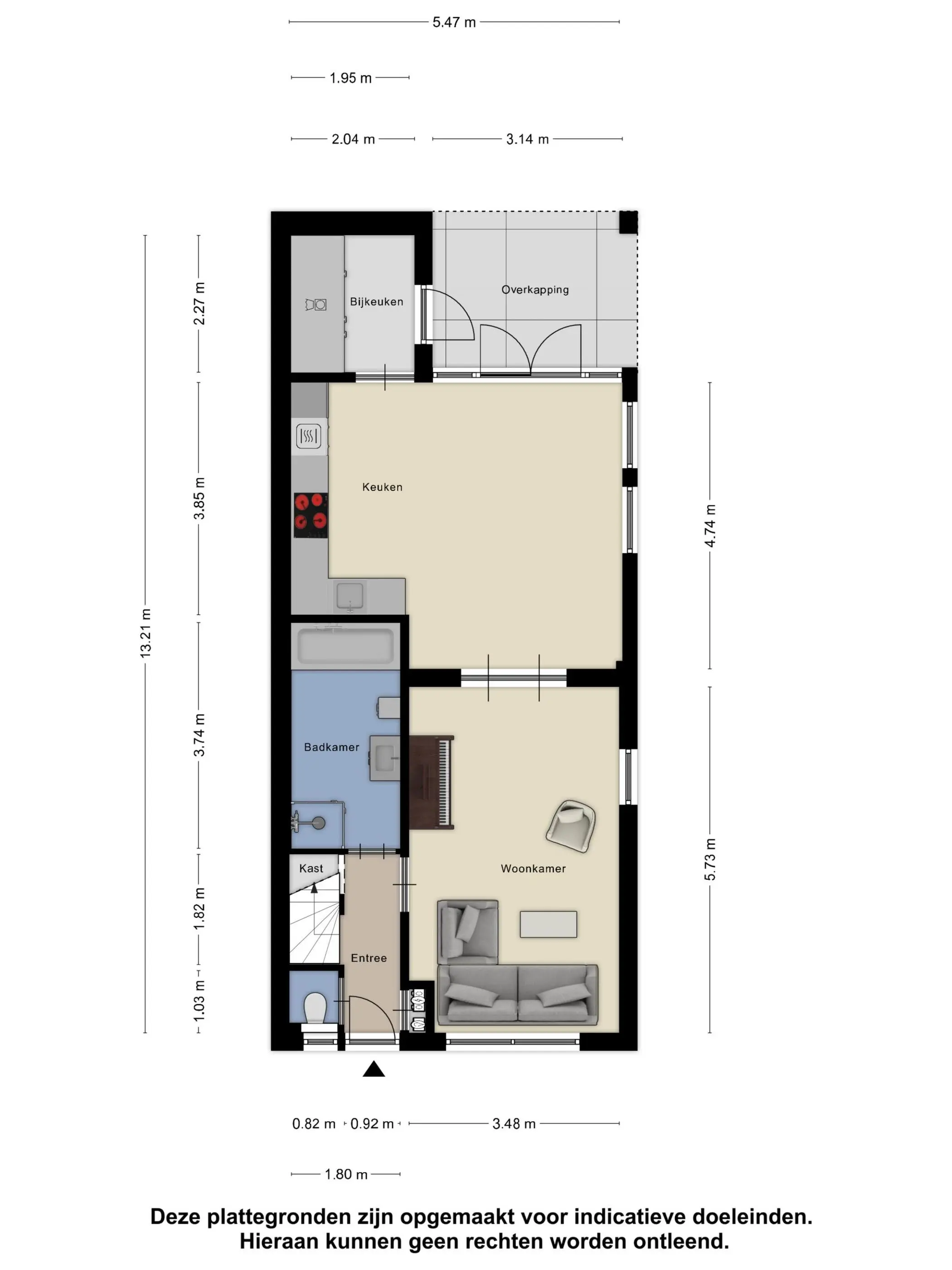 Bij binnenkomst valt direct de nette en verzorgde afwerking op. De hal biedt toegang tot de meterkast, het toilet, de trapopgang en de woonkamer. Onder de trap is een praktische garderobe gerealiseerd en achter stijlvolle deuren bevindt zich de ruime badkamer.