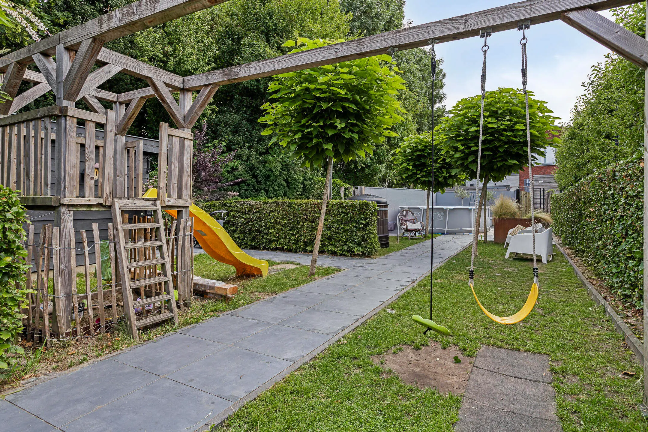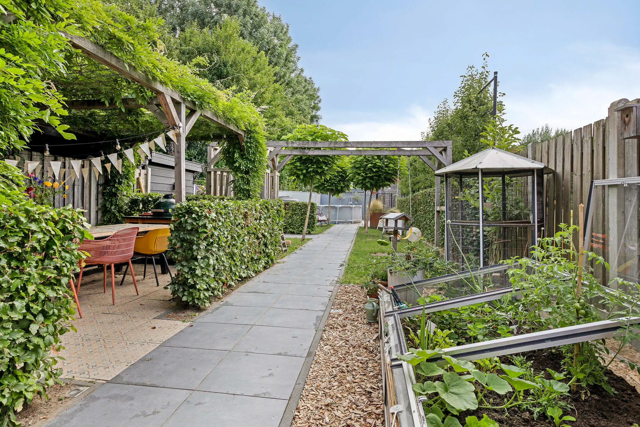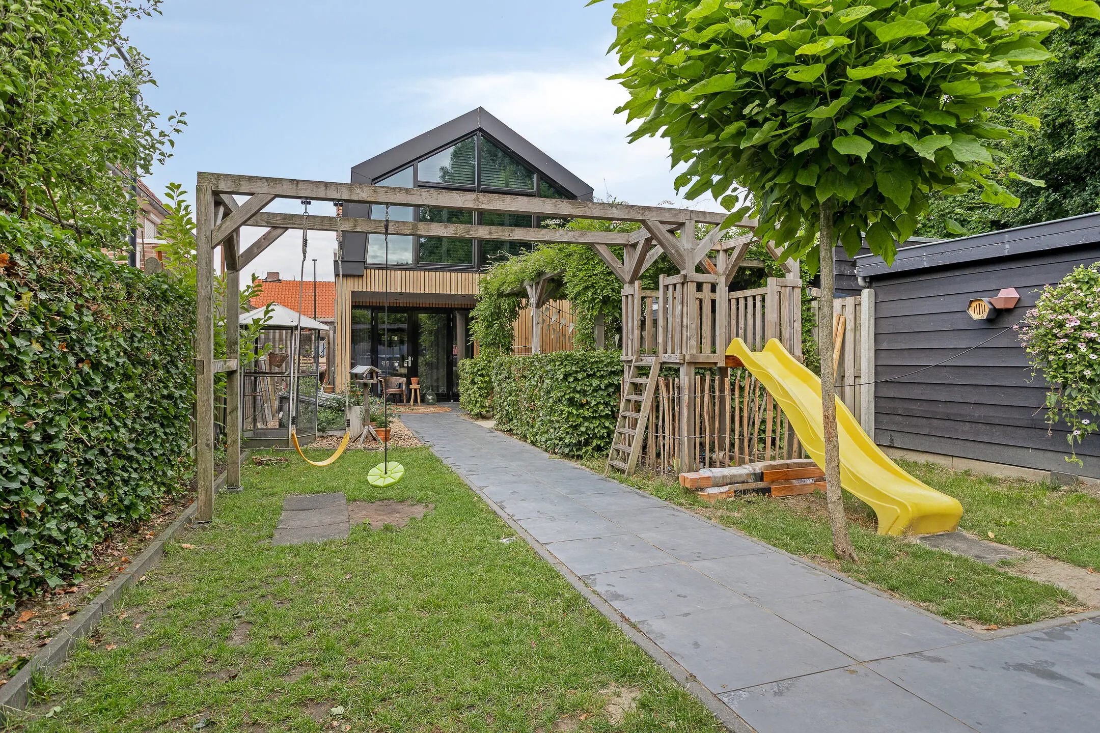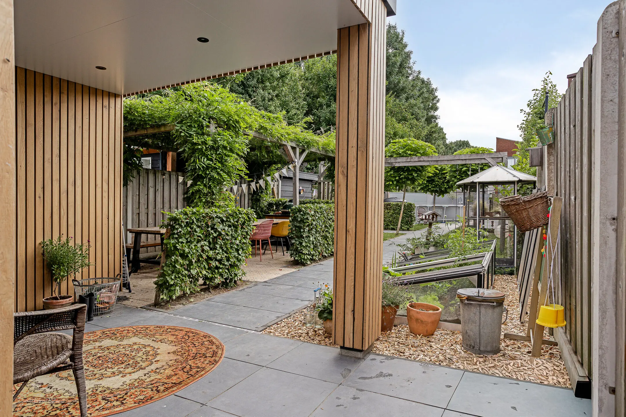 Voor kinderen is er een fijne speelplek en in de berging is voldoende ruimte voor fietsen en tuinmateriaal. Dankzij de achterom en zij-ingang is de tuin bovendien praktisch bereikbaar.