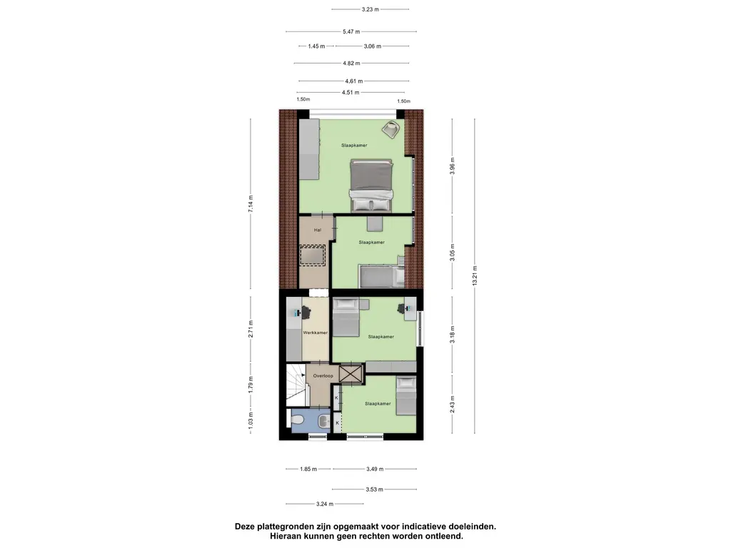 - Vier slaapkamers + werkkamer (1e etage)