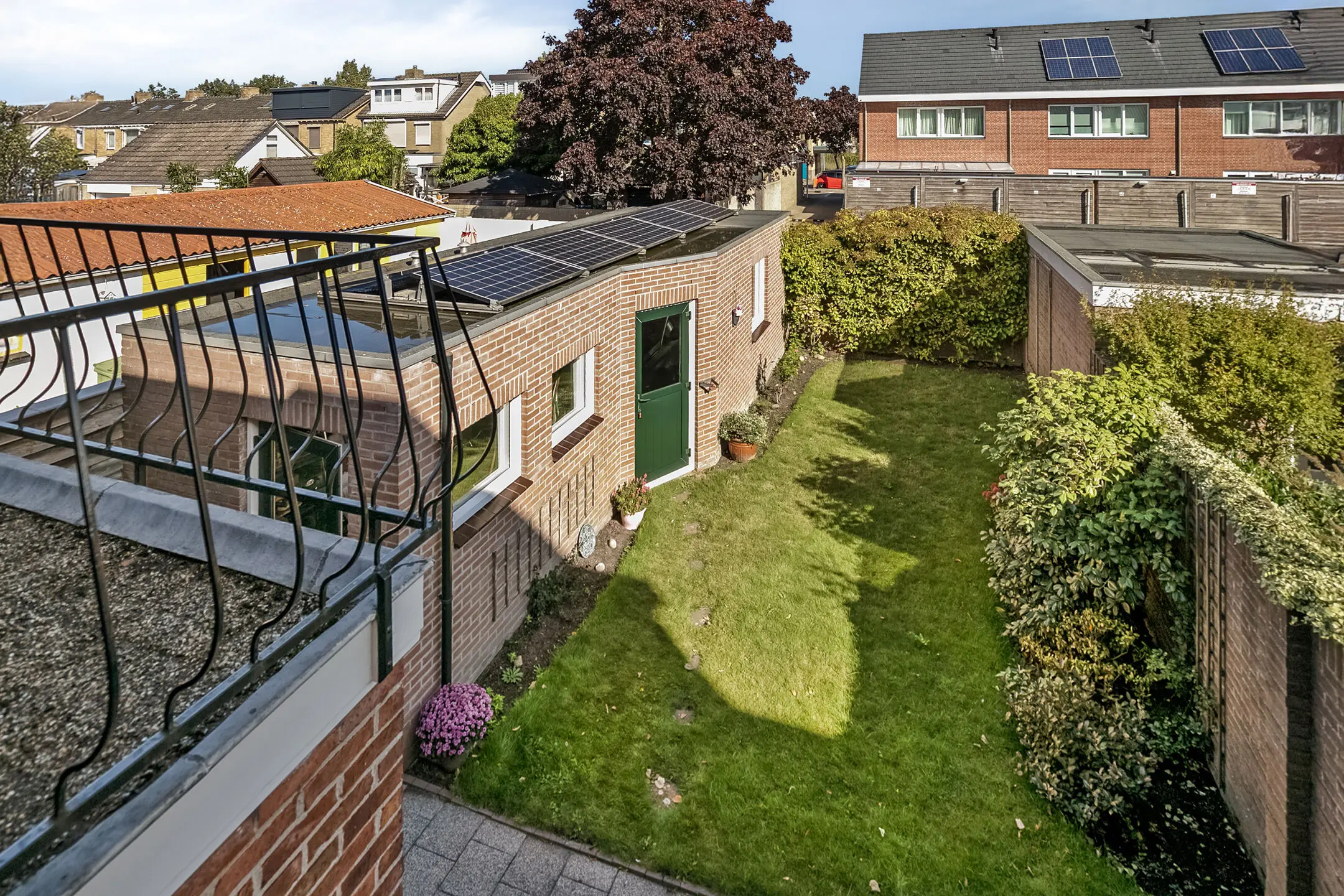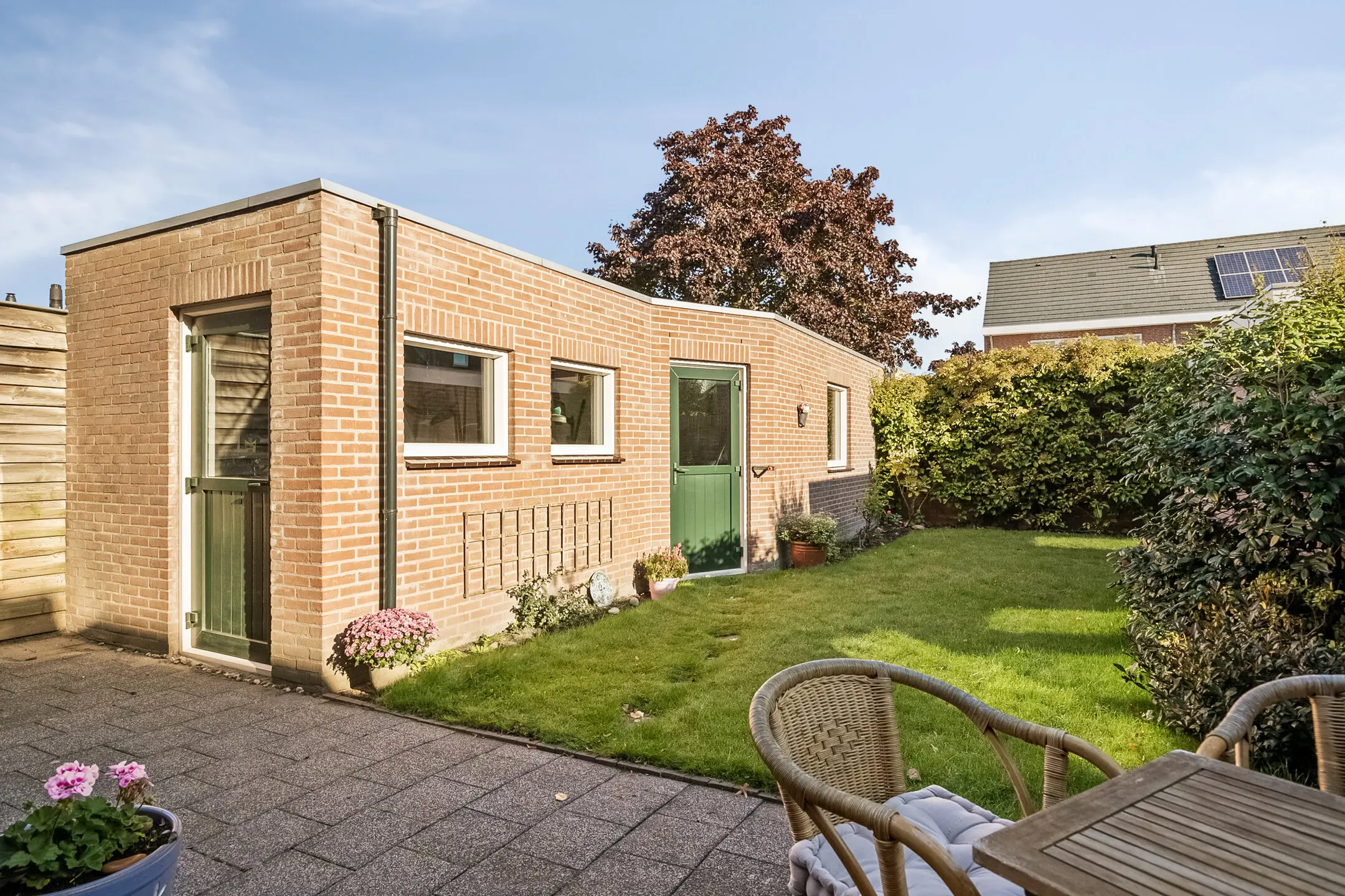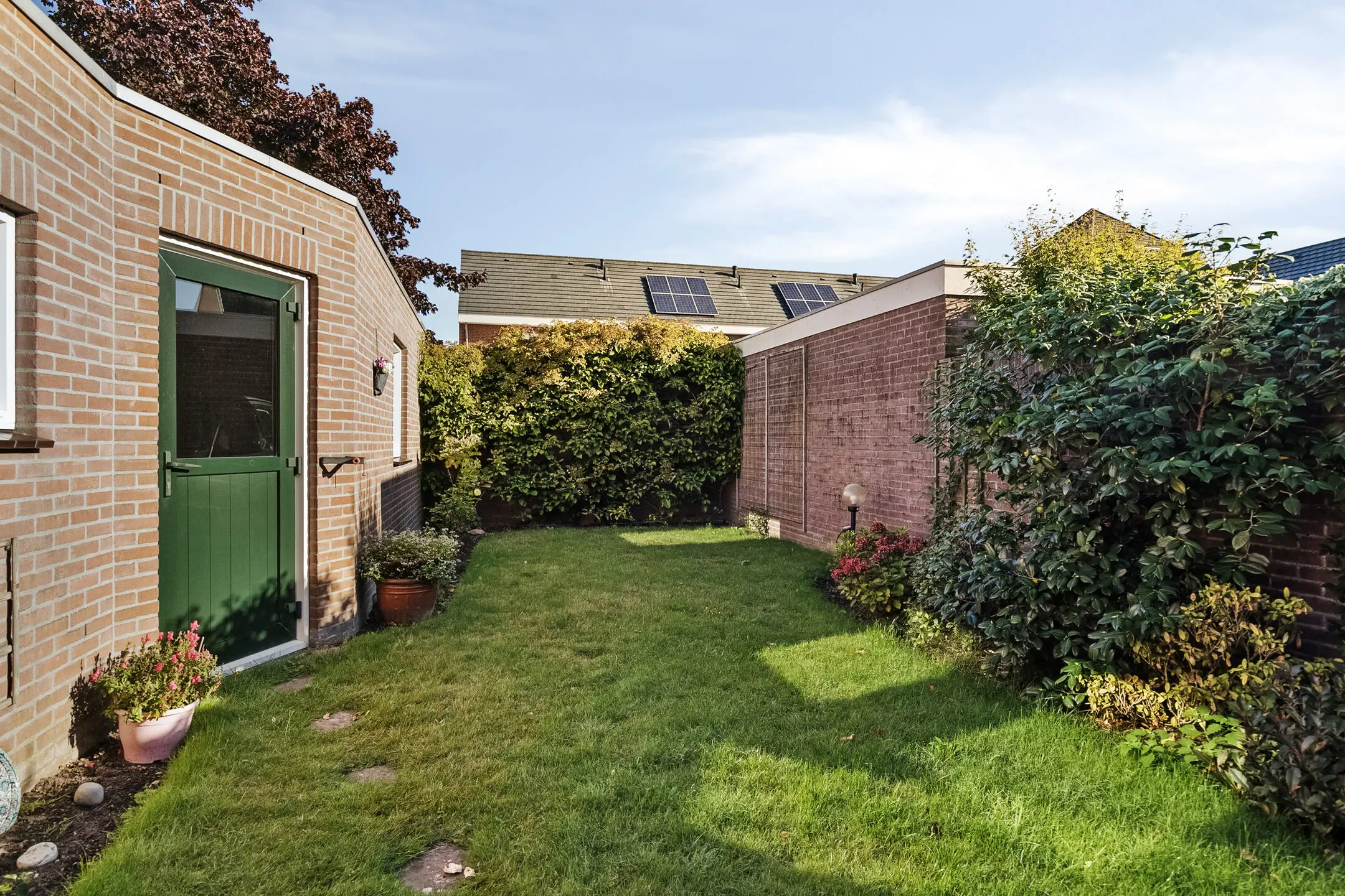 De tuin is bereikbaar via een achterom langs de woning, maar ook via de garage aan de achterzijde. De garage is voorzien van een elektrisch bedienbare paneeldeur en heeft elektra. Aangrenzend vind je nog een praktische berging, ook met elektra — perfect voor fietsen, tuingereedschap of als hobbyruimte. Zowel de garage als de berging zijn voorzien van kunststof kozijnen. Achter de tuin ligt een ruim opgezet plein, waardoor je geen directe inkijk van achterburen hebt. Dat zorgt voor een fijne dosis privacy in je eigen achtertuin.