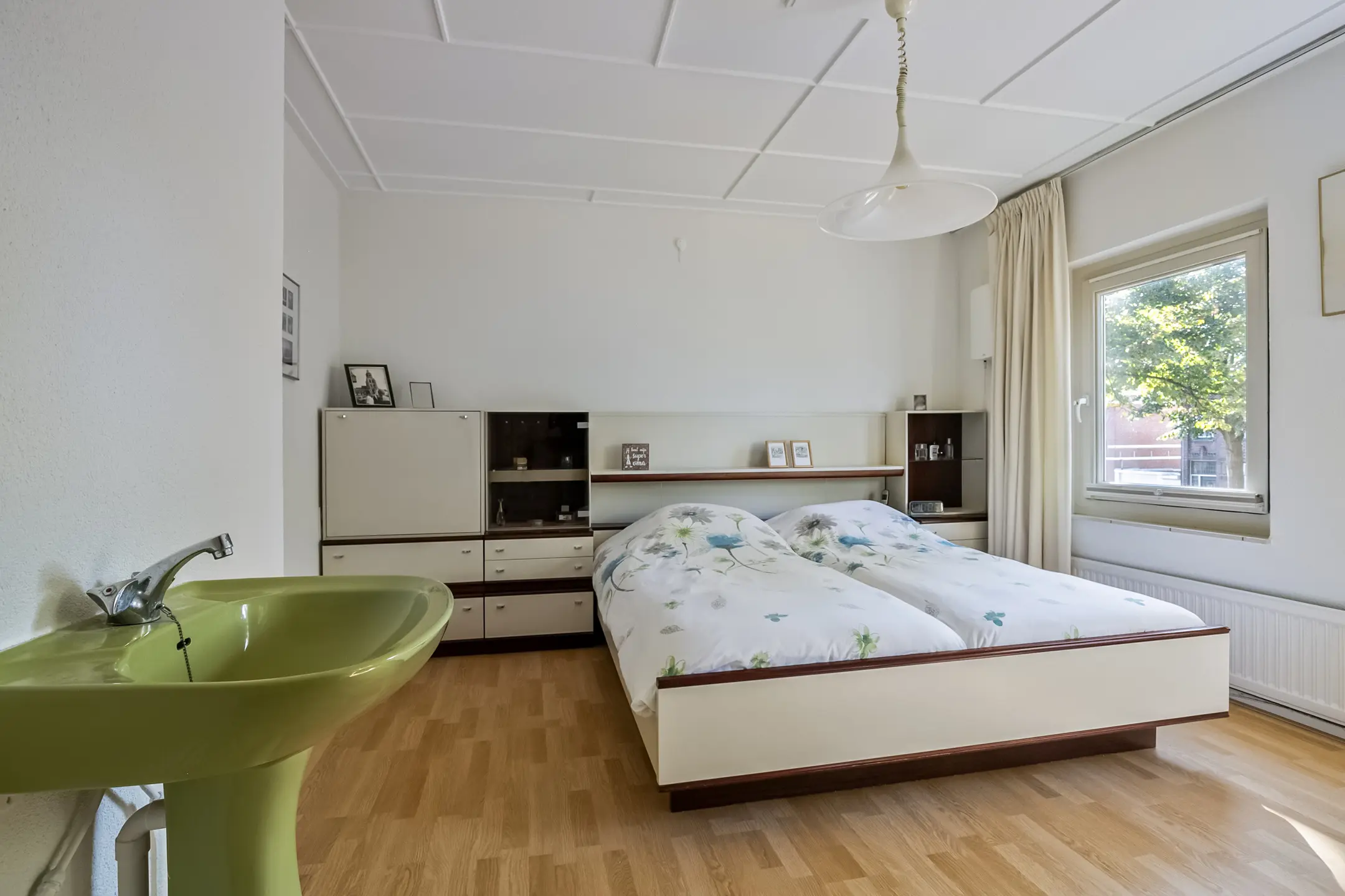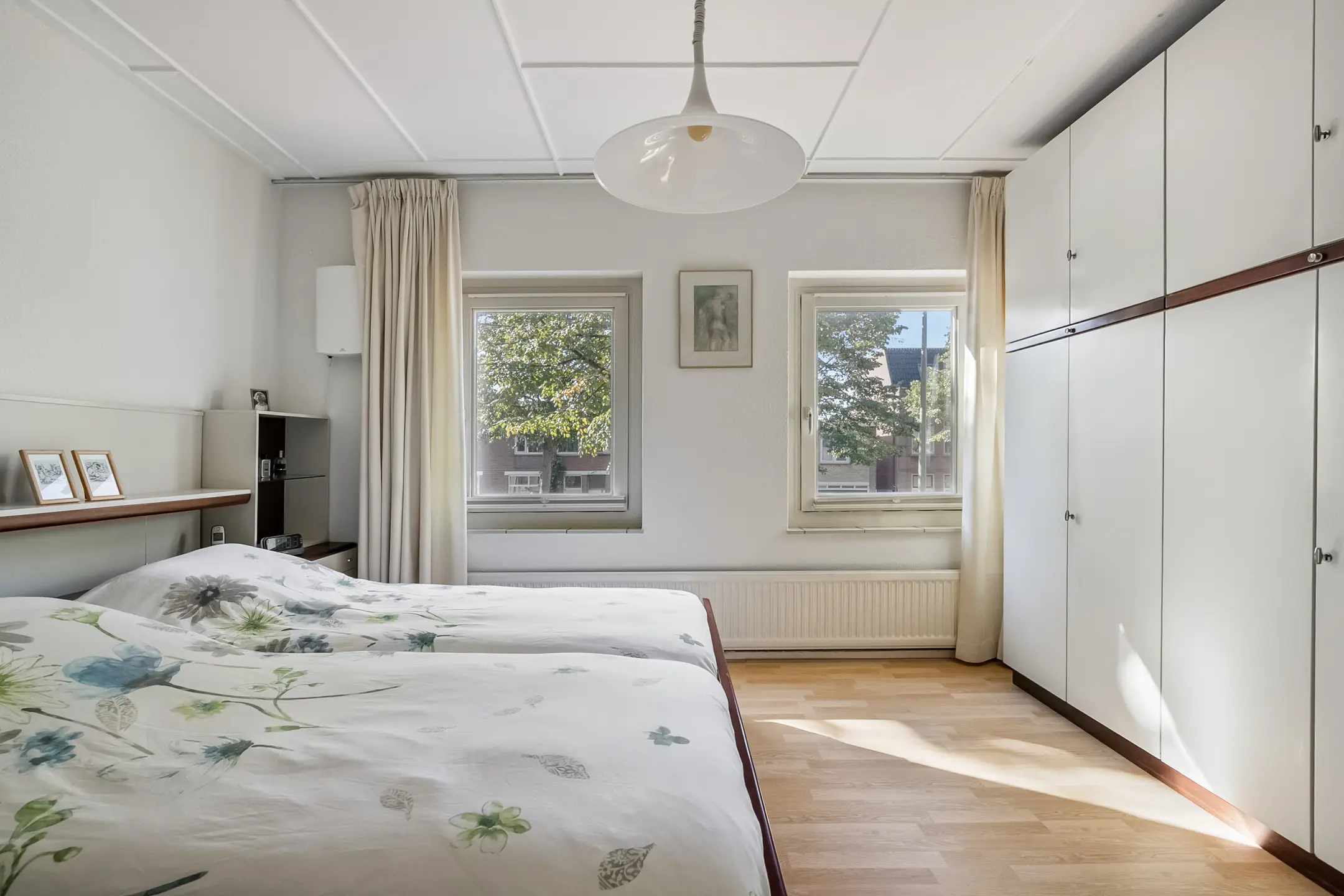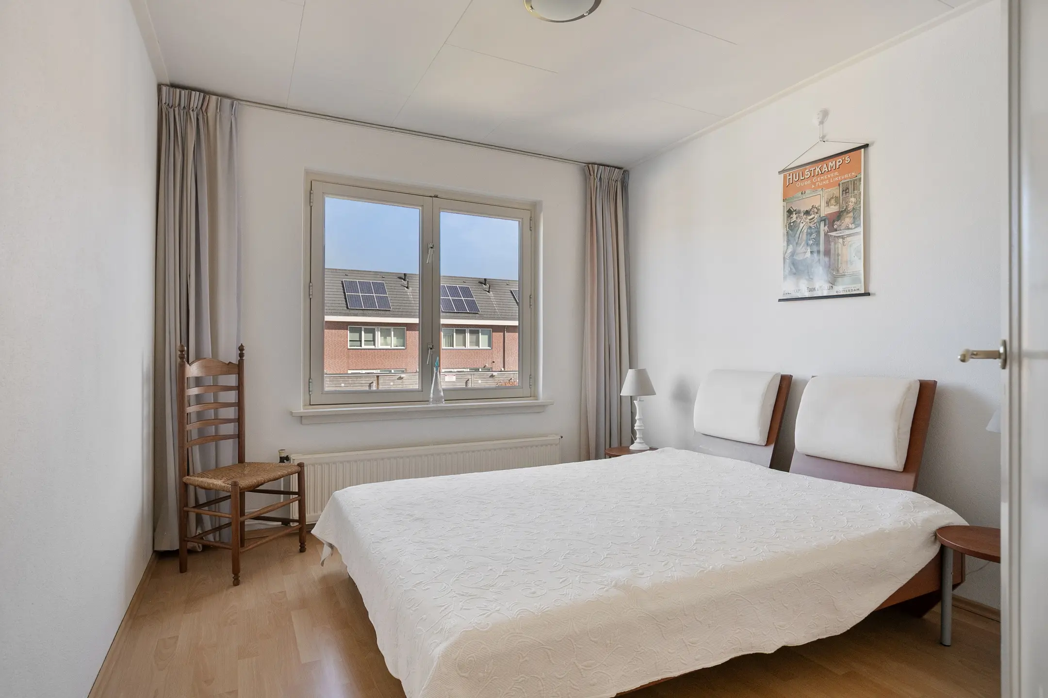 Alle drie de slaapkamers zijn praktisch ingedeeld, lekker licht en voorzien van een vaste kast. Ze zijn afgewerkt met een neutrale laminaatvloer, wat zorgt voor een rustige basis. De ruime hoofdslaapkamer aan de voorzijde heeft daarnaast nog een eigen wastafel. De kleinere slaapkamer aan de achterzijde biedt toegang tot het balkon.
