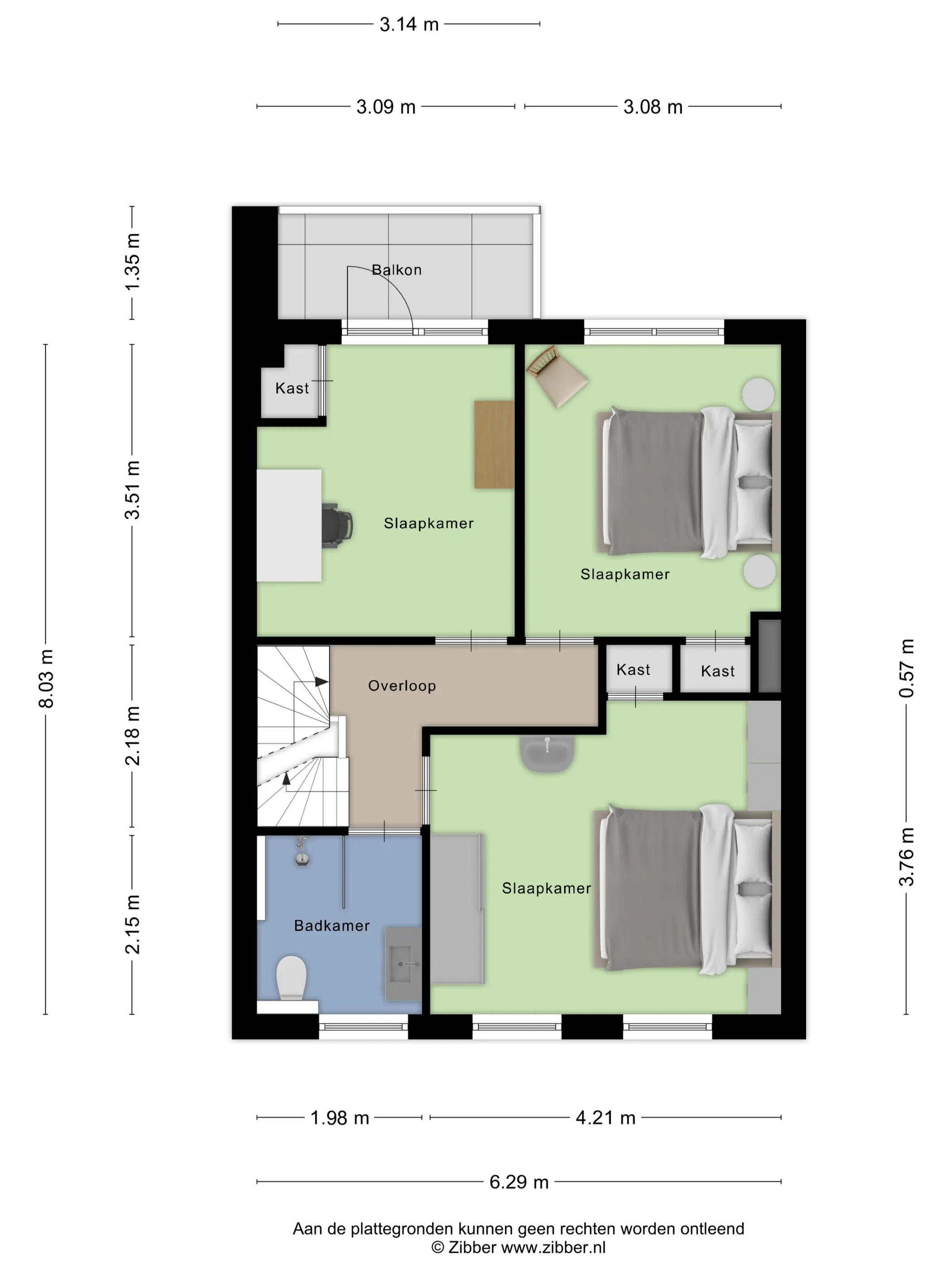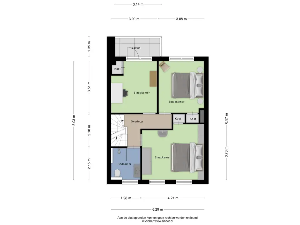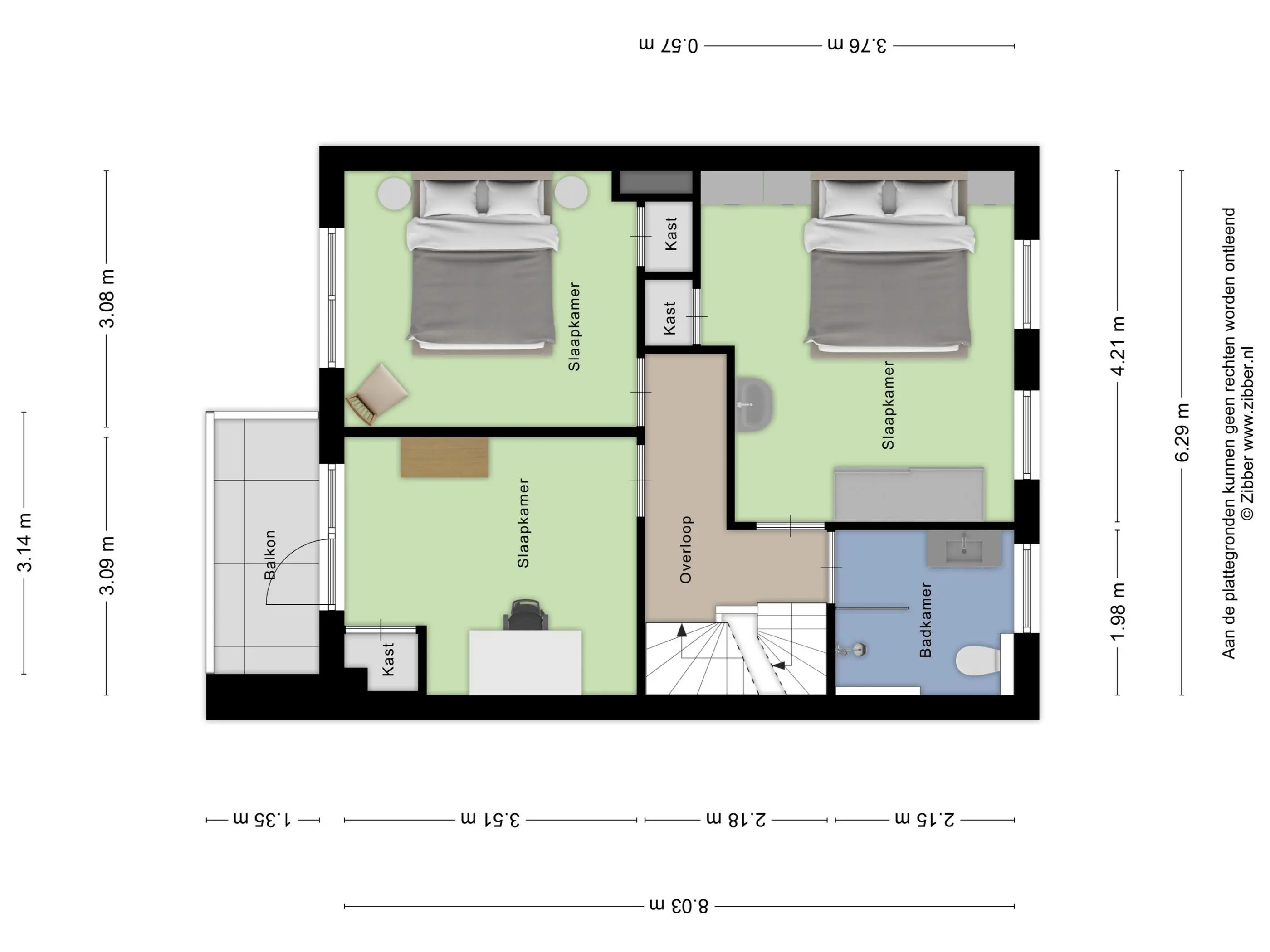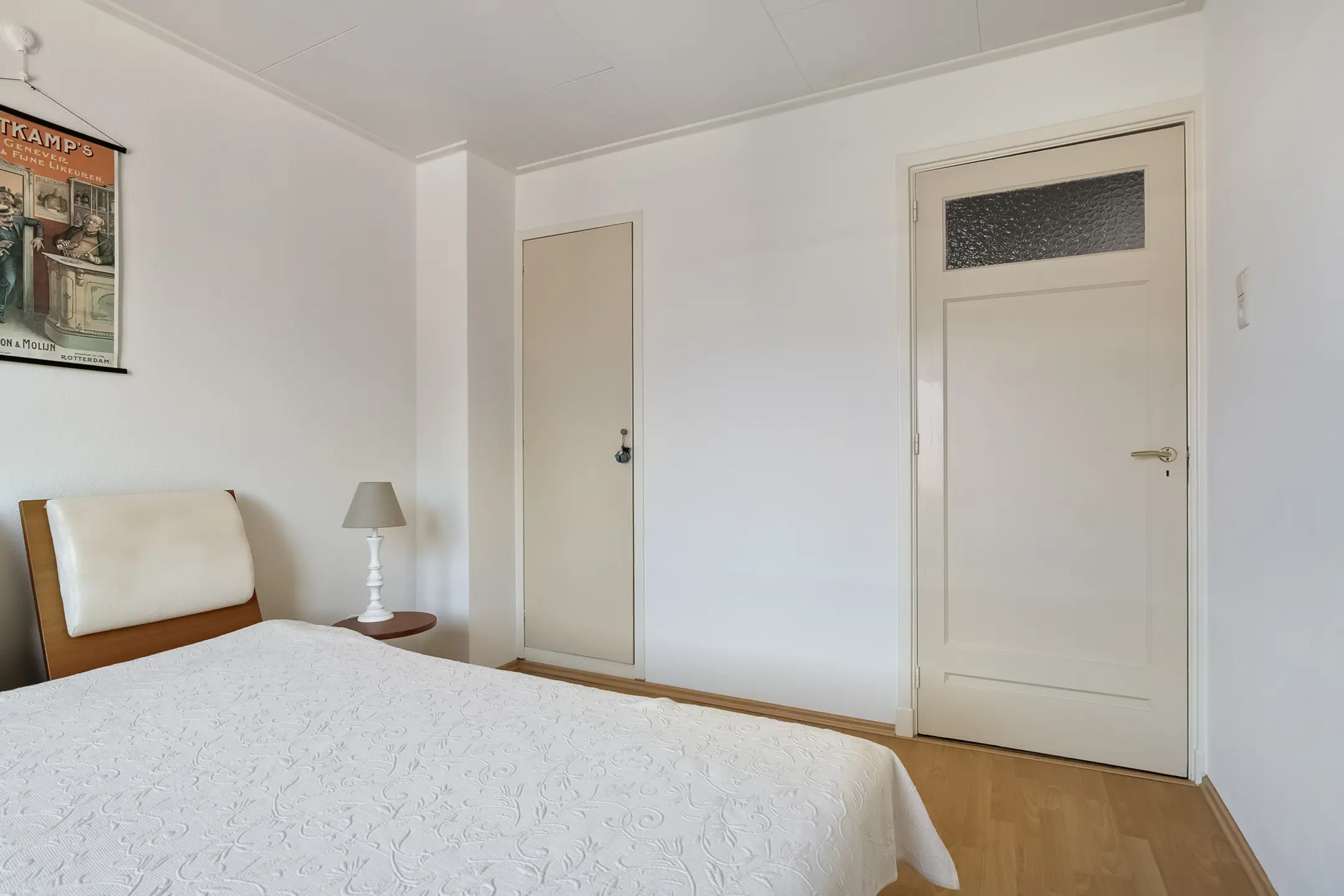 Alle drie de slaapkamers zijn praktisch ingedeeld, lekker licht en voorzien van een vaste kast. Ze zijn afgewerkt met een neutrale laminaatvloer, wat zorgt voor een rustige basis. De ruime hoofdslaapkamer aan de voorzijde heeft daarnaast nog een eigen wastafel. De kleinere slaapkamer aan de achterzijde biedt toegang tot het balkon.