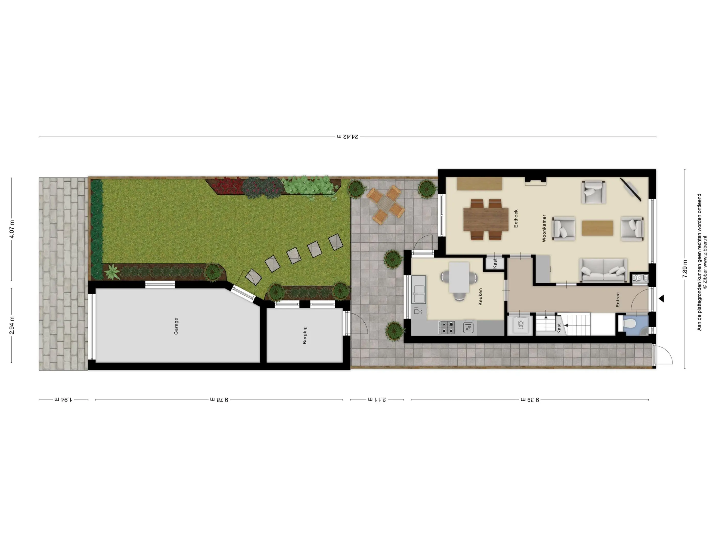 - achtertuin met een oppervlakte van 98 m² en is gelegen op het noorden