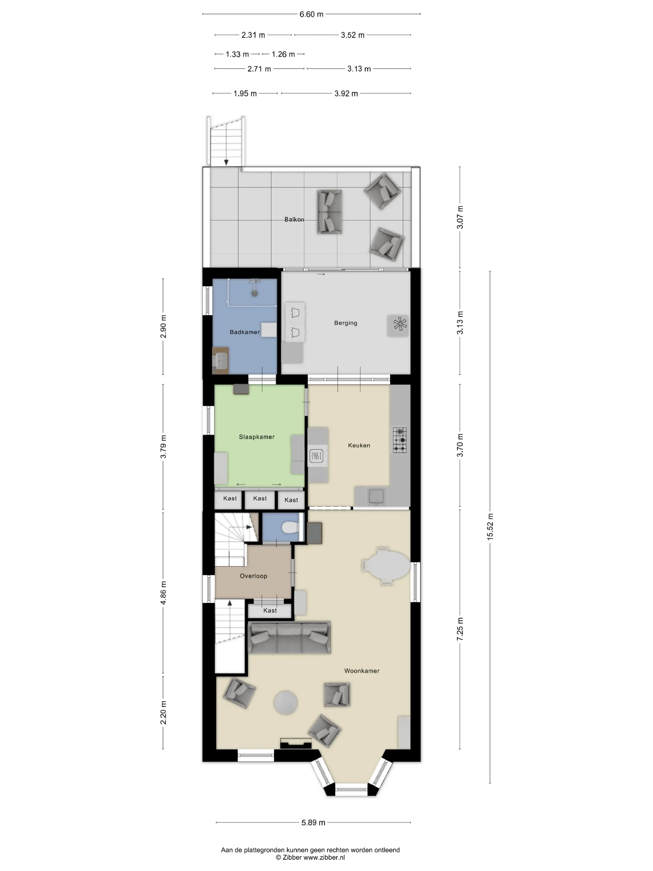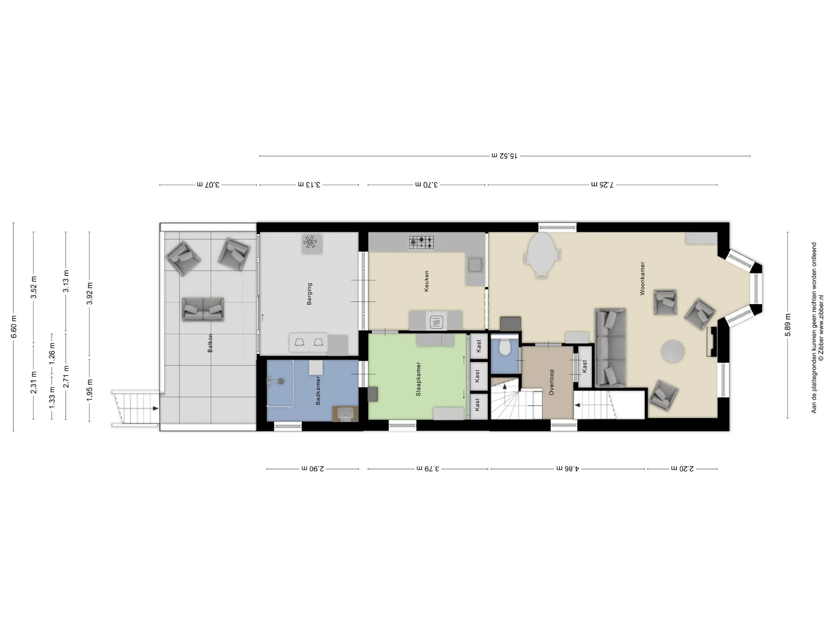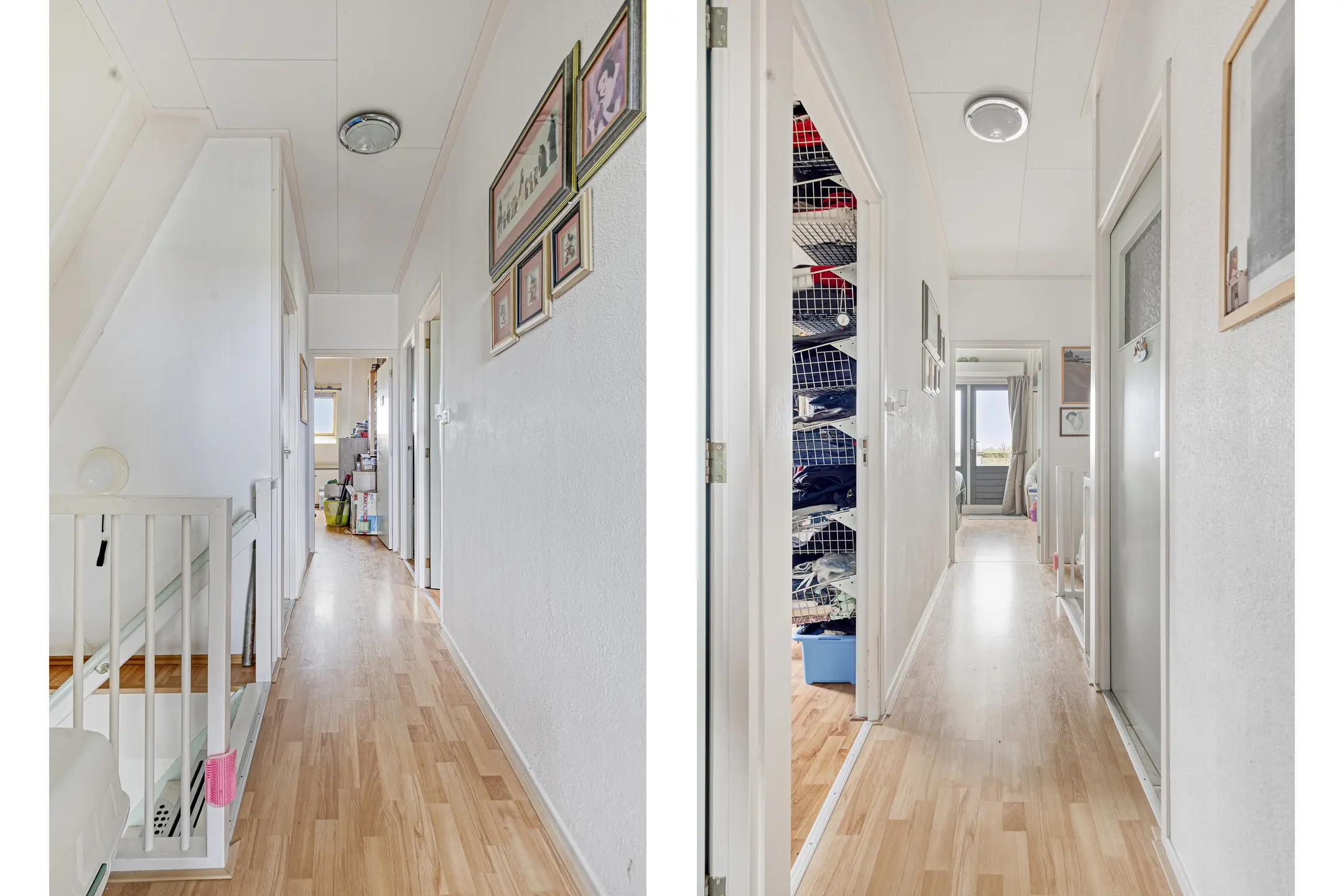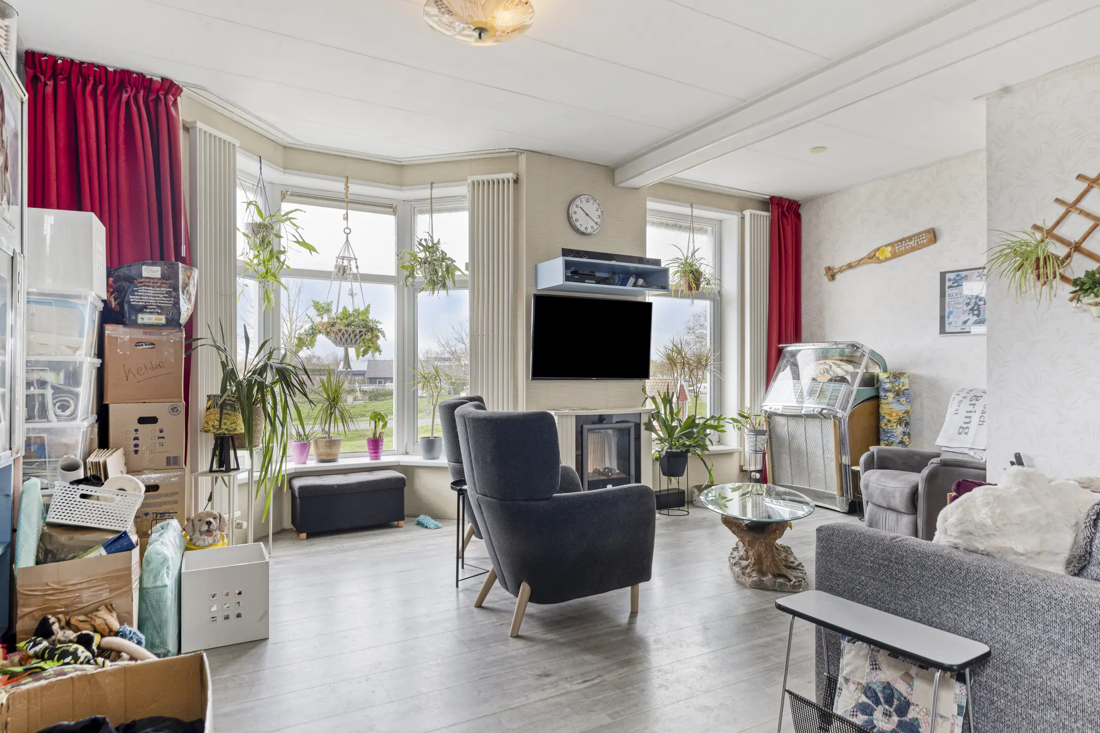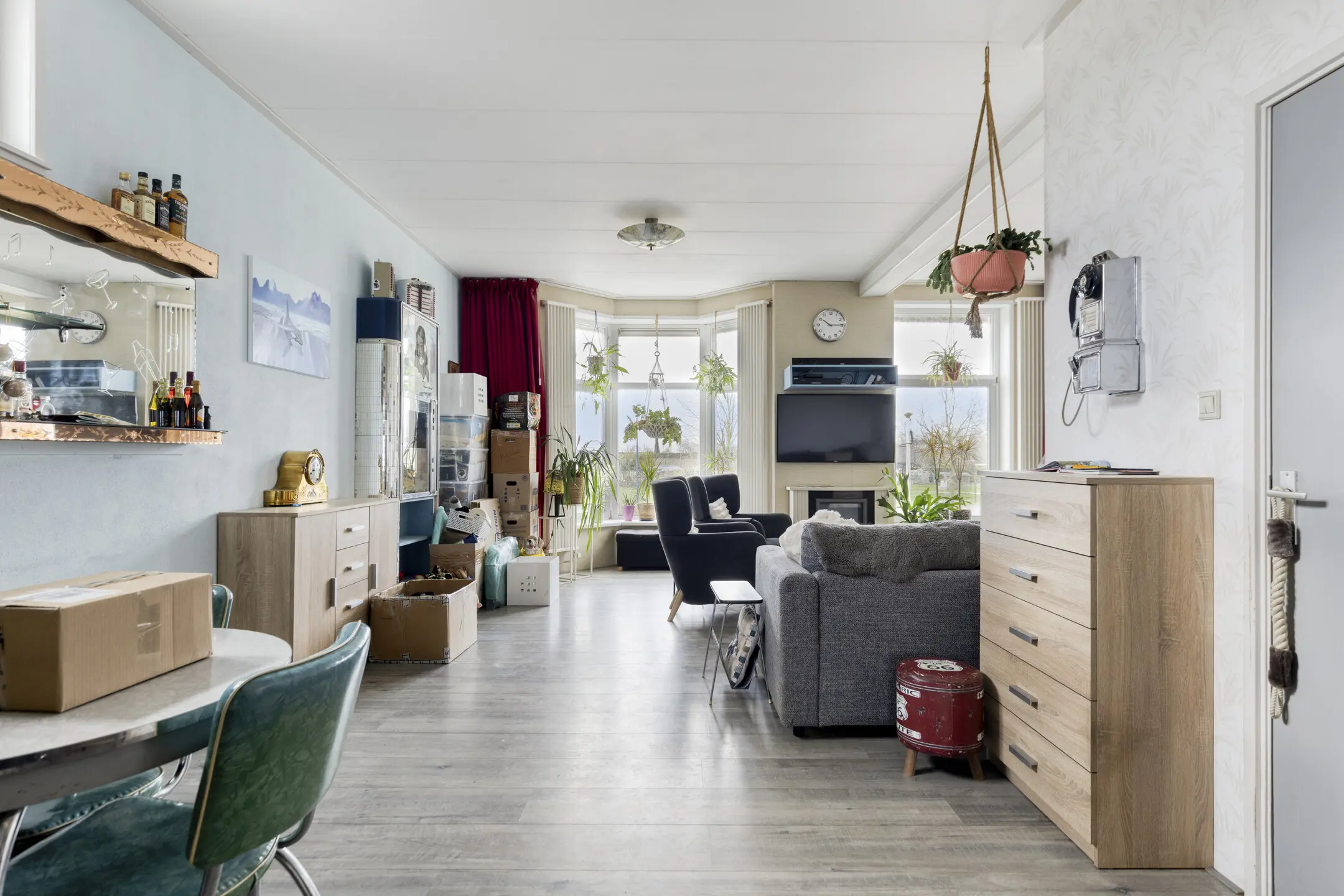 De overloop biedt toegang tot een toilet en een praktische vaste kast. De royale L-vormige woonkamer aan de voorzijde kenmerkt zich door veel lichtinval en een vrij uitzicht.