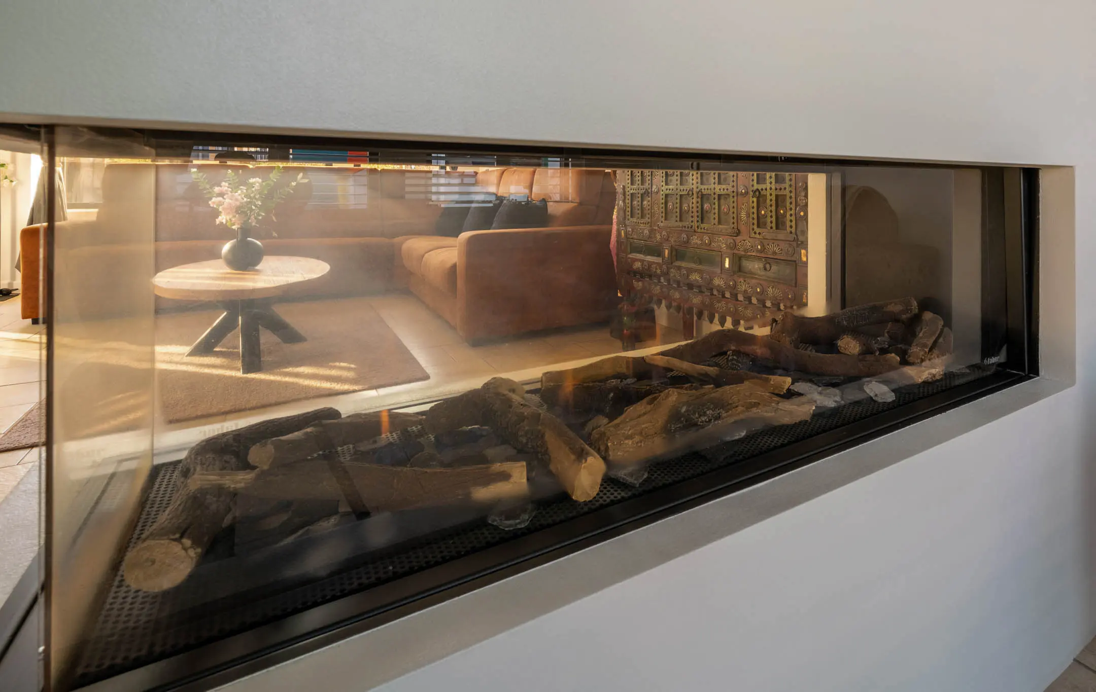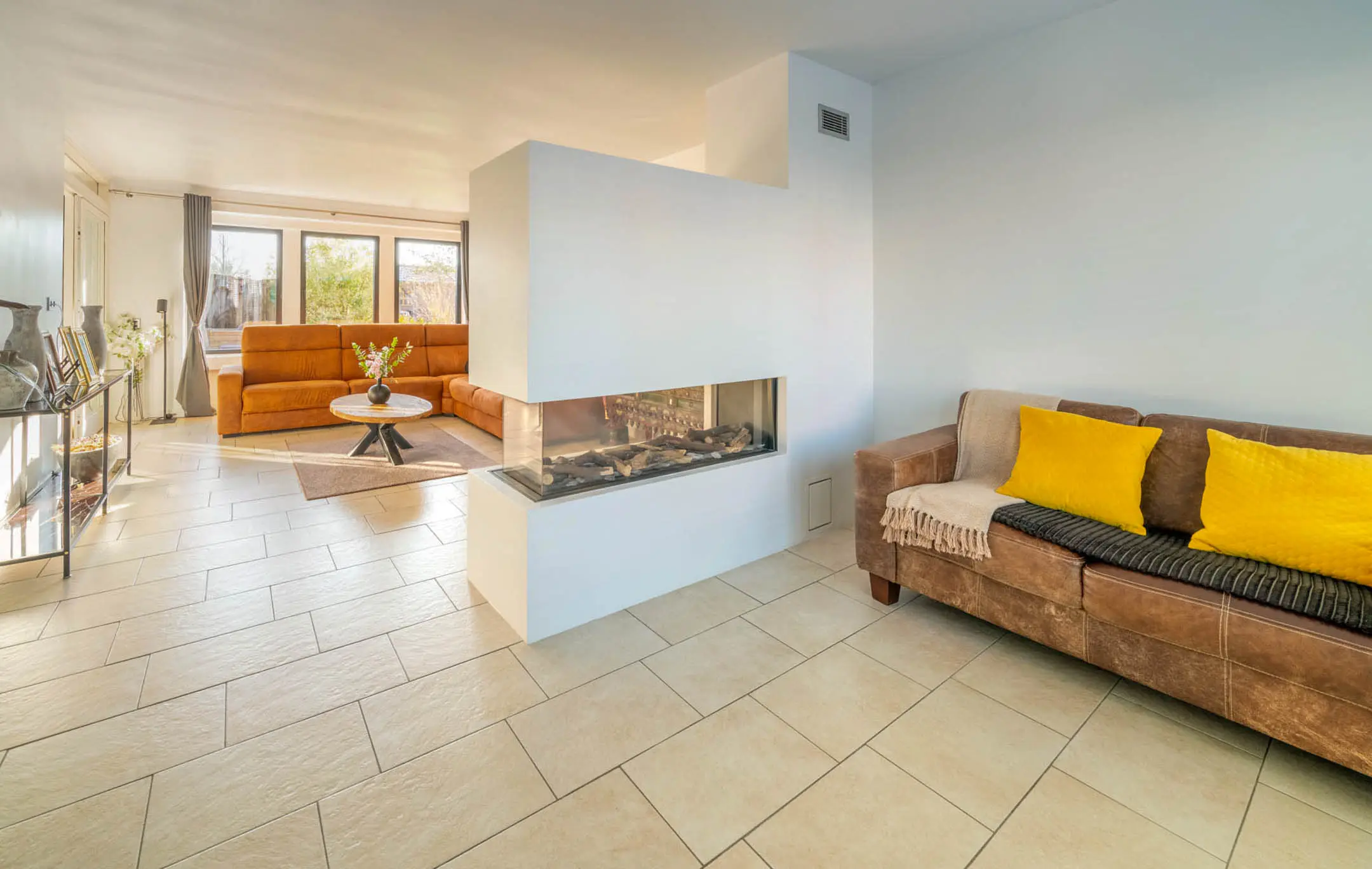 * Royale woonkamer van 34 m² met Faber gashaard (2014)