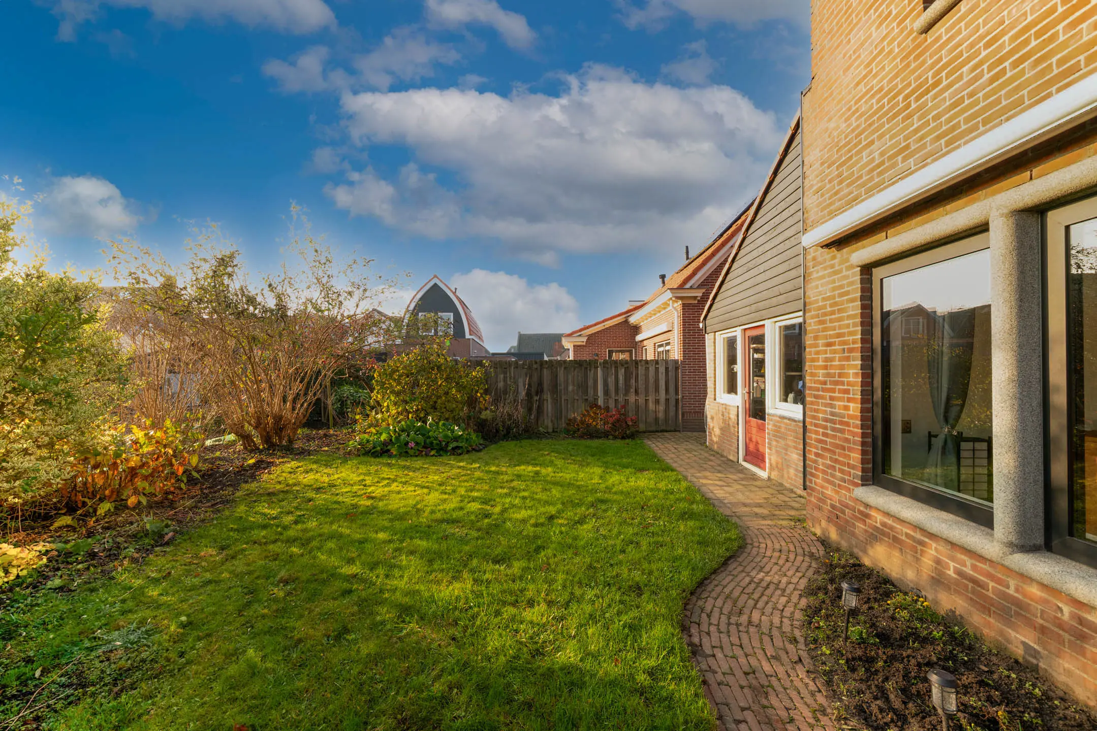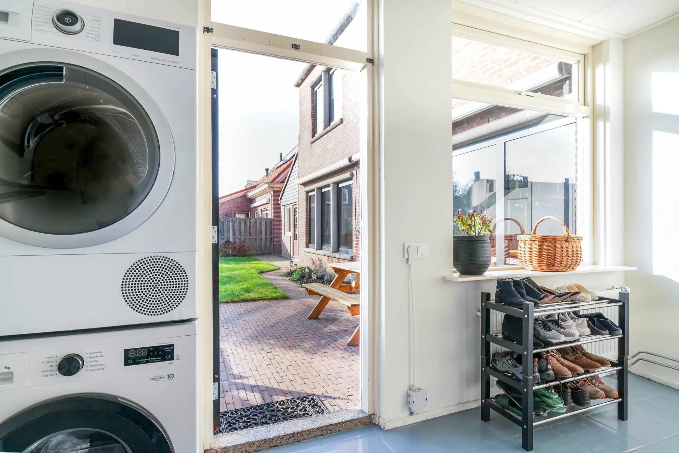 Vanuit de bijkeuken (geen vloerverwarming) heb je toegang tot de zonnige achtertuin, volledig met vrije achterom en uitgerust met zonwering aan de achtergevel. Ook bereik je via een loopdeur de ruime garage, die beschikt over een zolder en een aluminium kanteldeur richting oprit en straat.