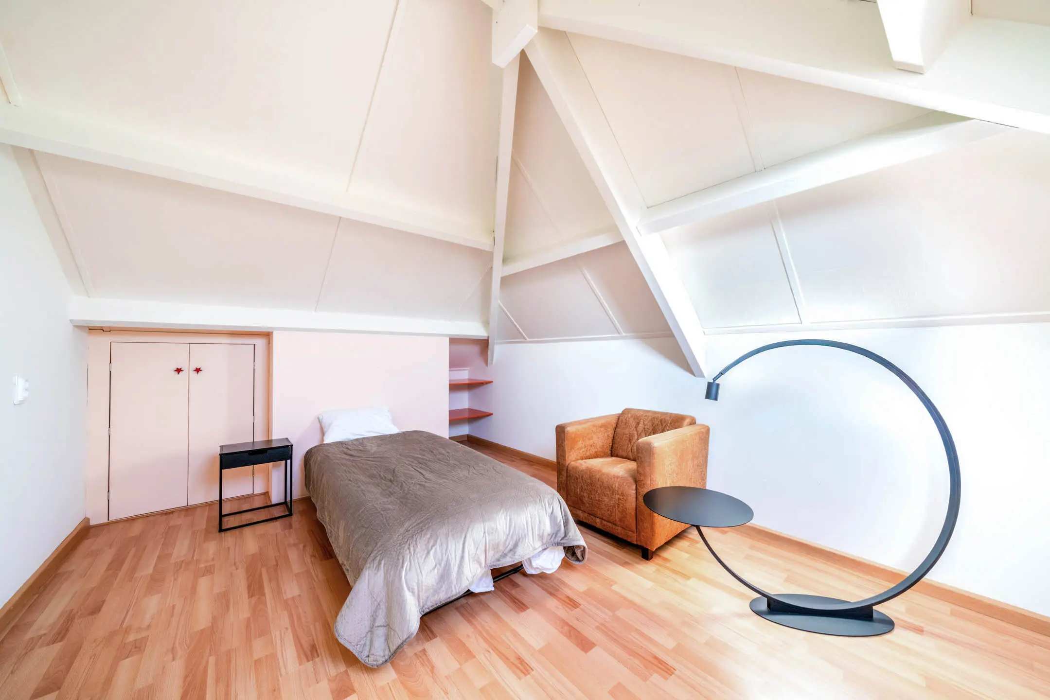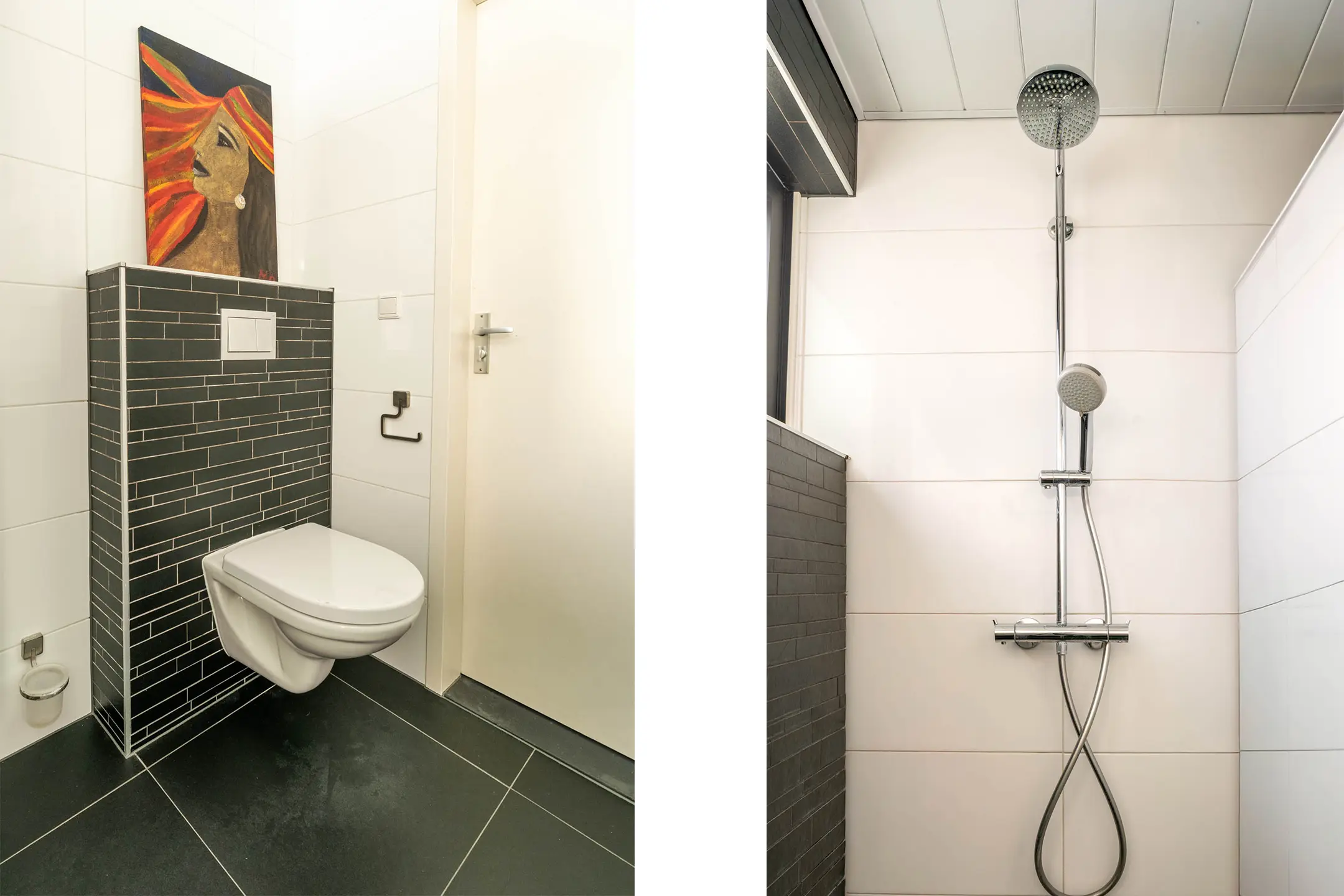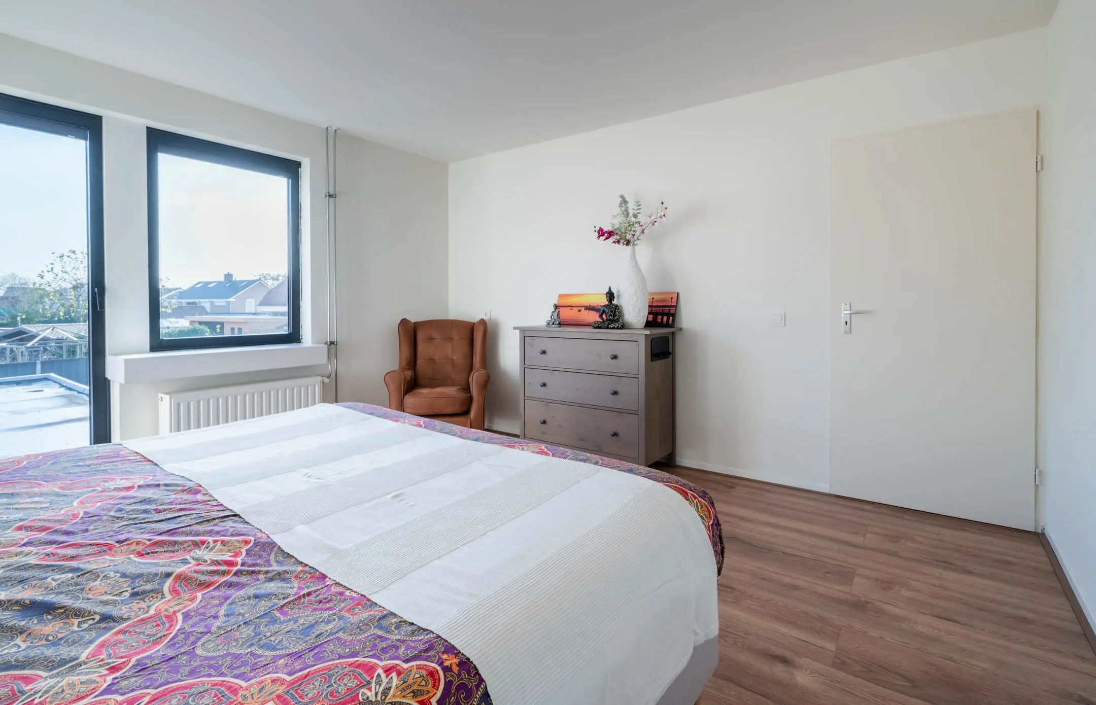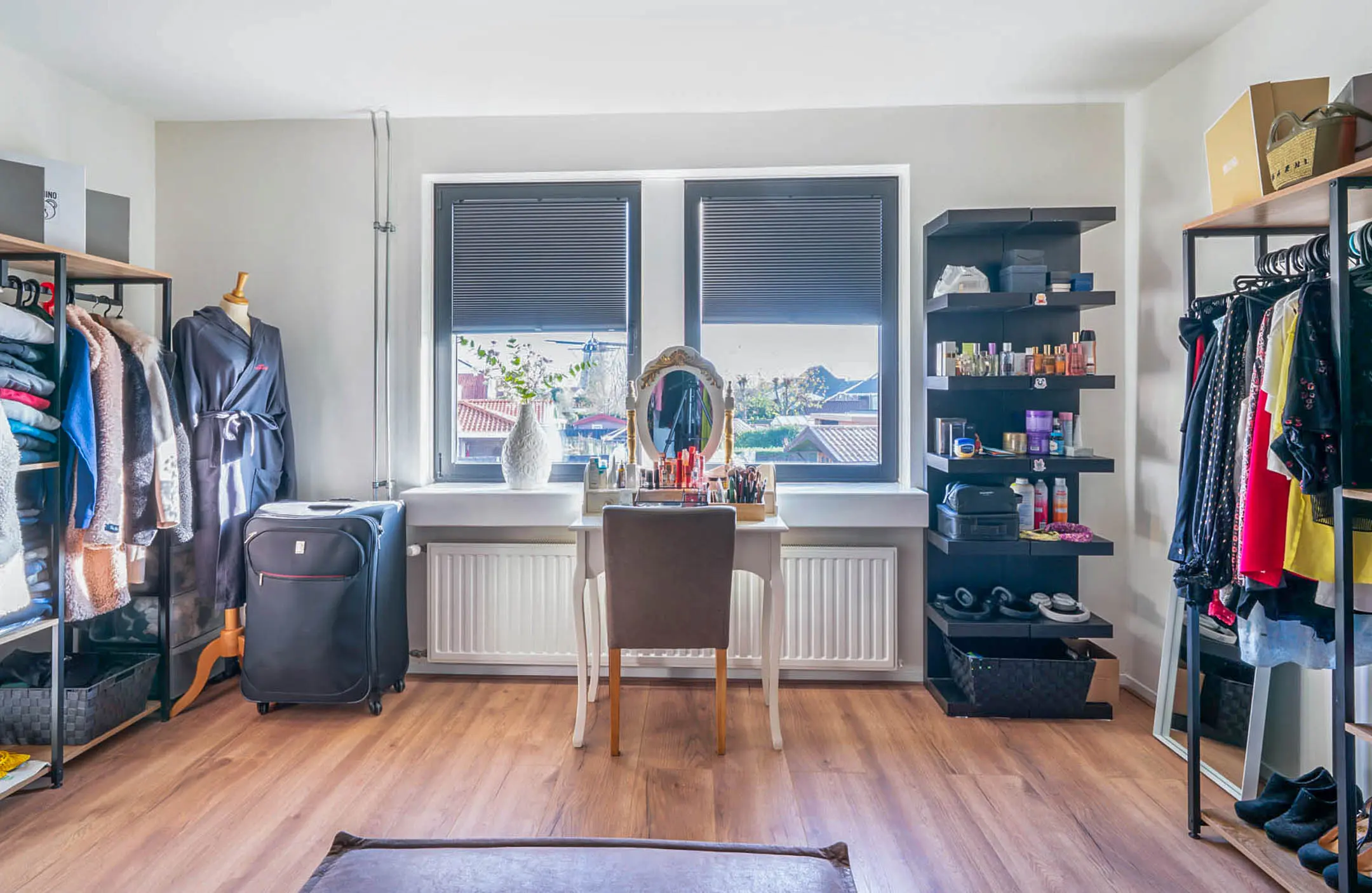 Ook de tweede verdieping biedt verrassend veel ruimte. De overloop leidt naar een berging en de stookruimte, waar de CV-ketel (2024) en de omvormer van de zonnepanelen zijn geplaatst. Daarnaast zijn er nog twee royale slaapkamers, beide met dakvenster en knieschotbergingen. Alles is wederom netjes afgewerkt.